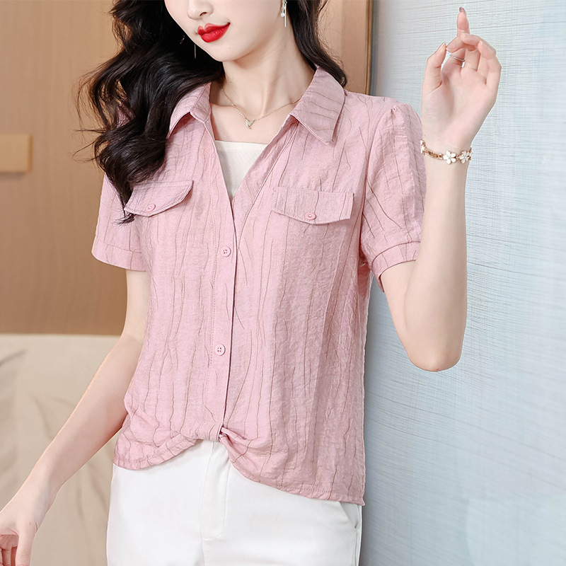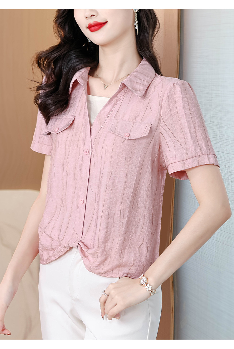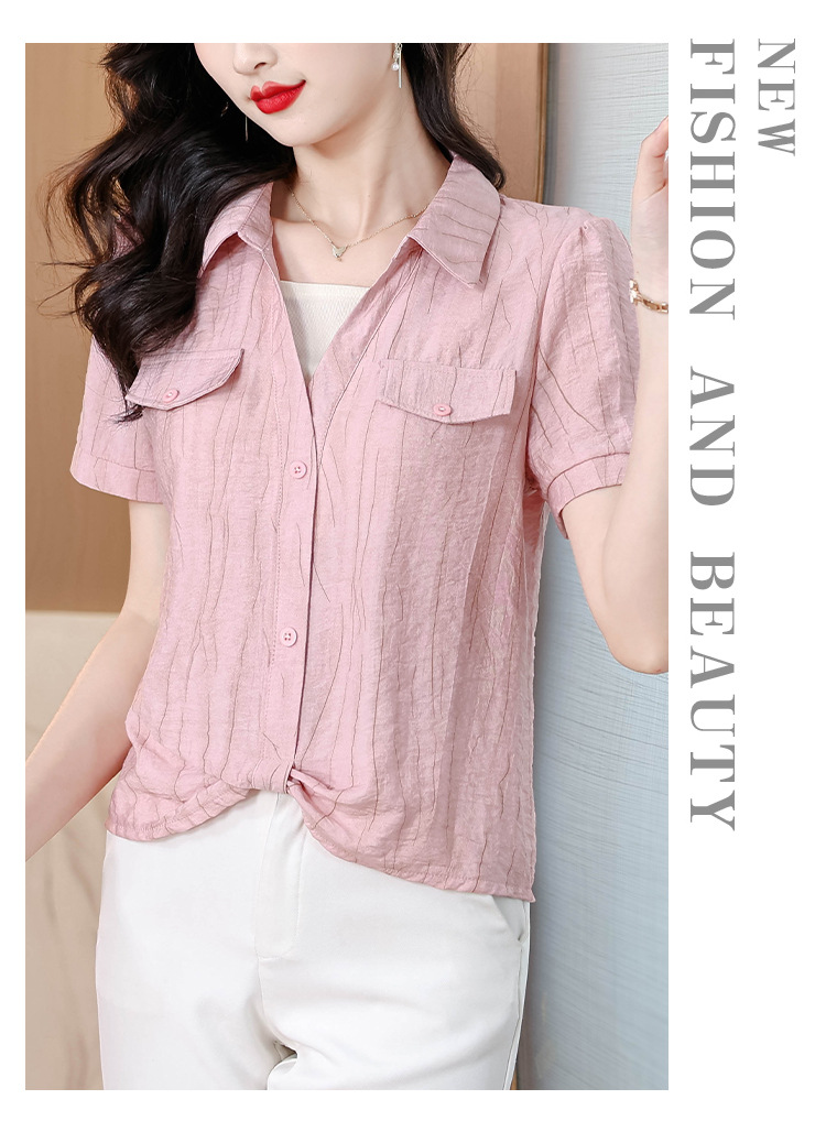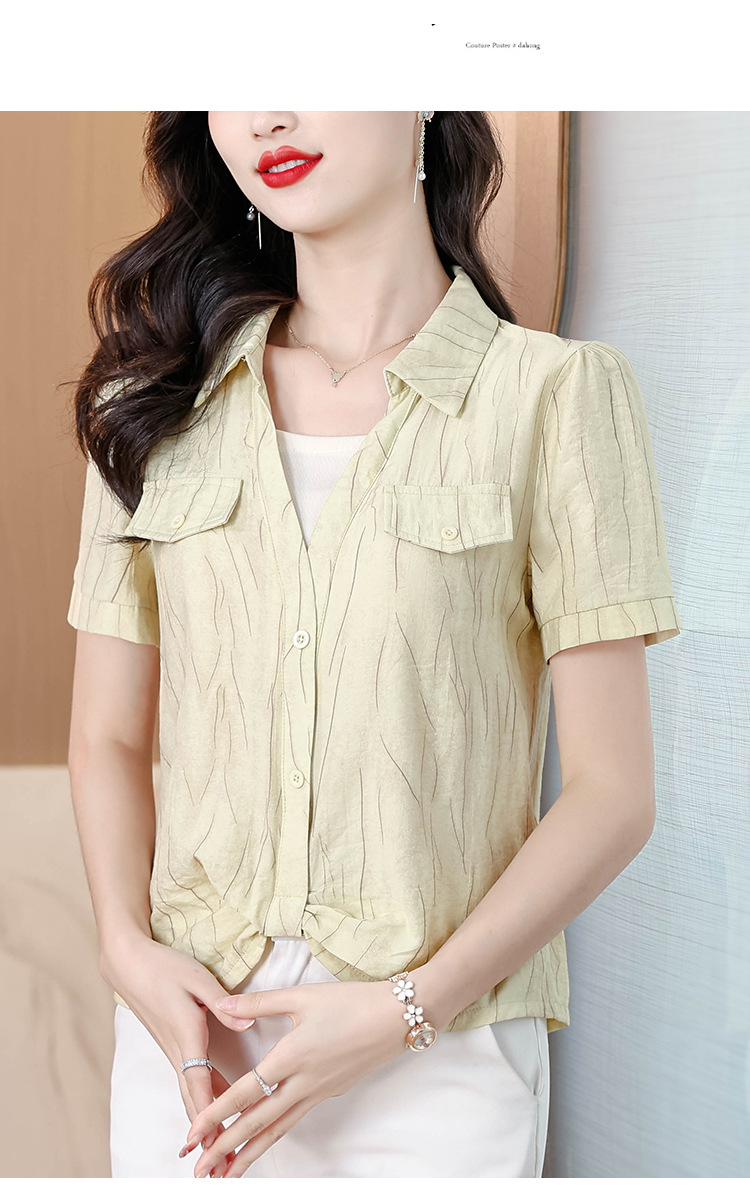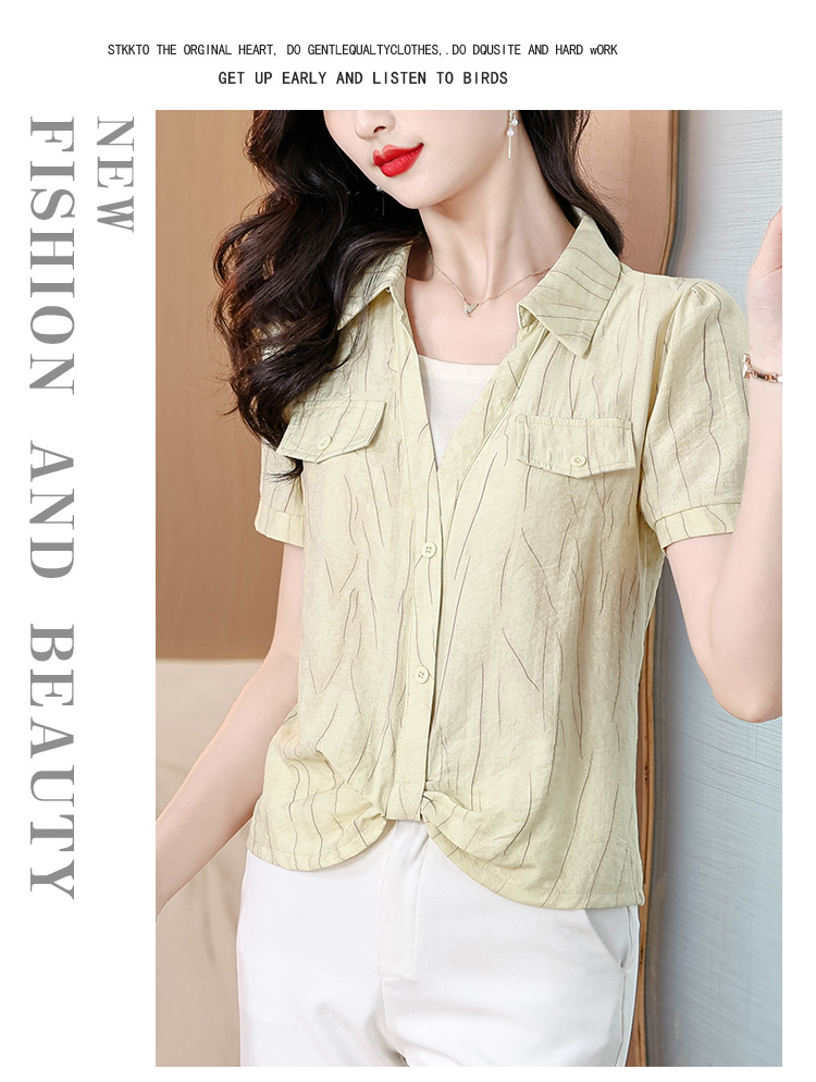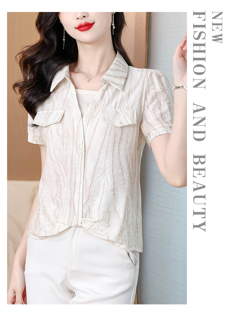 가짜 투피스 유행 연령 감소 반팔 셔츠 여성의 여름 새로운 세련된 짧은 카라 비노스 탑 아름다운 쉬폰 작은 셔츠스토어 가기