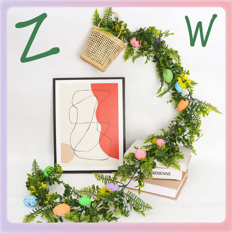✅계란 등나무 아마존 부활절 녹색 식물 인테리어 장식 휴일 장식 벽 매달려 인공 계란 덩굴