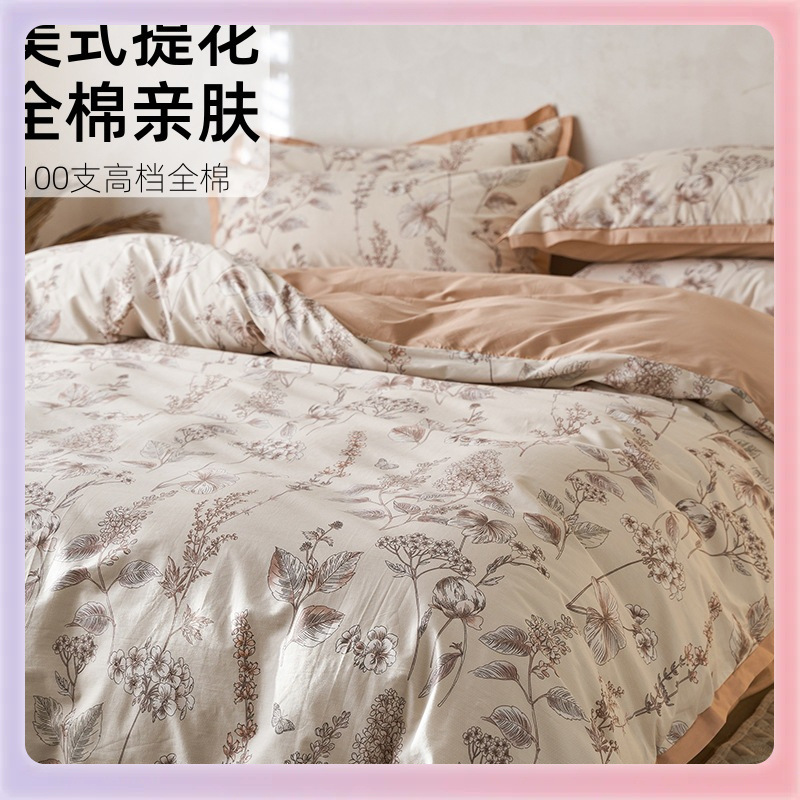 ✅새틴 4 피스 세트, 클래스 A 순면 침대 시트 퀼트 커버 아메리칸 스타일 레트로 스타일 침구 롱 벨벳