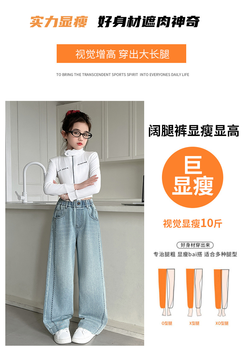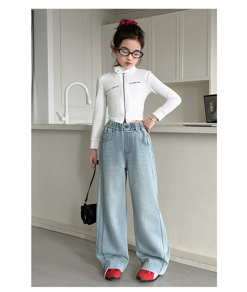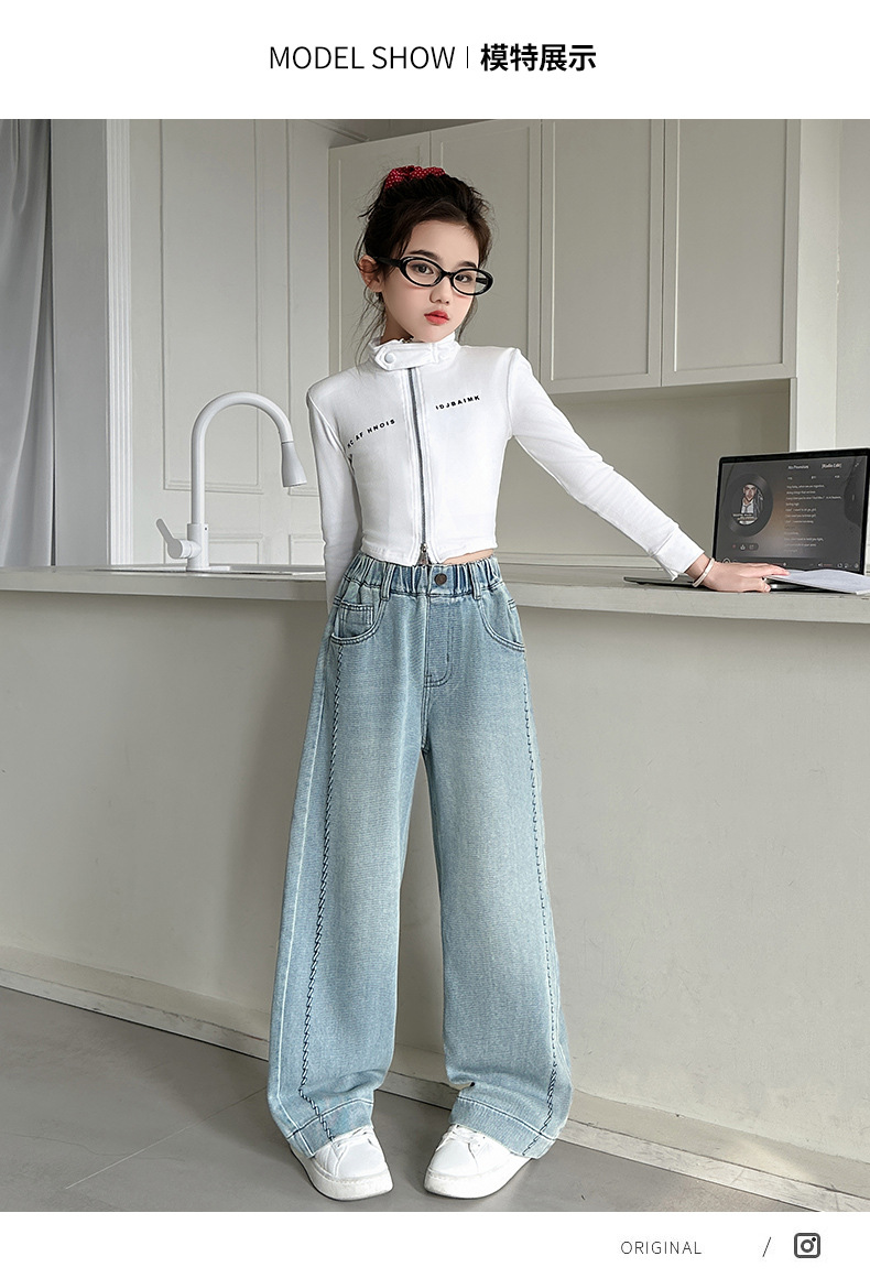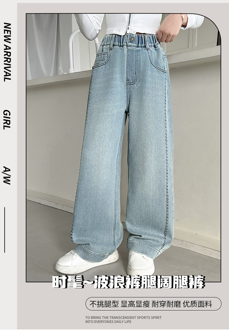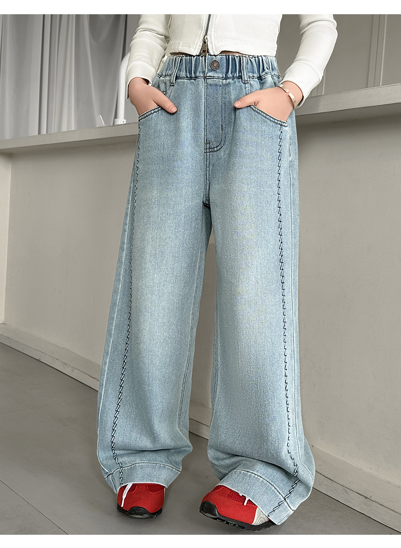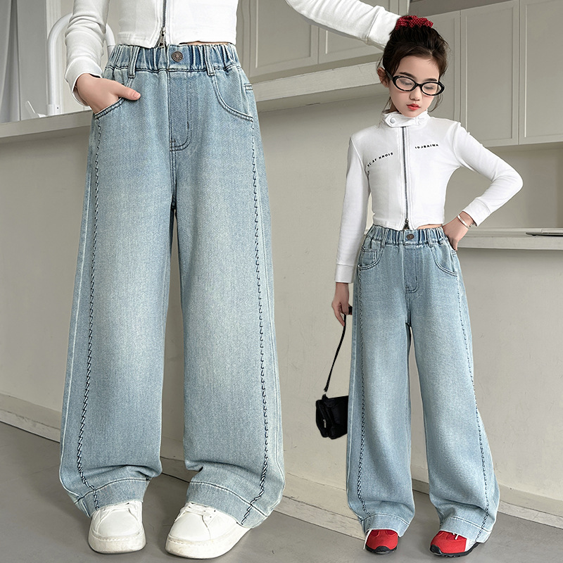 여아 봄 와이드 데님 팬츠 2026 신상 스타일리쉬 여아 봄 가을 한국 스타일 스트레이트 팬츠 여아 캐주얼 팬츠