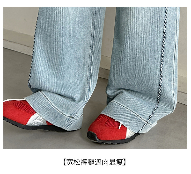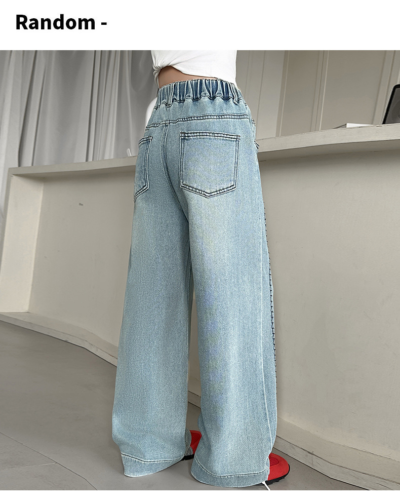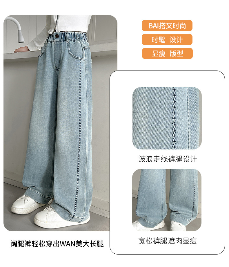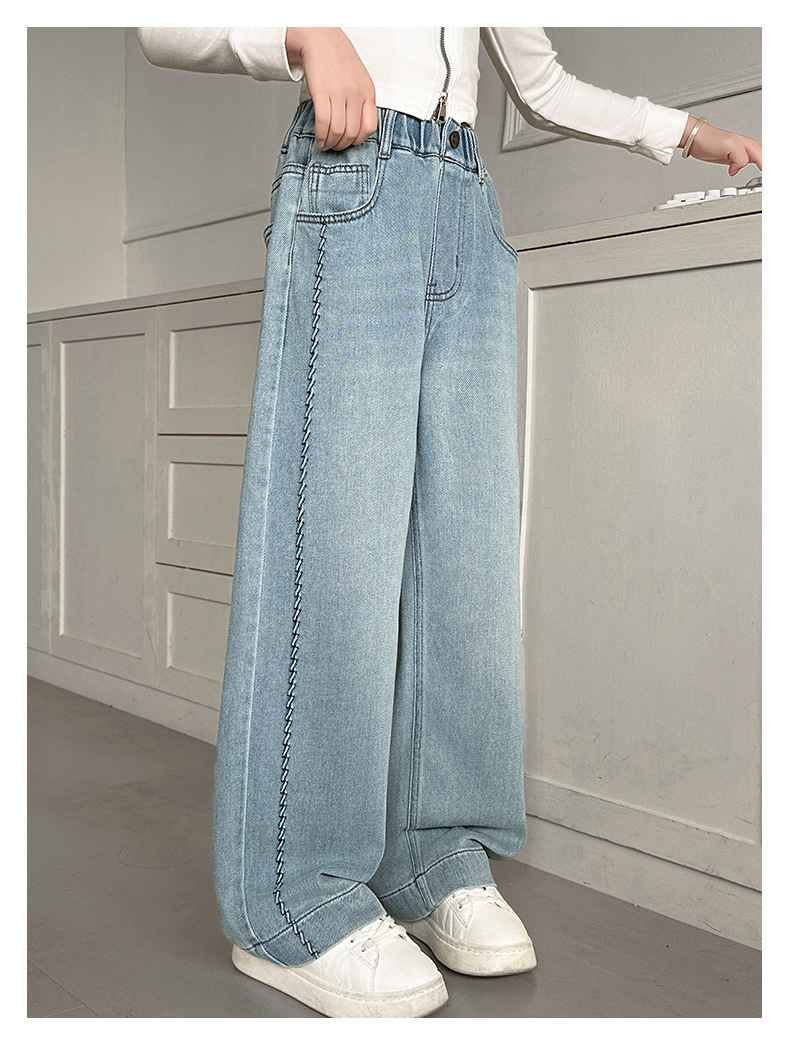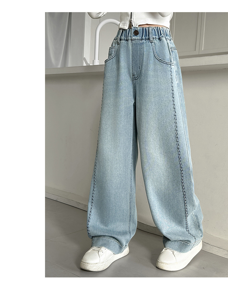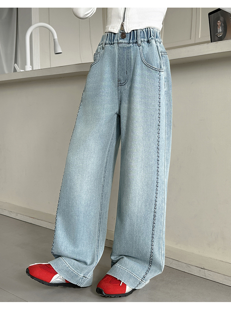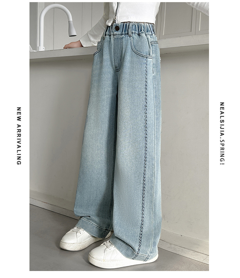 여아 봄 와이드 데님 팬츠 2026 신상 스타일리쉬 여아 봄 가을 한국 스타일 스트레이트 팬츠 여아 캐주얼 팬츠스토어 가기