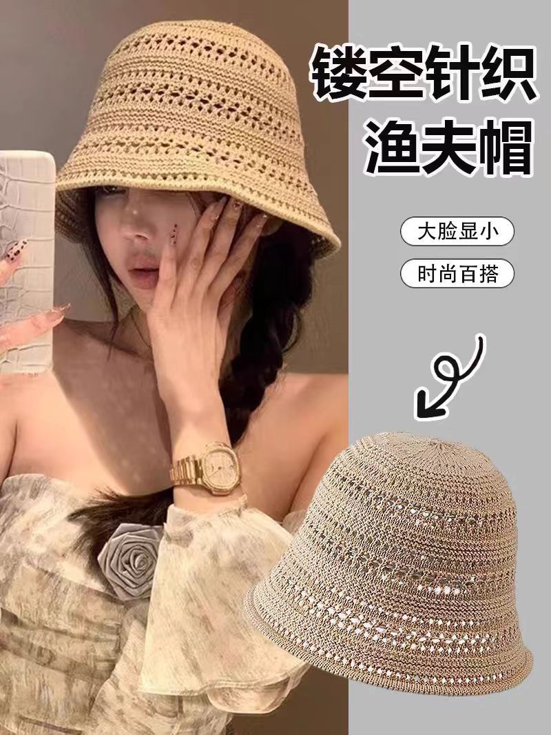 봄과 여름 새로운 속이 빈 복고풍 모자 여성의 한국 패션 단색 크로 셰 뜨개질 냄비 모자 기질 연령 감소 선 스크린 모자