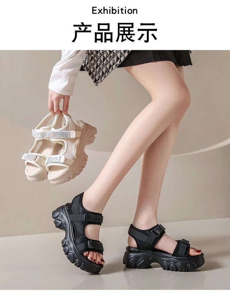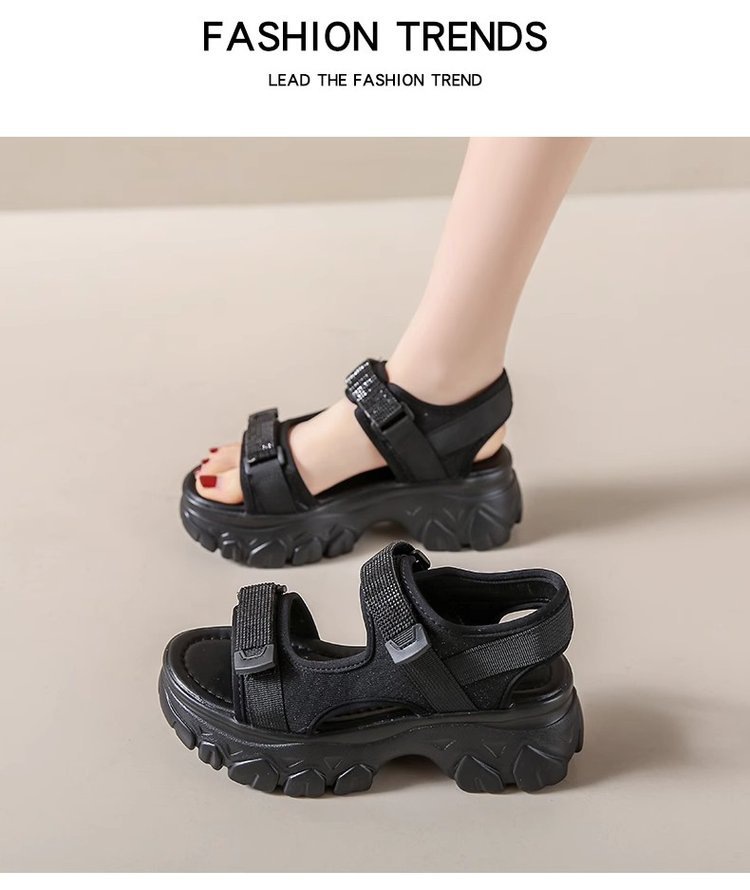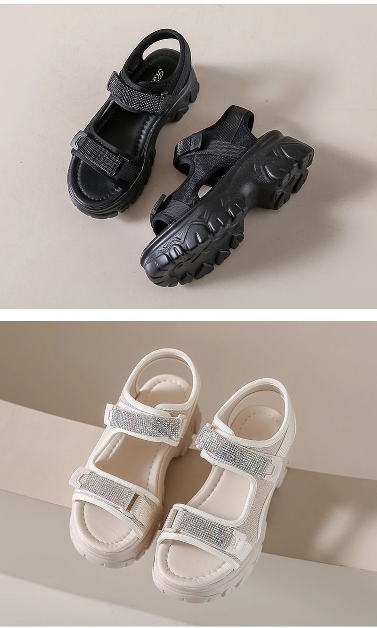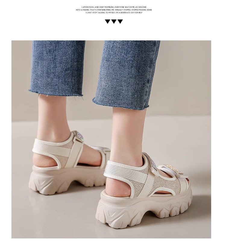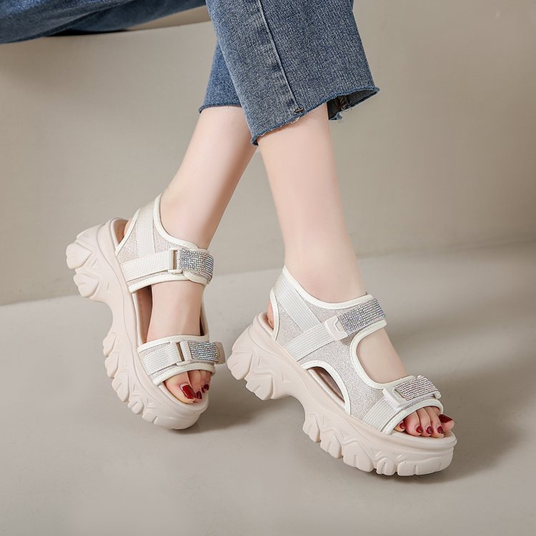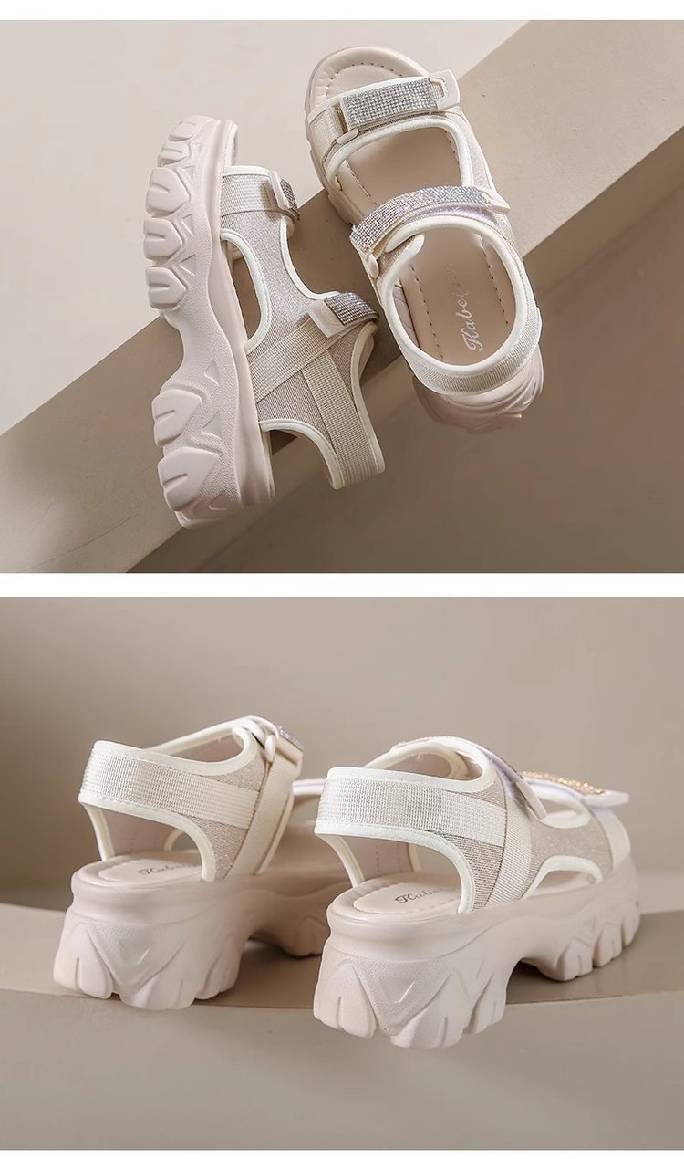 샌들 여성용 아우터웨어 2025 여름 새로운 도착 토레 샌들 여성 라인스톤 플랫폼 비치 캐주얼 소프트 하단 하이트닝 슈즈