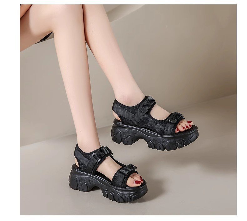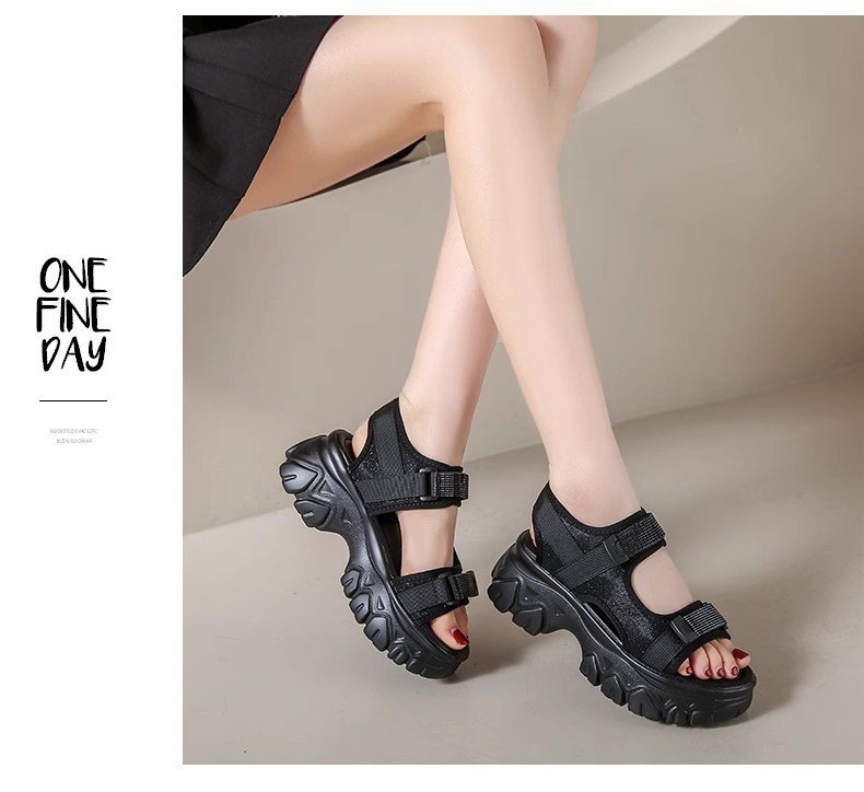 샌들 여성용 아우터웨어 2025 여름 새로운 도착 토레 샌들 여성 라인스톤 플랫폼 비치 캐주얼 소프트 하단 하이트닝 슈즈스토어 가기