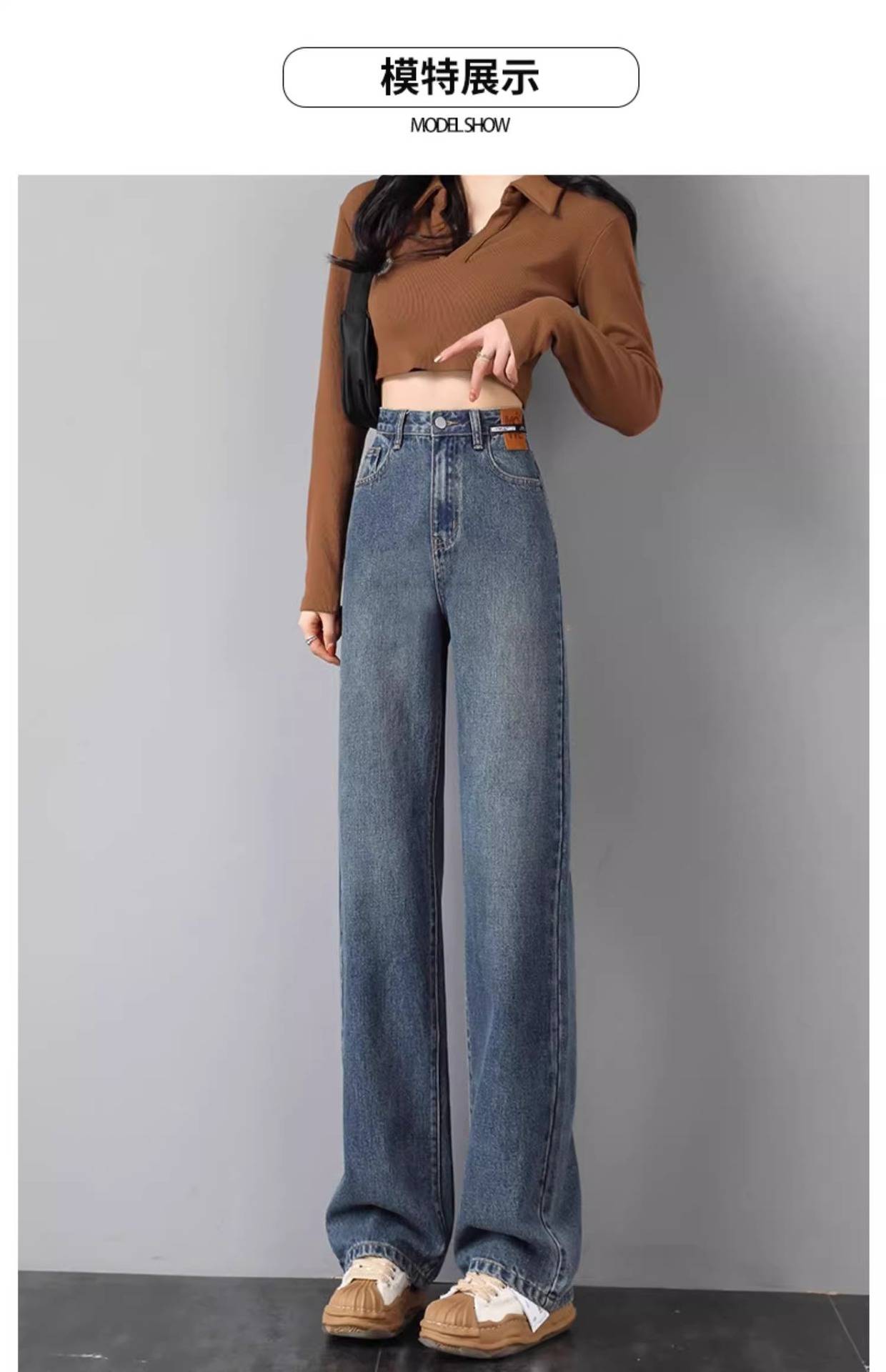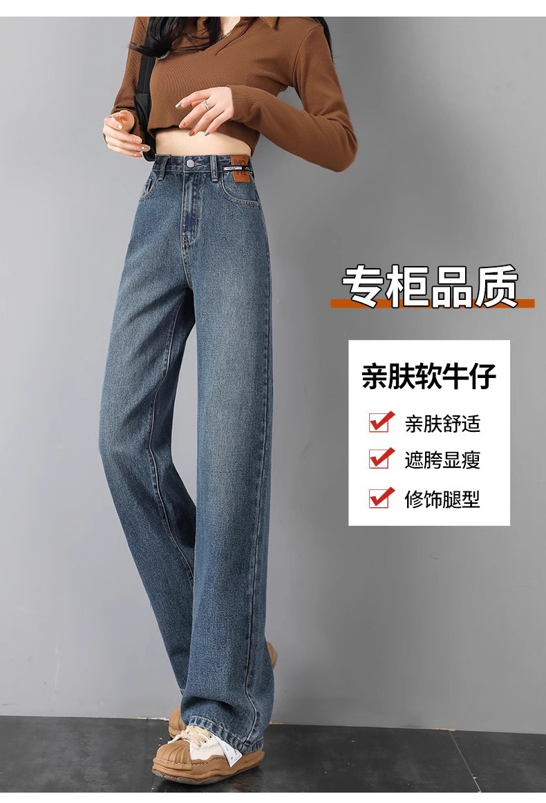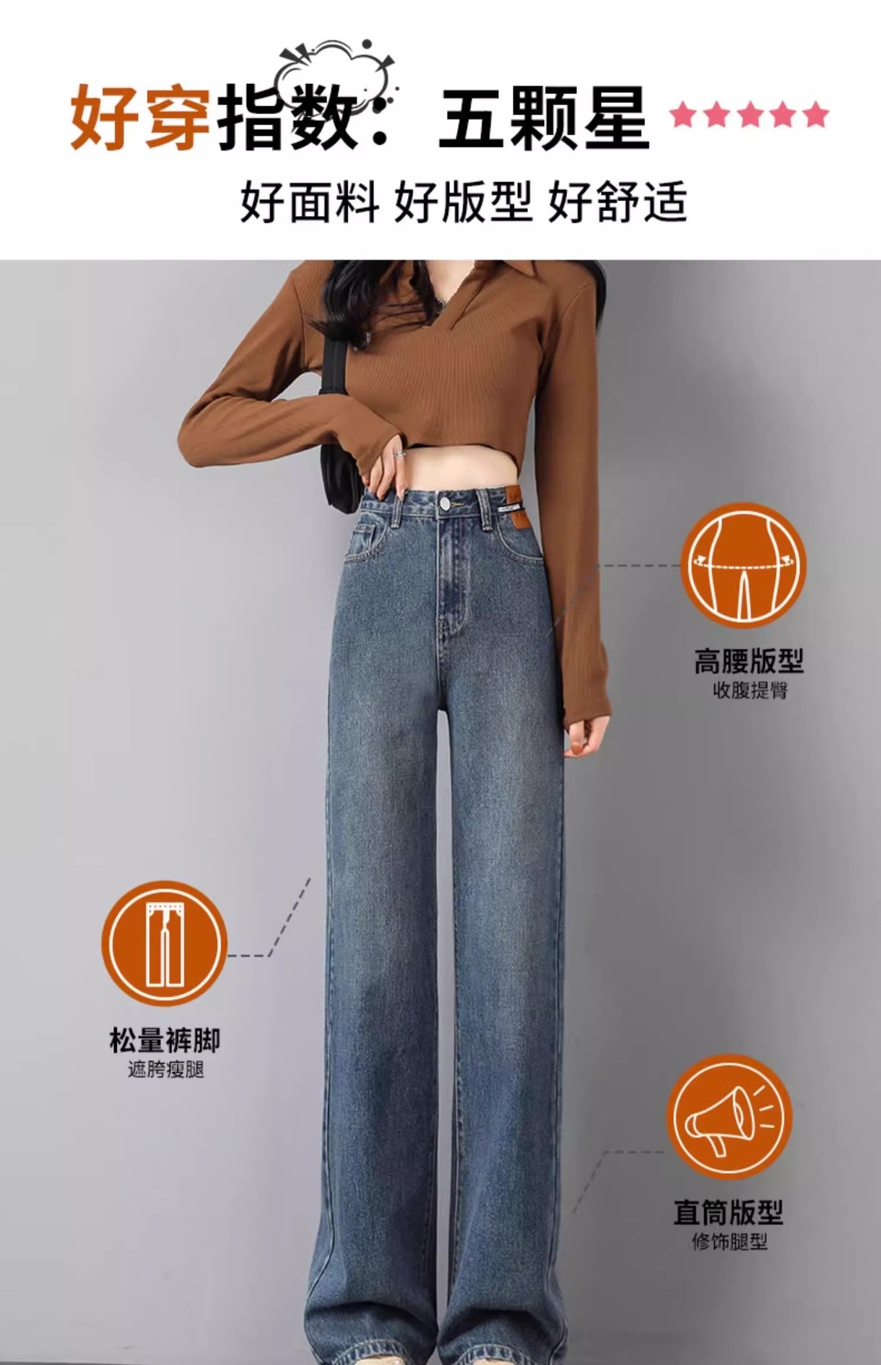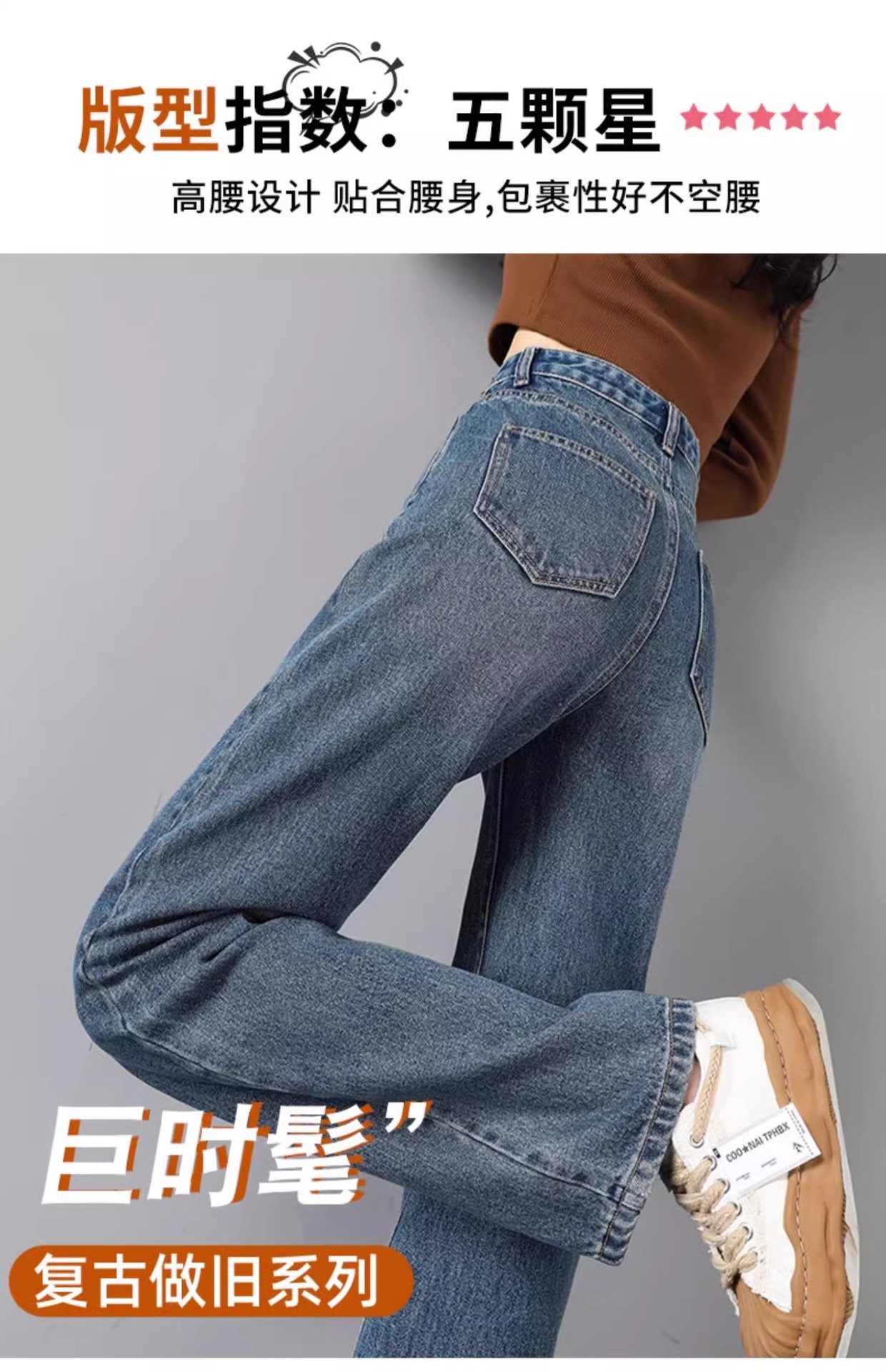 청바지 여성의 2025 새로운 폭발 봄과 가을 높은 허리 배 모양의 작은 넓은 다리 바지 좁은 판 스트레이트 바지스토어 가기