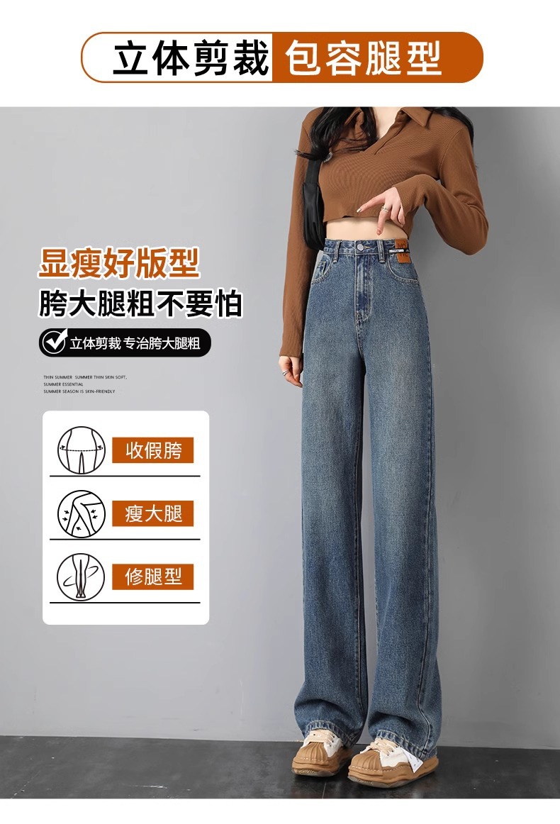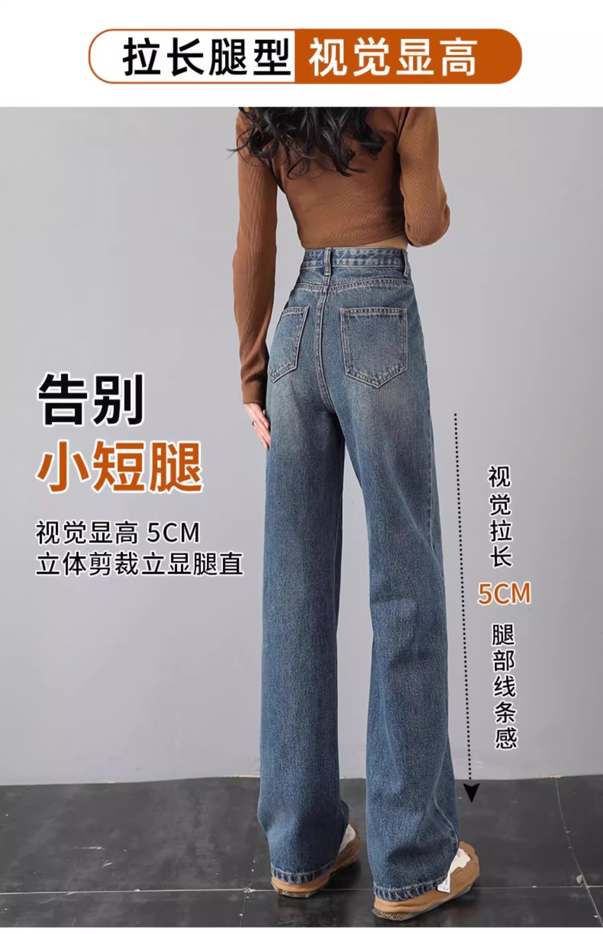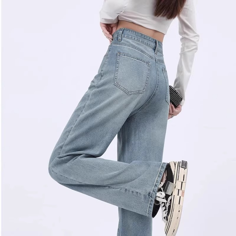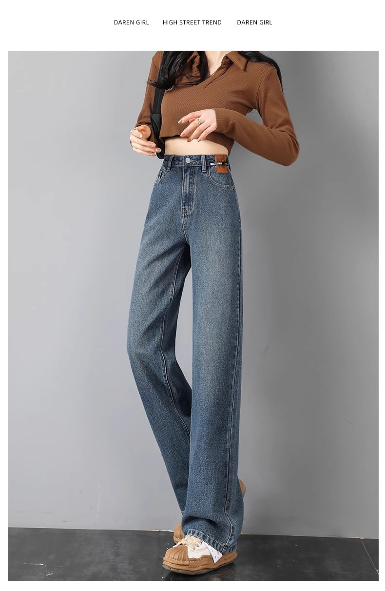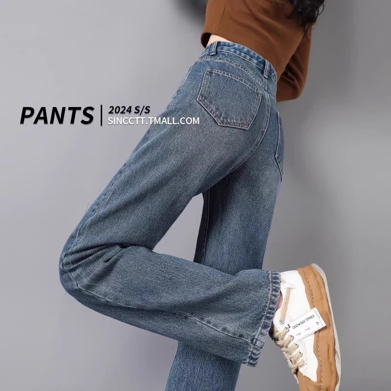 청바지 여성의 2025 새로운 폭발 봄과 가을 높은 허리 배 모양의 작은 넓은 다리 바지 좁은 판 스트레이트 바지스토어 가기