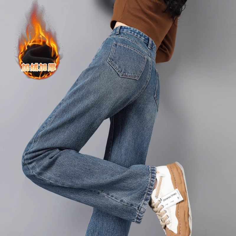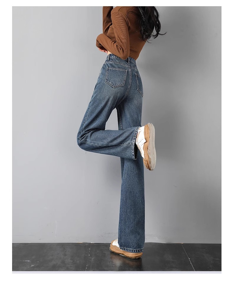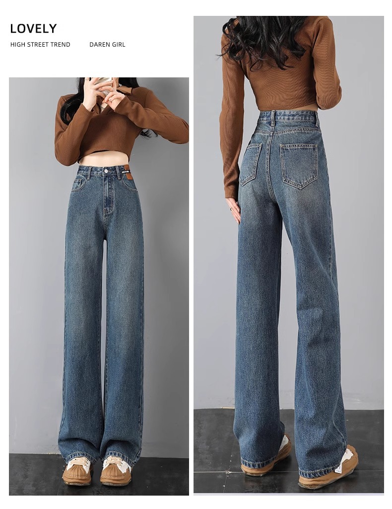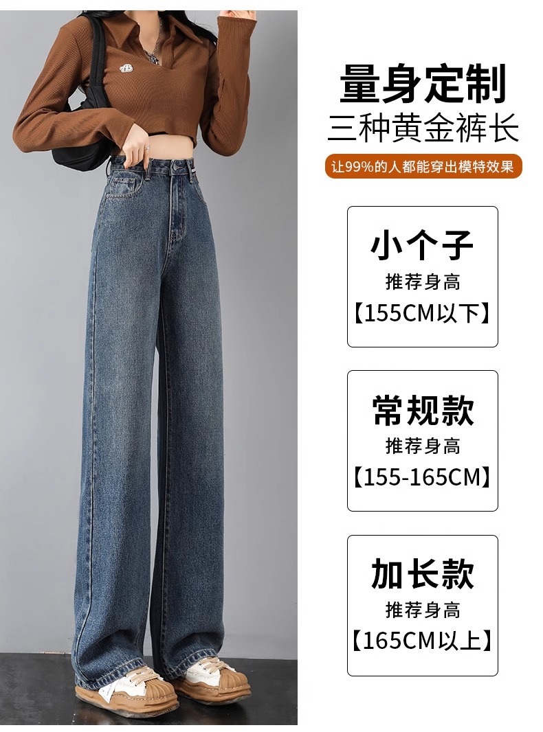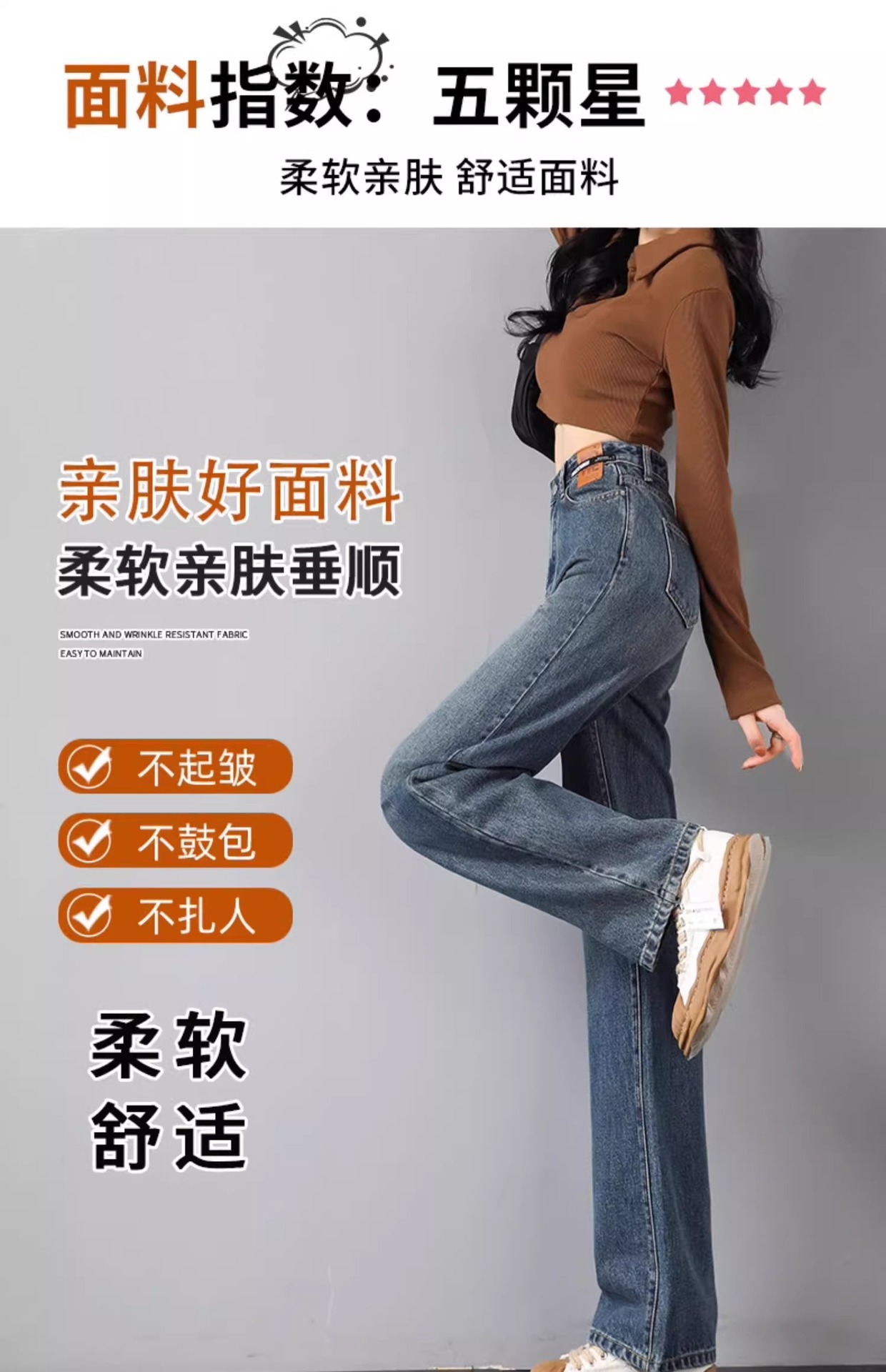 청바지 여성의 2025 새로운 폭발 봄과 가을 높은 허리 배 모양의 작은 넓은 다리 바지 좁은 판 스트레이트 바지스토어 가기
