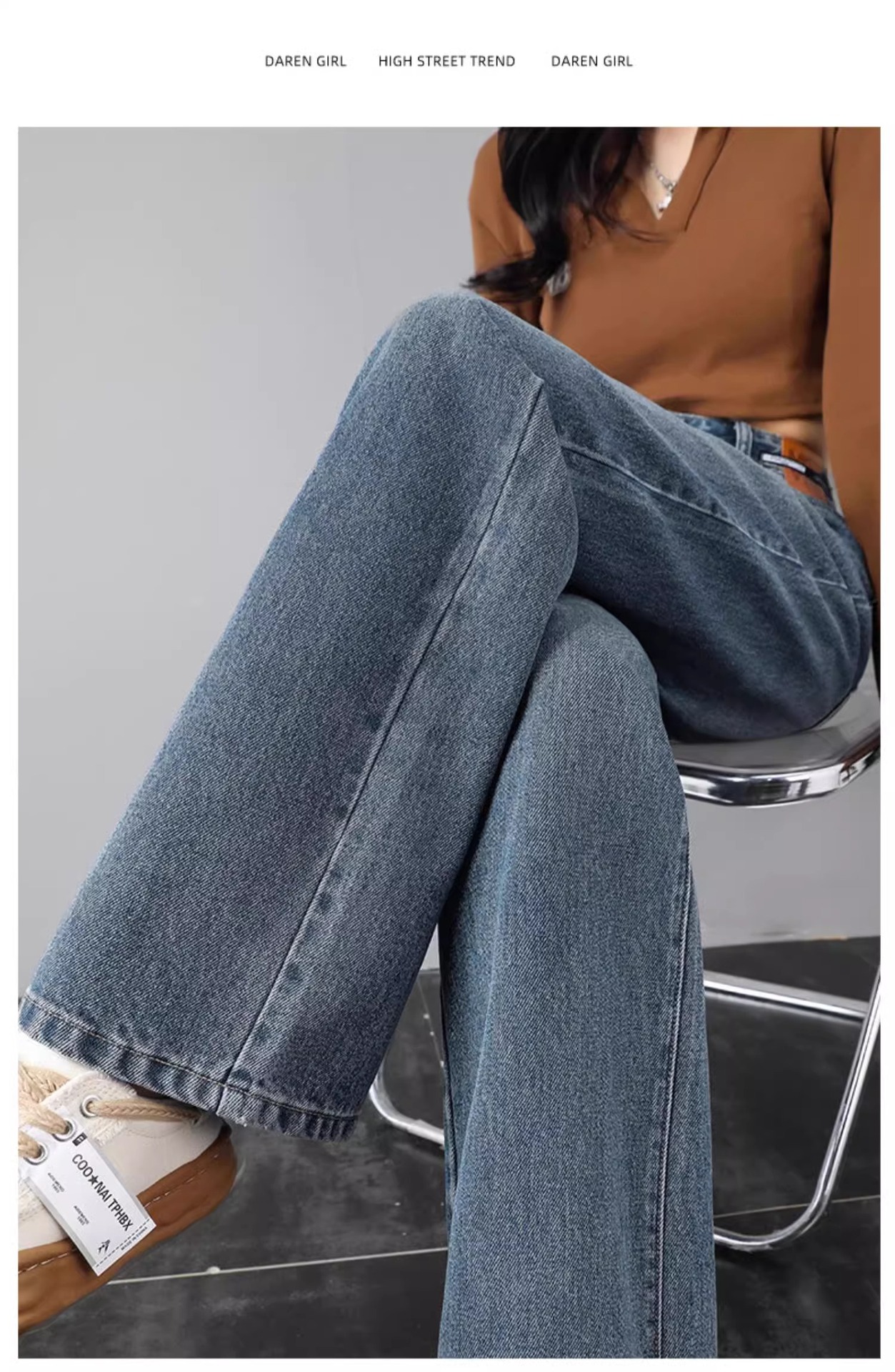 청바지 여성의 2025 새로운 폭발 봄과 가을 높은 허리 배 모양의 작은 넓은 다리 바지 좁은 판 스트레이트 바지