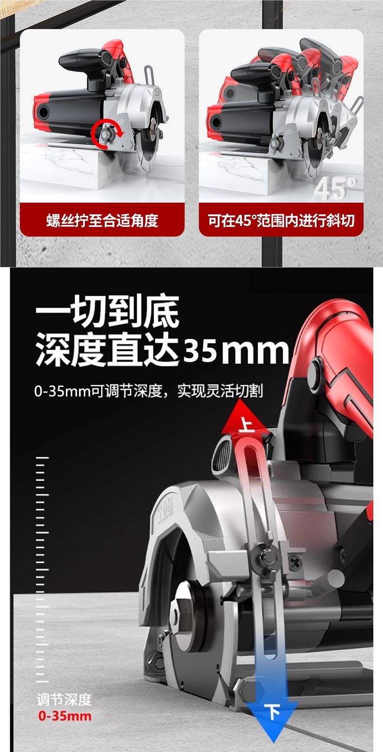 • 2800W 산업용 [목재/금속 톱날] 자/깊이 조절 가능/베벨 절단 가능