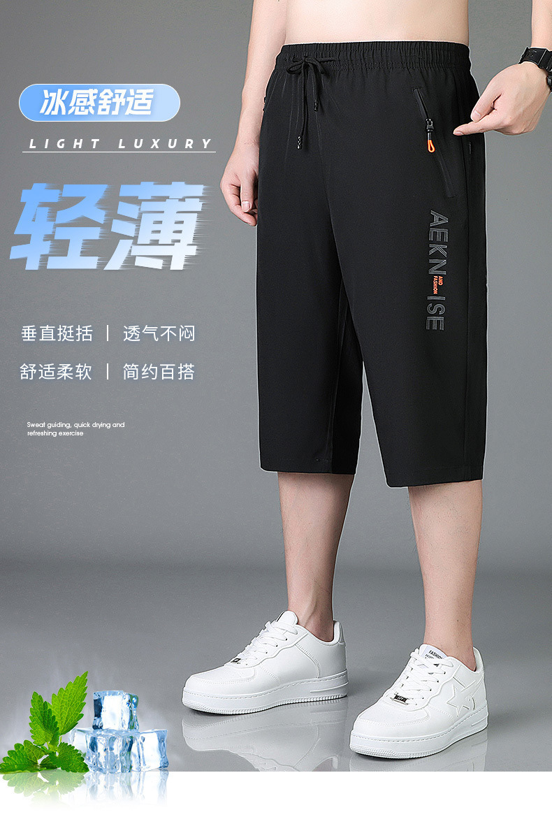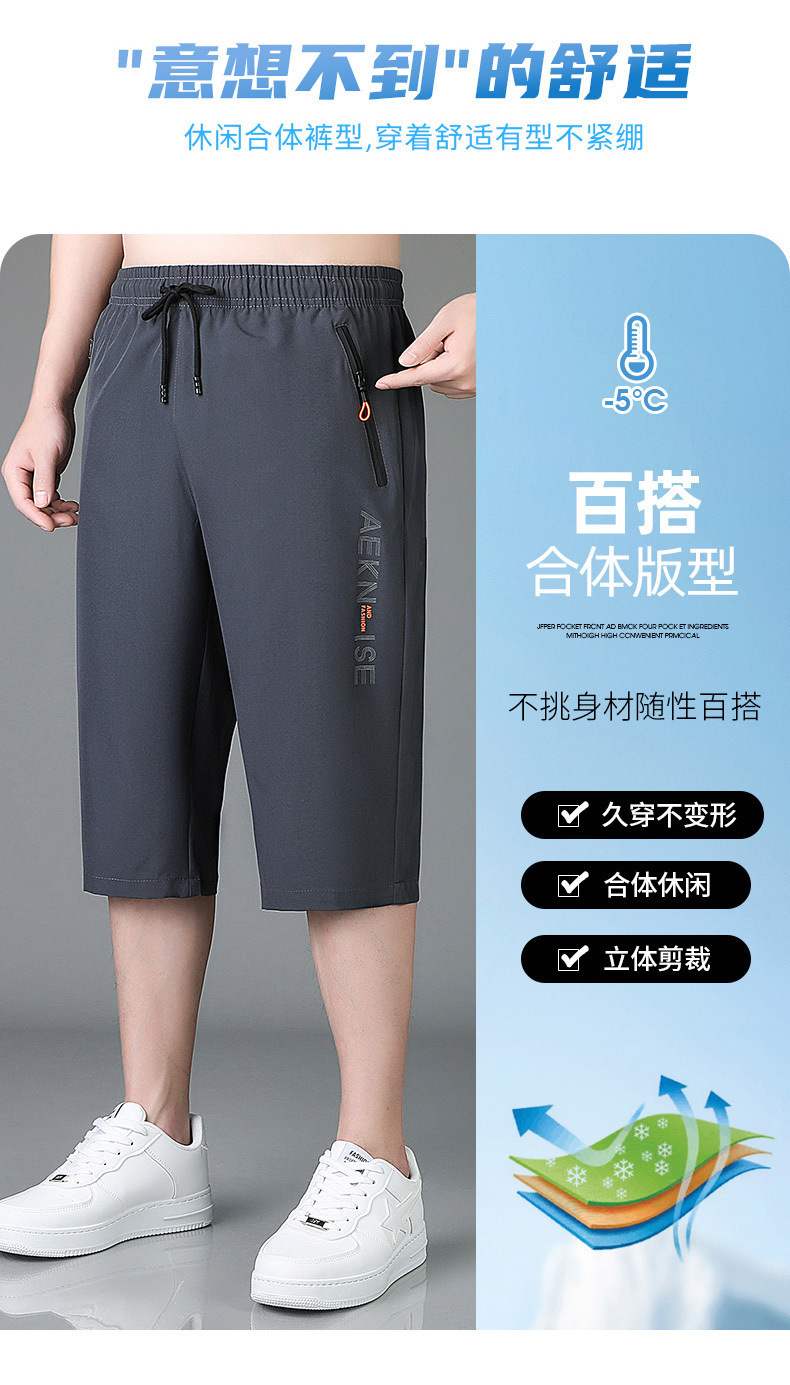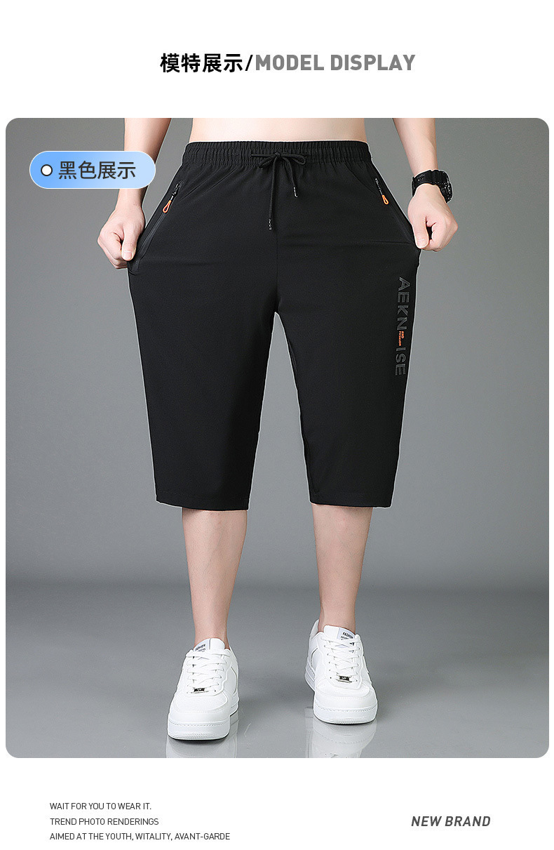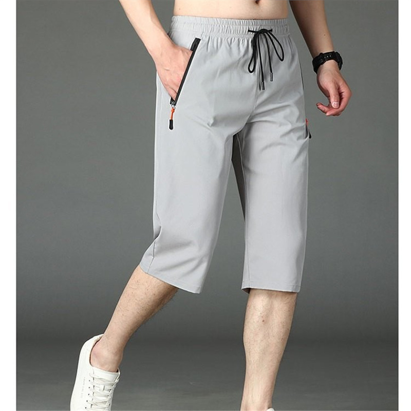 새로운 도착 자른 바지 남자 아이스 실크 빠른 건조 반바지 느슨한 스트레이트 여름 크기 캐주얼 투피스 남자 스포츠 바지스토어 가기