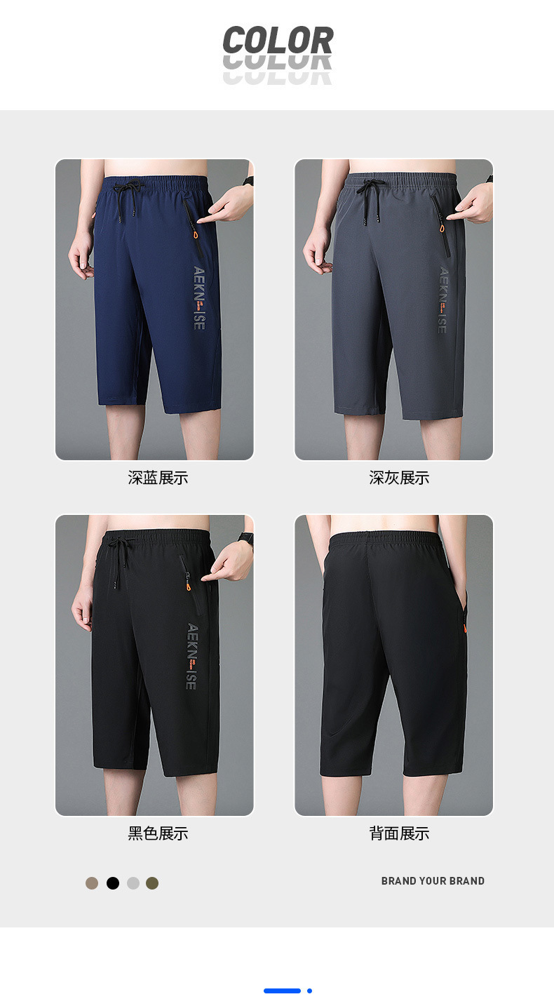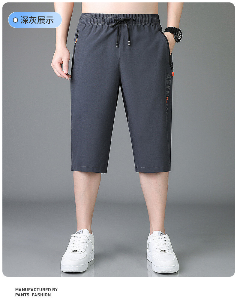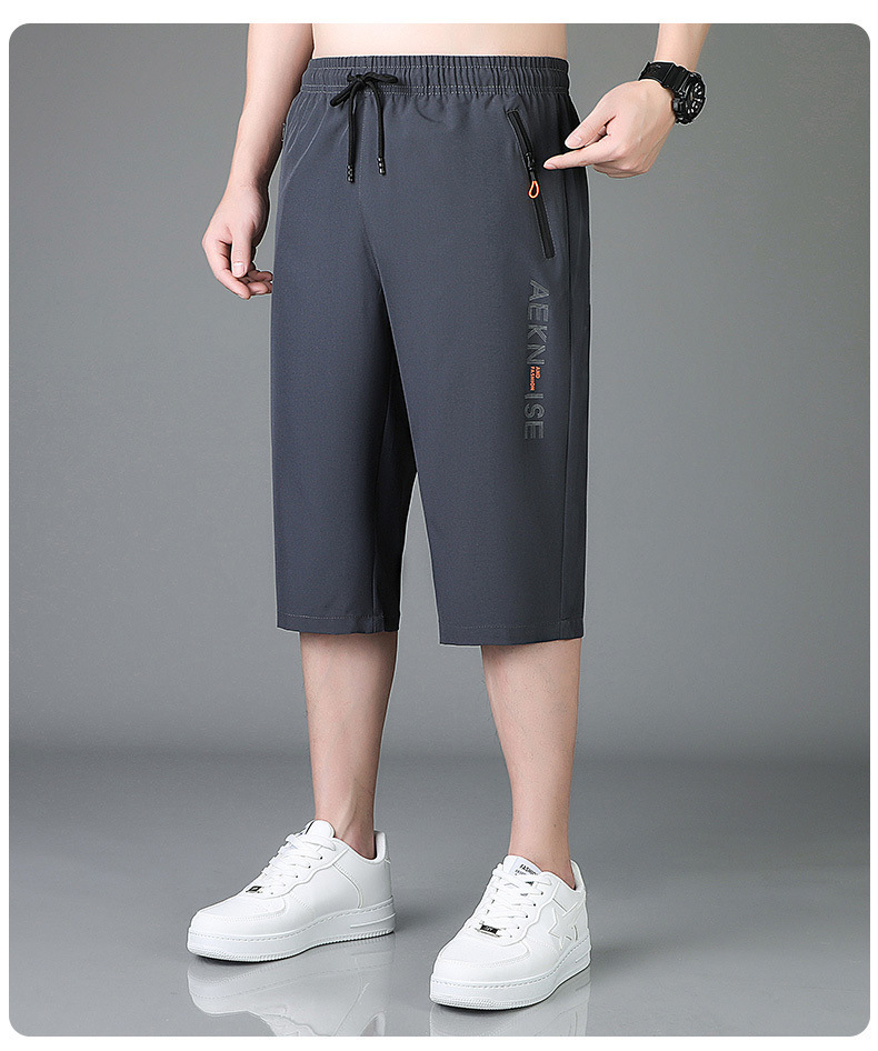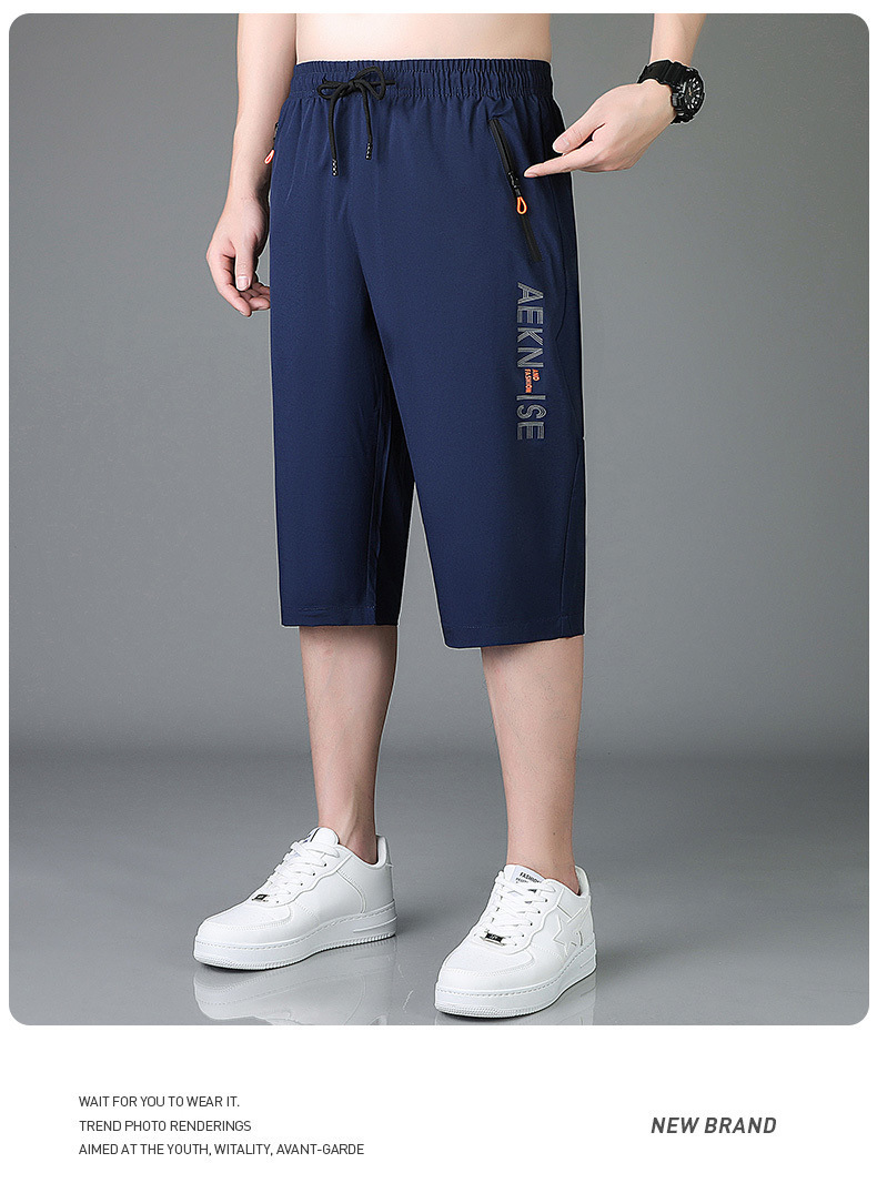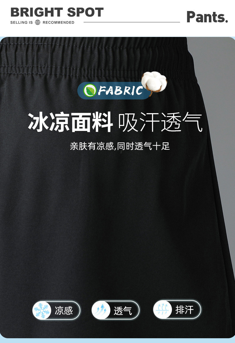 새로운 도착 자른 바지 남자 아이스 실크 빠른 건조 반바지 느슨한 스트레이트 여름 크기 캐주얼 투피스 남자 스포츠 바지스토어 가기