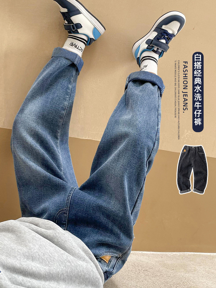 소년 바지 봄과 가을 청바지 봄 2025 새로운 어린이 바지 큰 어린이 바지 느슨한 한국 유행
