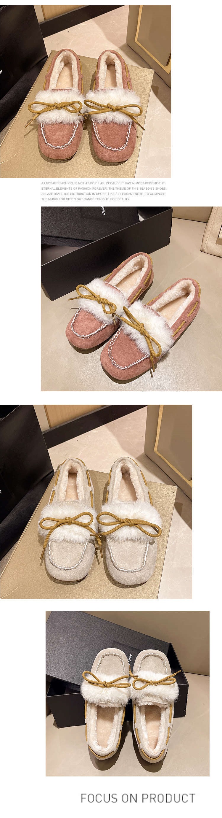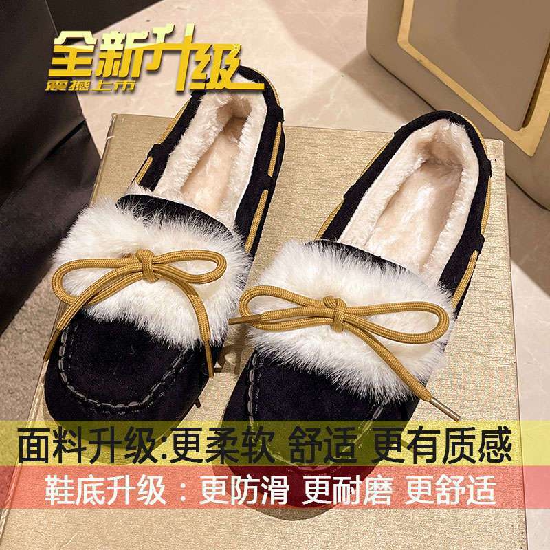 면화 여성용 겨울 의상 2023 새로운 활 부드러운 바닥 캐주얼 기모 따뜻한 슬립 온 로퍼스토어 가기