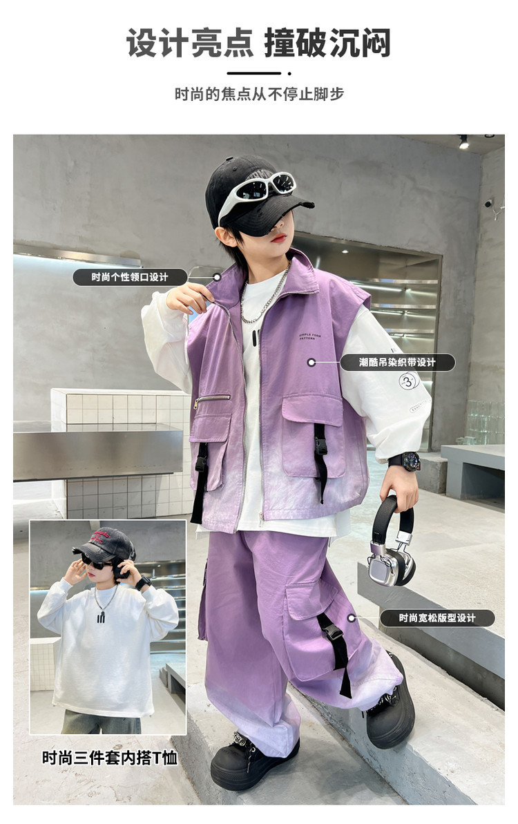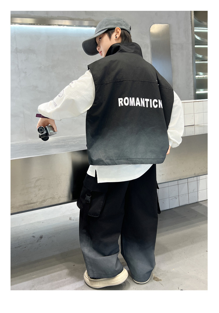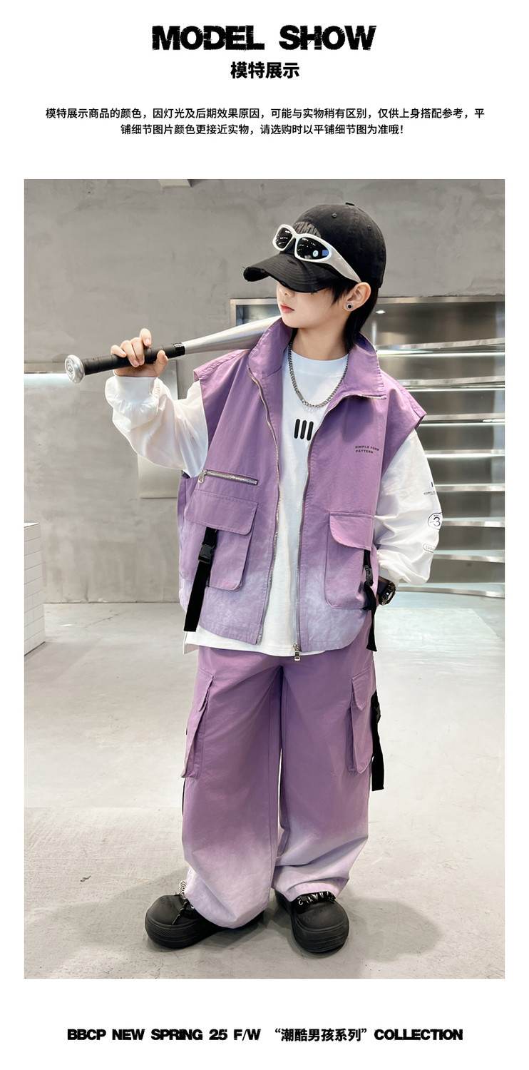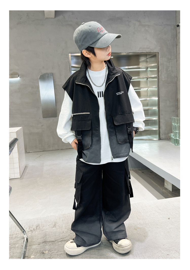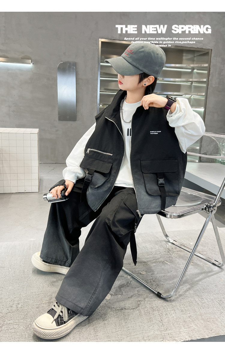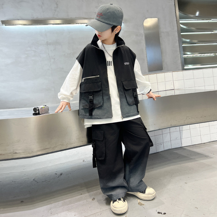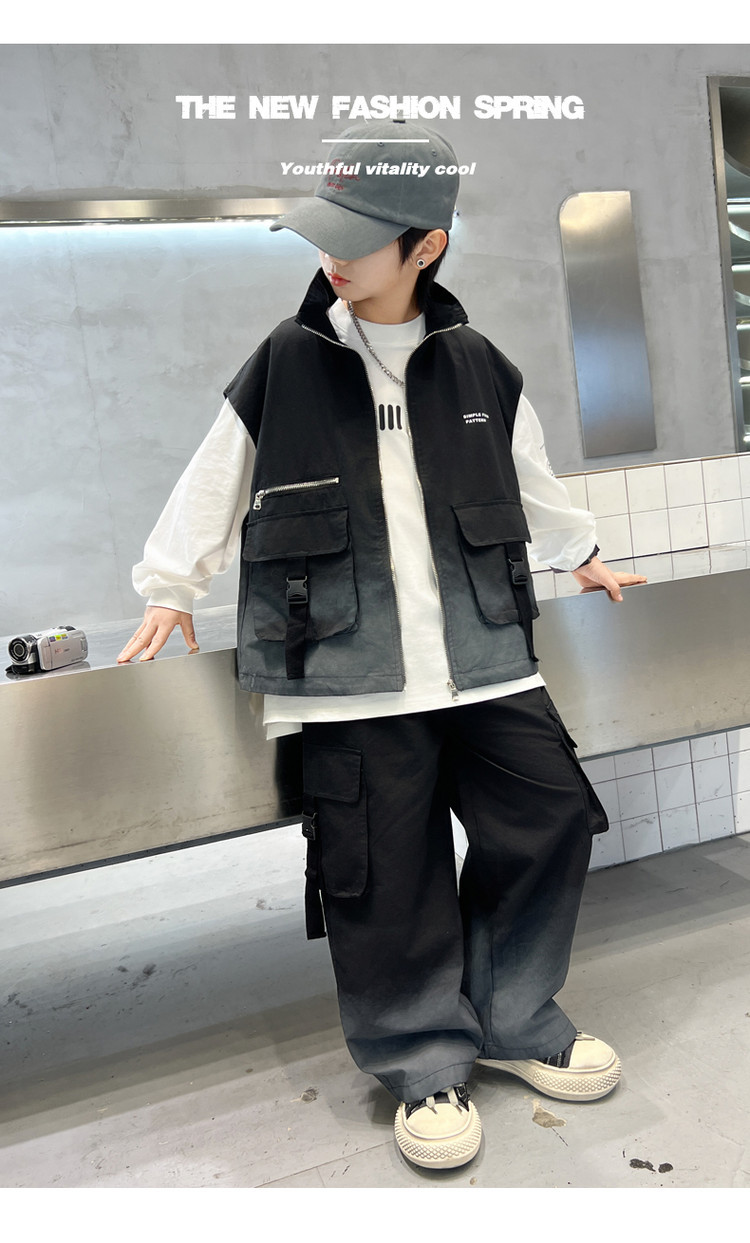 소년의 봄 원피스 세트 2025 새로운 잘 생긴 한국 유행 봄 가을 작업복 조끼 3 피스 서양식스토어 가기