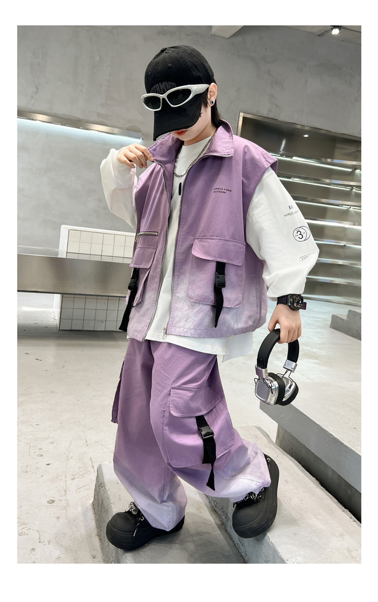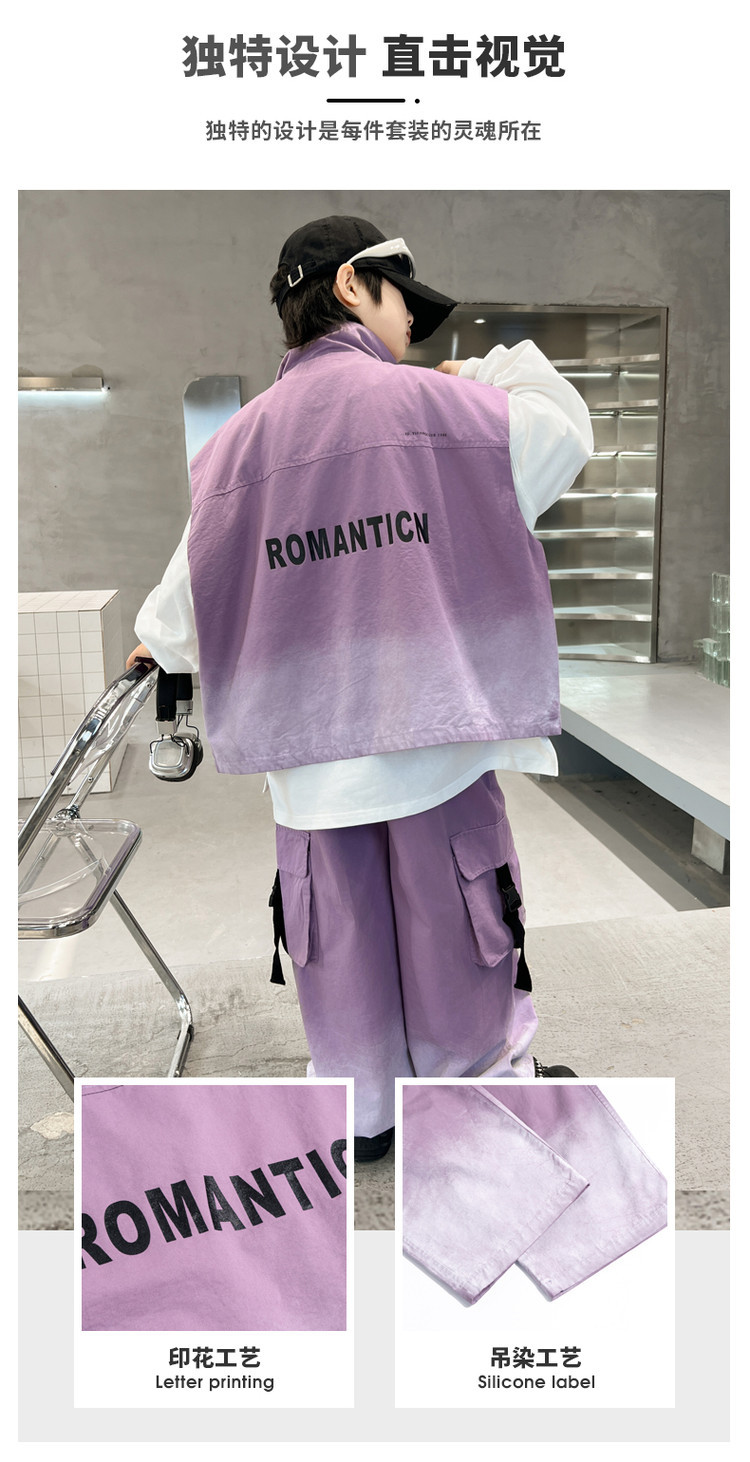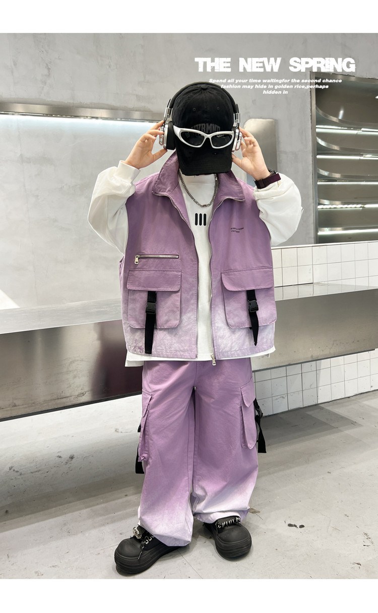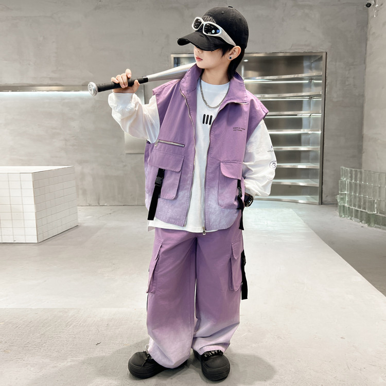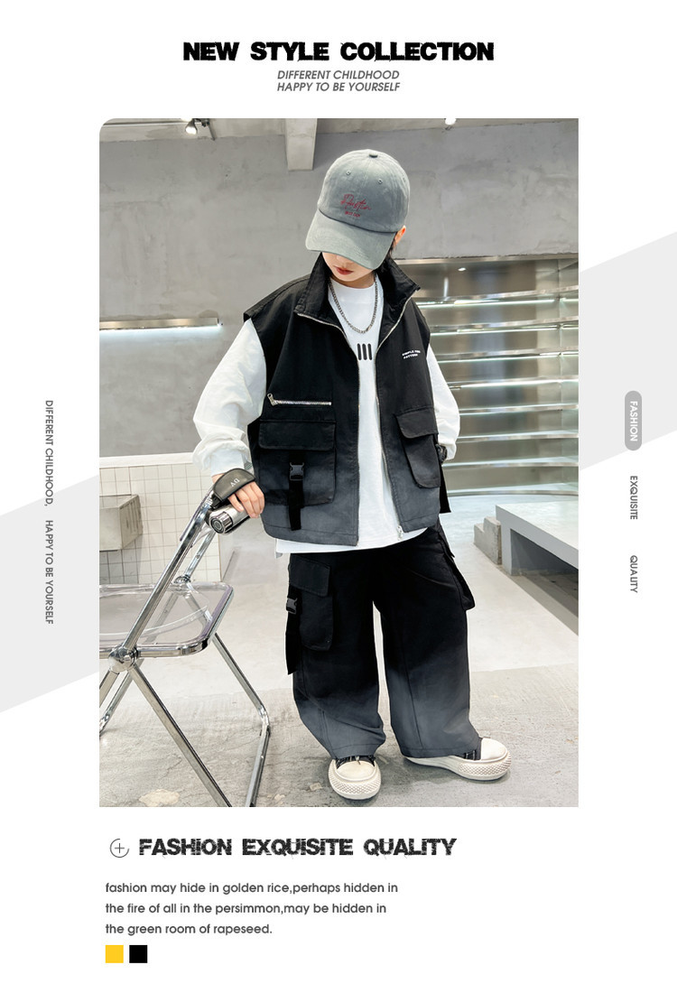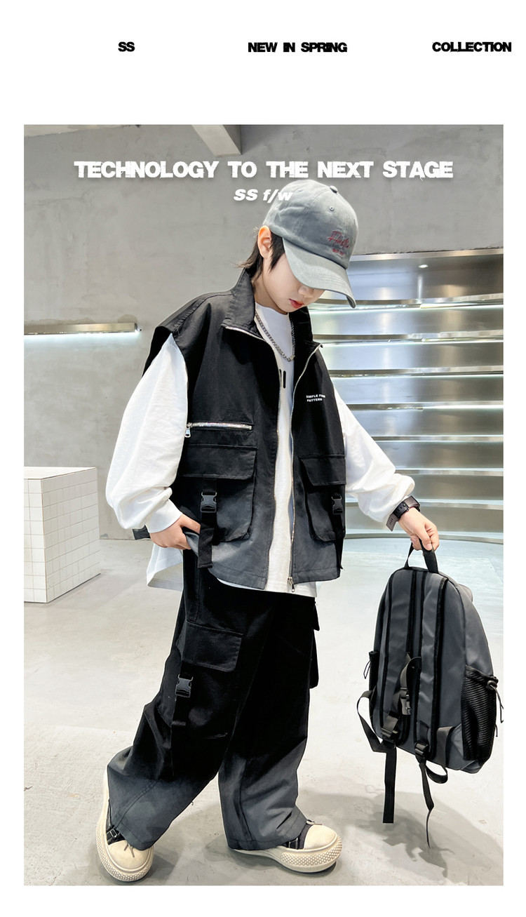 소년의 봄 원피스 세트 2025 새로운 잘 생긴 한국 유행 봄 가을 작업복 조끼 3 피스 서양식스토어 가기