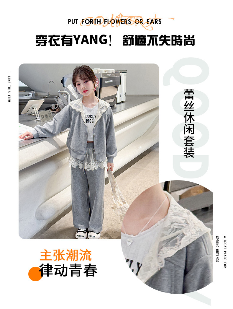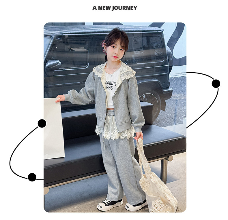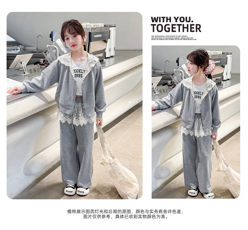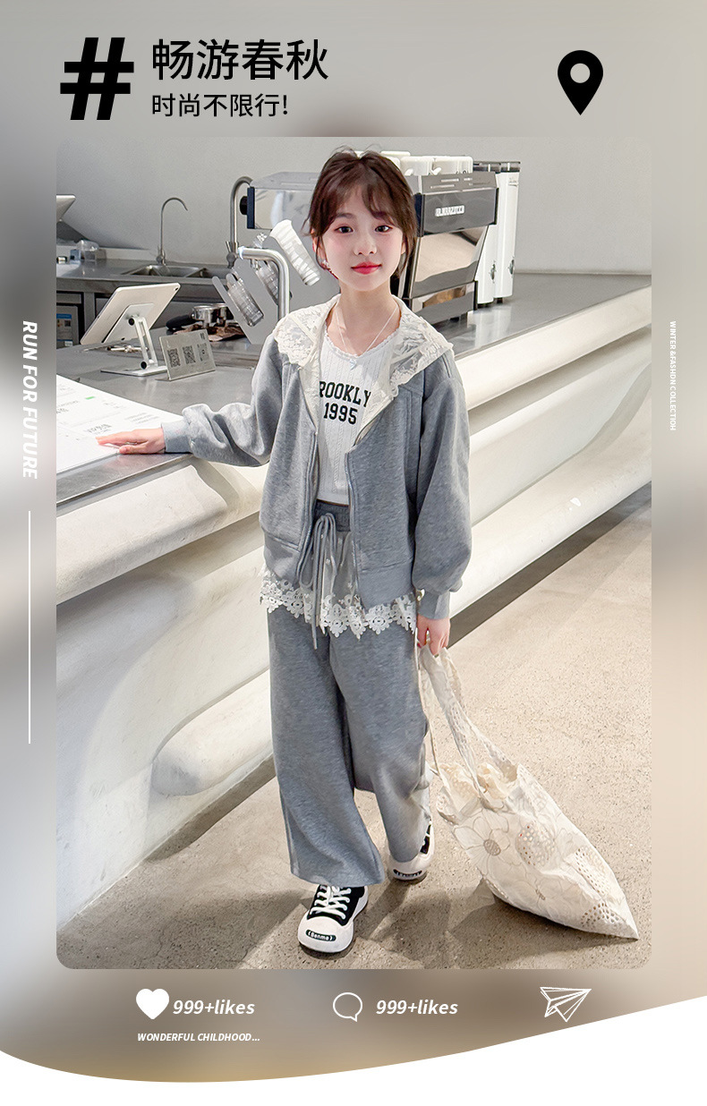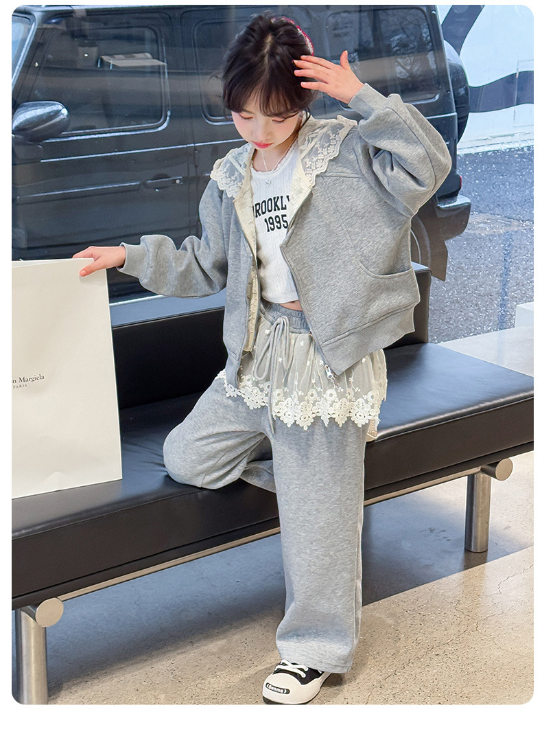 여자 스포츠 세트 후드 니트 스웨터 캐주얼 레이스 산소 카디건 재킷 바느질 바지 투피스 세트