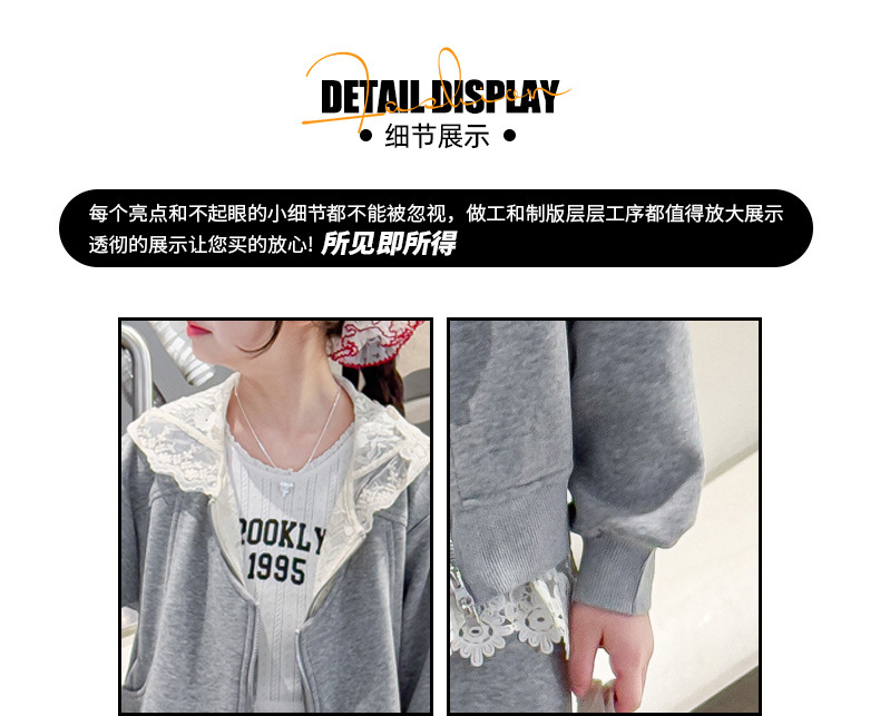 여자 스포츠 세트 후드 니트 스웨터 캐주얼 레이스 산소 카디건 재킷 바느질 바지 투피스 세트스토어 가기