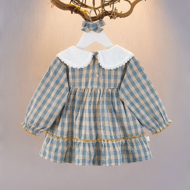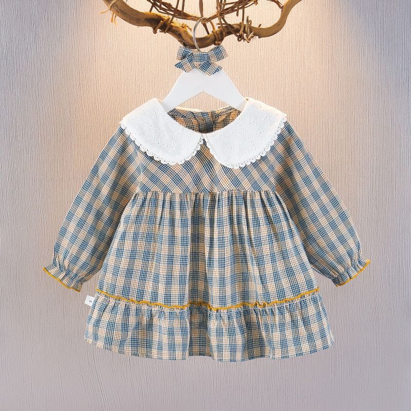 2025 새로운 아기 소녀 치마 어린이 원피스 소녀 격자 무늬 스커트 아기 공주 스커트 봄 가을 겨울 6 7 월