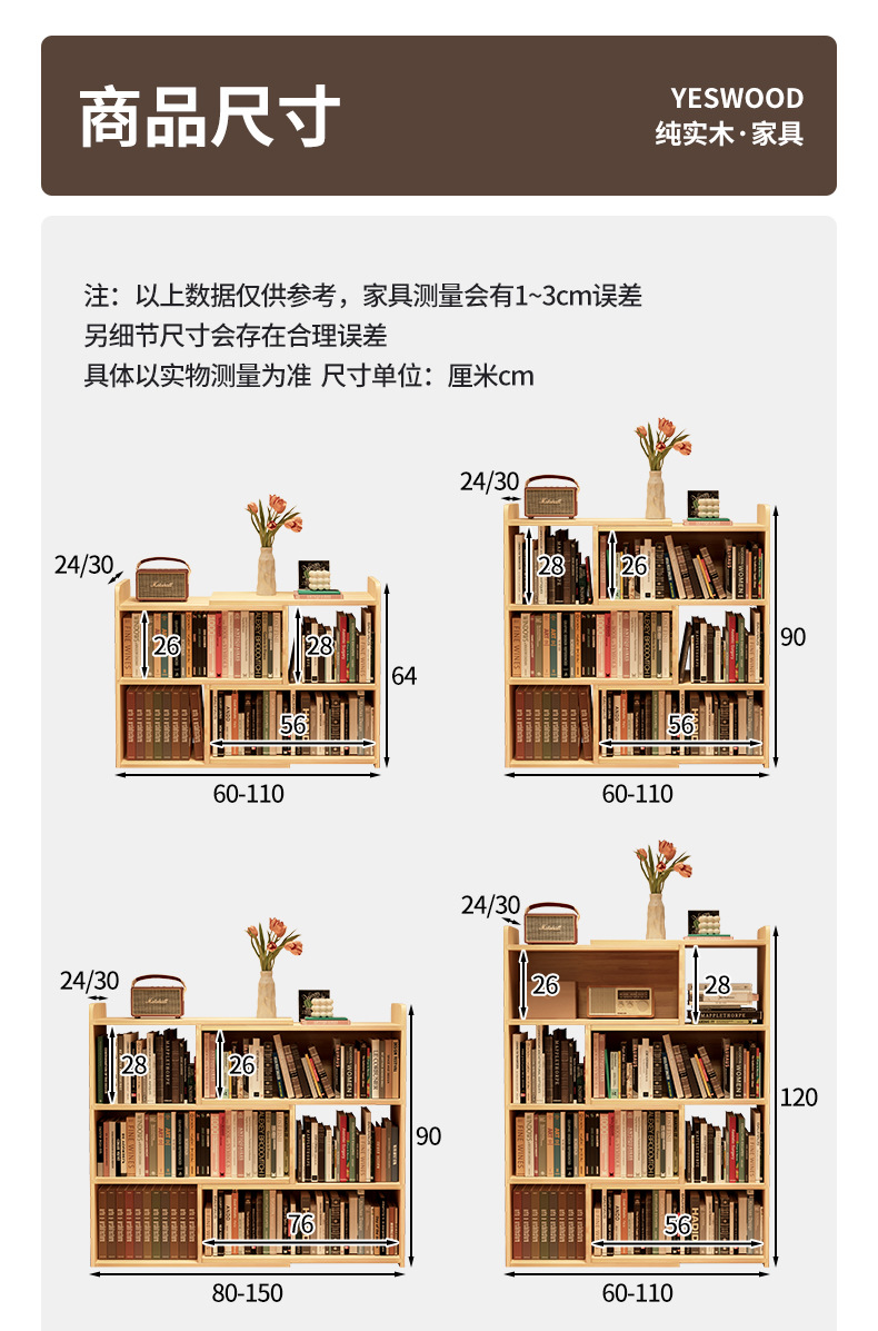 • [원목 무도장 확장형 모델] 깊이 30cm, 4단, 수납식❤️80-150*30*120c