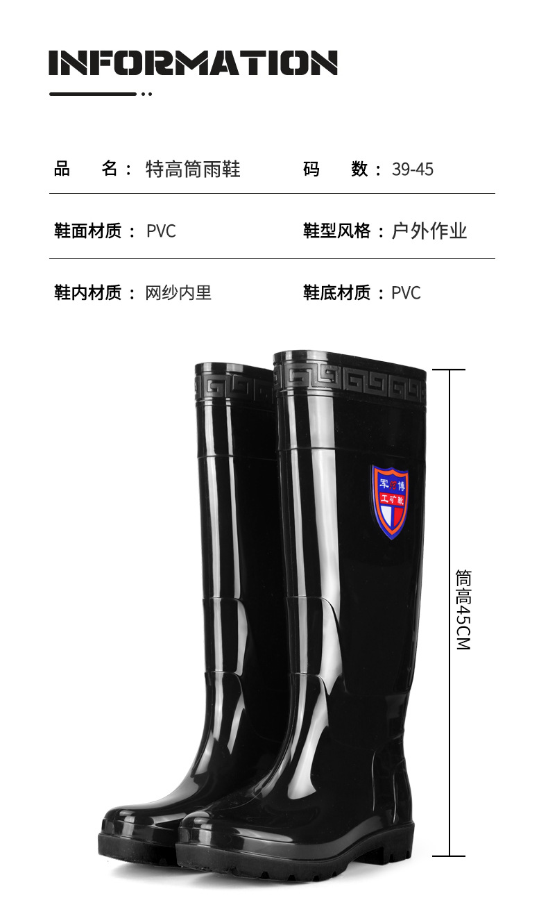 공장 직접 공급 45CM 남성용 무릎 높이 장화, 내마모성, 미끄럼 방지, 방수, 노동 보호, 농지 건설 현장 장화스토어 가기