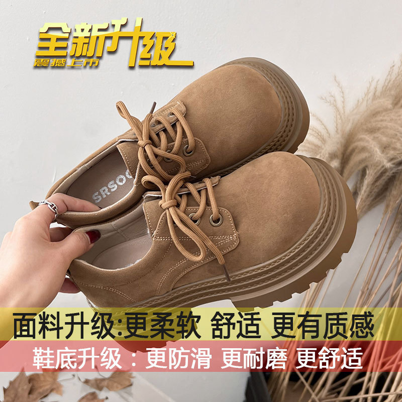 다크 브라운 라운드 발가락 영국 두꺼운 밑창 작은 가죽 신발 여성의 2025 년 봄과 가을 새로운 복고풍 높이 증가 작은 올 매치 싱글 레이어 신발스토어 가기