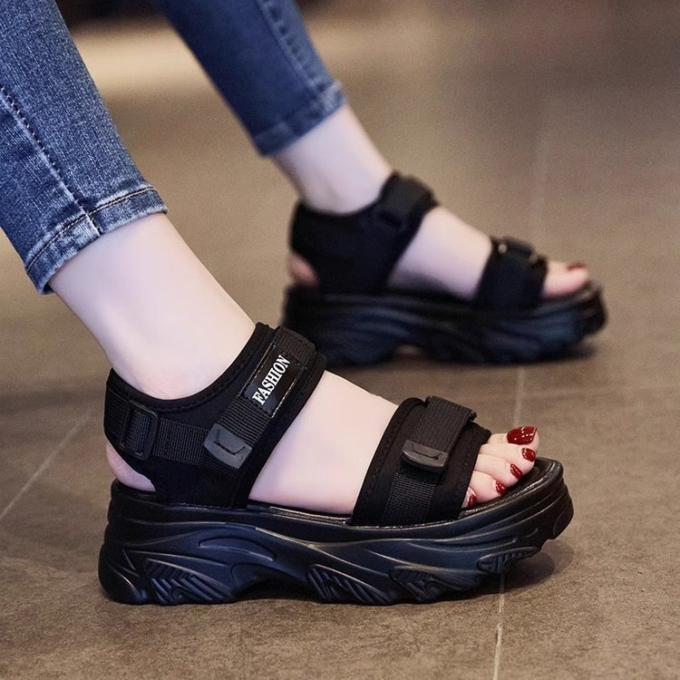 작은 스포츠 샌들 여자 2025 여름 새로운 올매치 두꺼운 밑창 여성 신발 패션 폭발 캐주얼 비치 슈즈스토어 가기