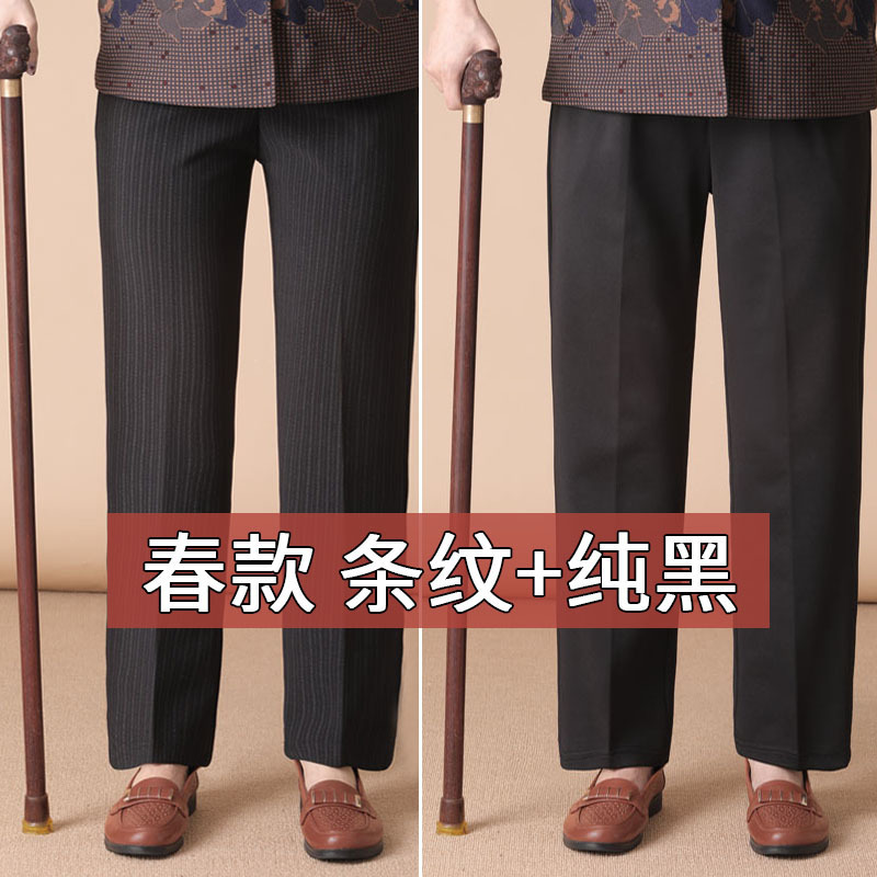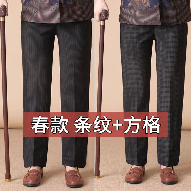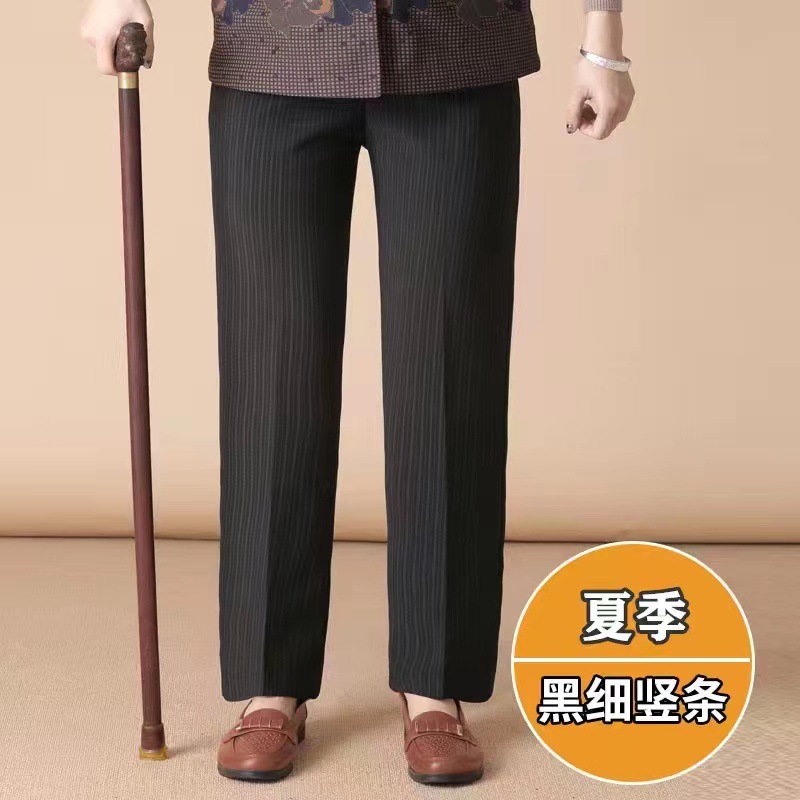 중년 및 노인 엄마 바지 봄과 가을 캐주얼 느슨한 높은 허리 할머니 바지 스트레이트 탄성 허리 여름 늙은 레이디 바지