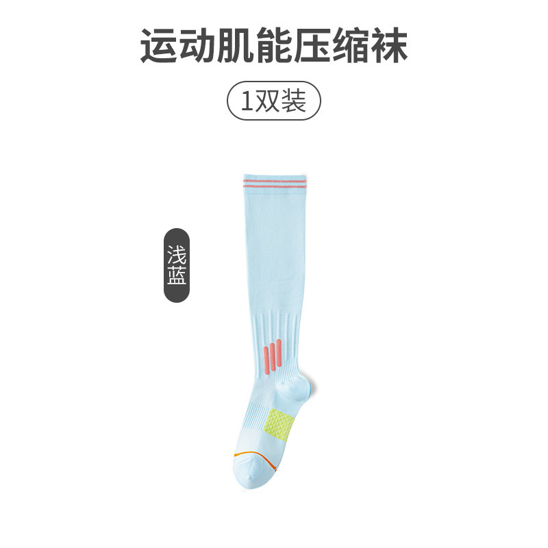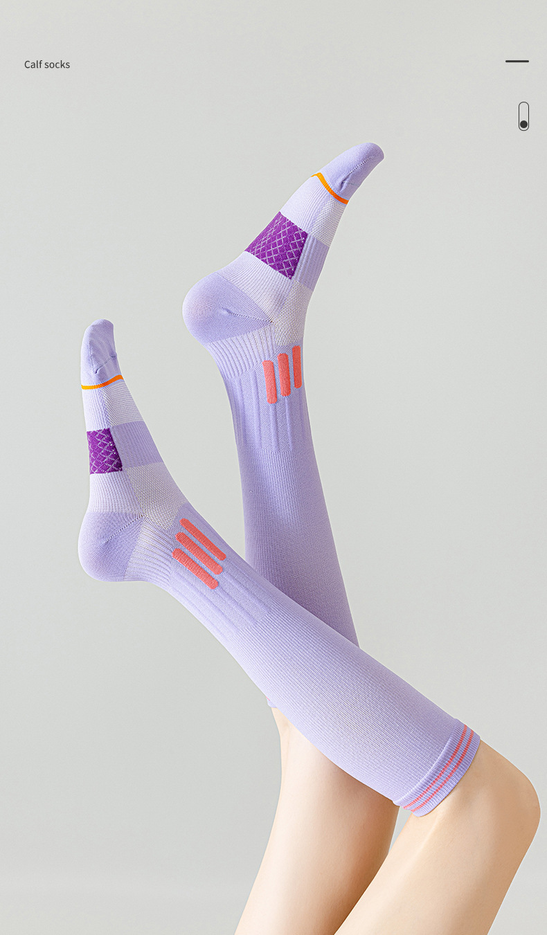 전문 근육 압축 스포츠 양말 긴 튜브 승마 양말 스키니 양말 여자 배드민턴 양말 건너 뛰는 로프 달리기 충격 양말