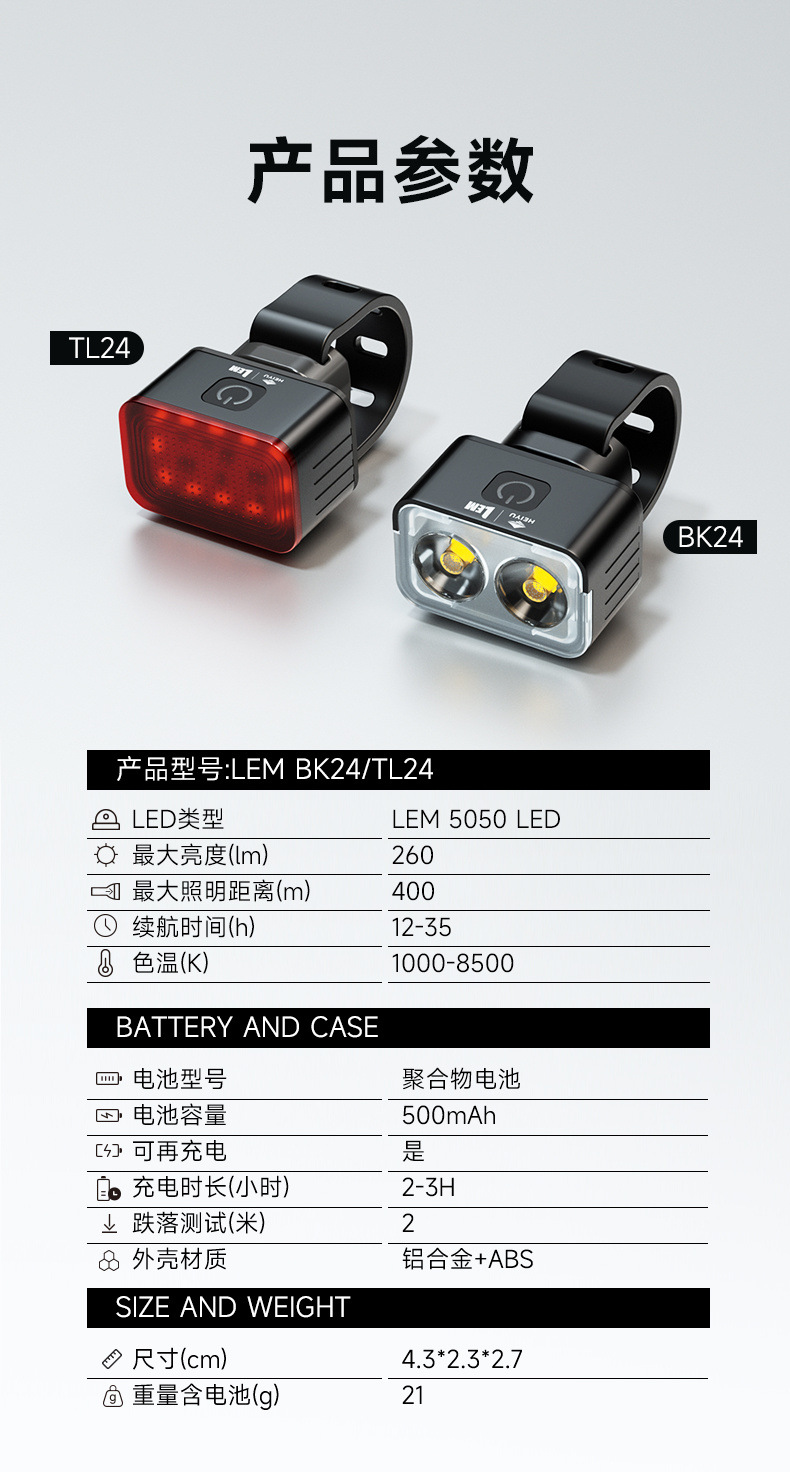 • [추천 구매] 헤드라이트 BK24 + 미등 TL2 조합 - 전용 실리콘 스트랩 포함