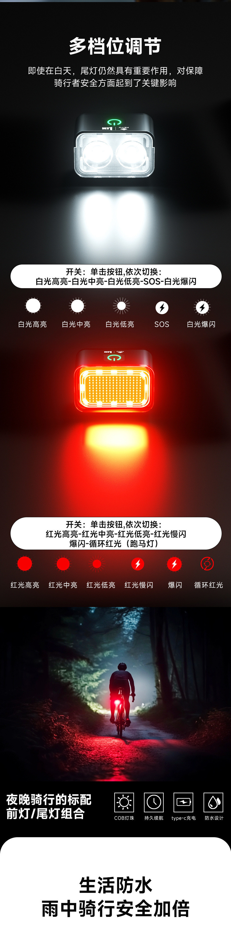 자전거 등 전조등 강한 가벼운 밤 승마 꼬리 빛 산악 도로 어린이 자전거 빛 방수 승마 장비