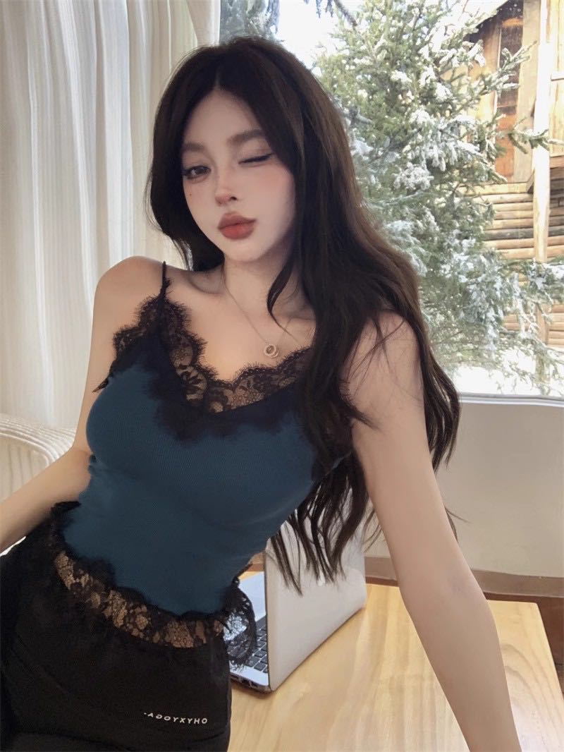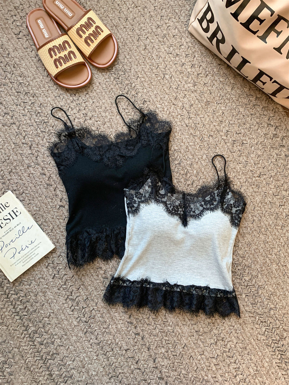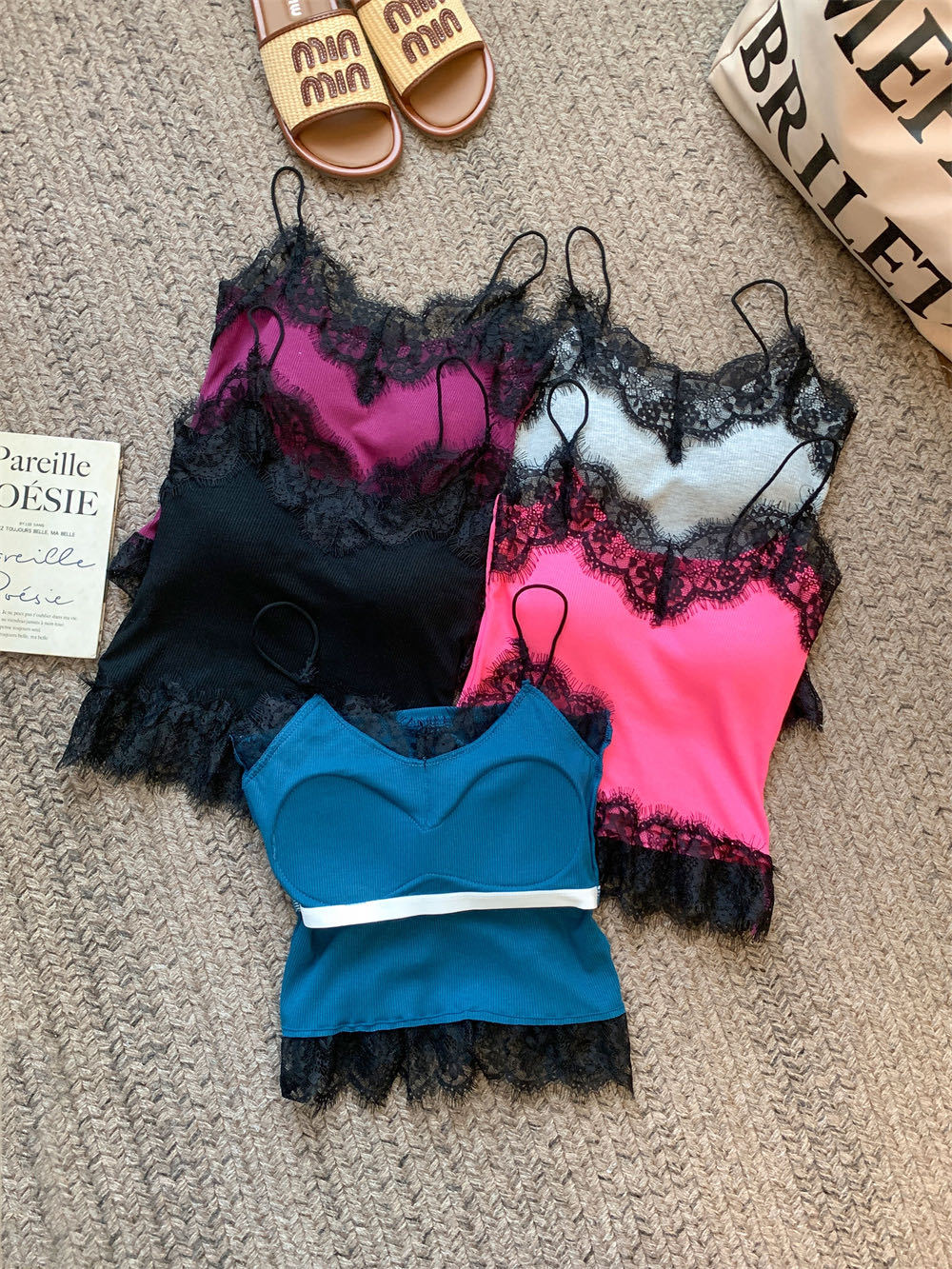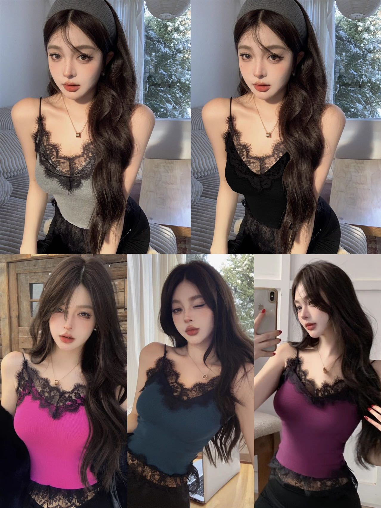 새로운 여름 섹시한 스파이스 소녀 레이스 슬림-적합 유행 얇은 섹시한 로우 컷 레이스 스트랩 레이온 탑