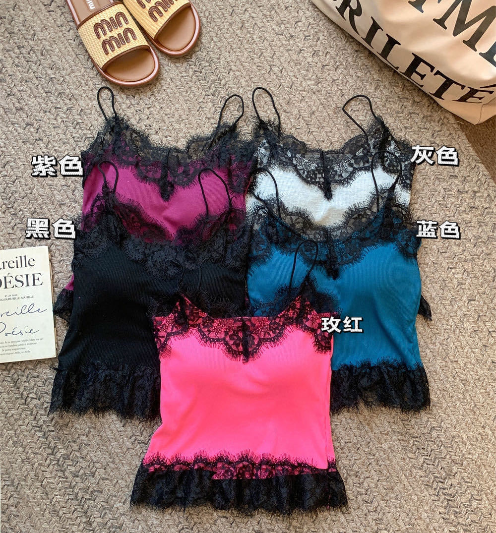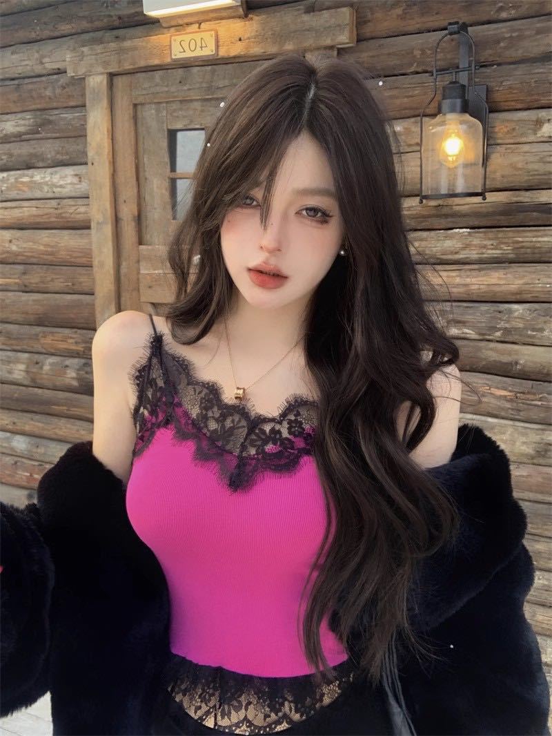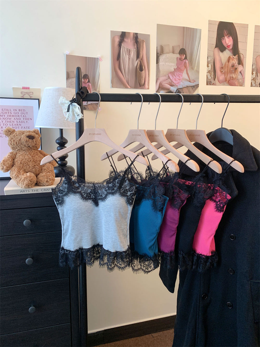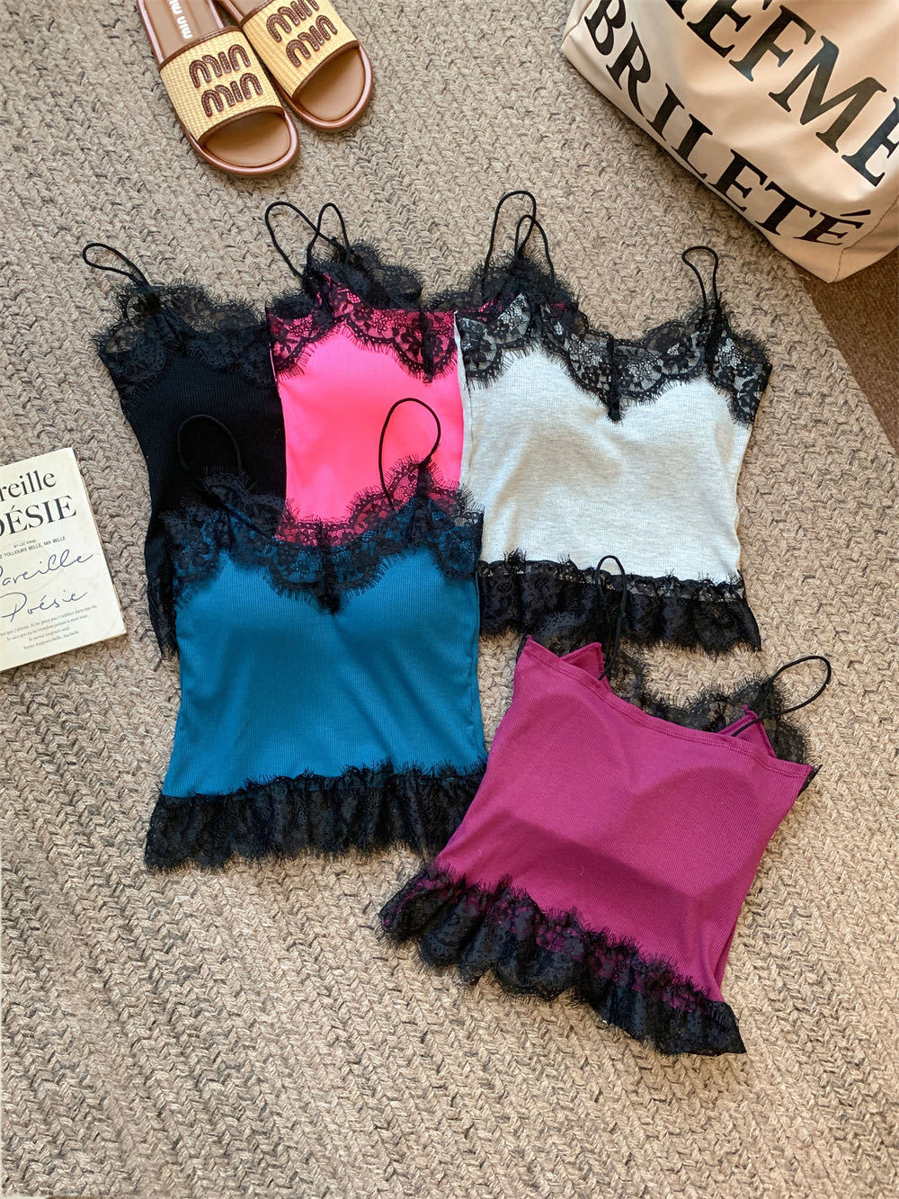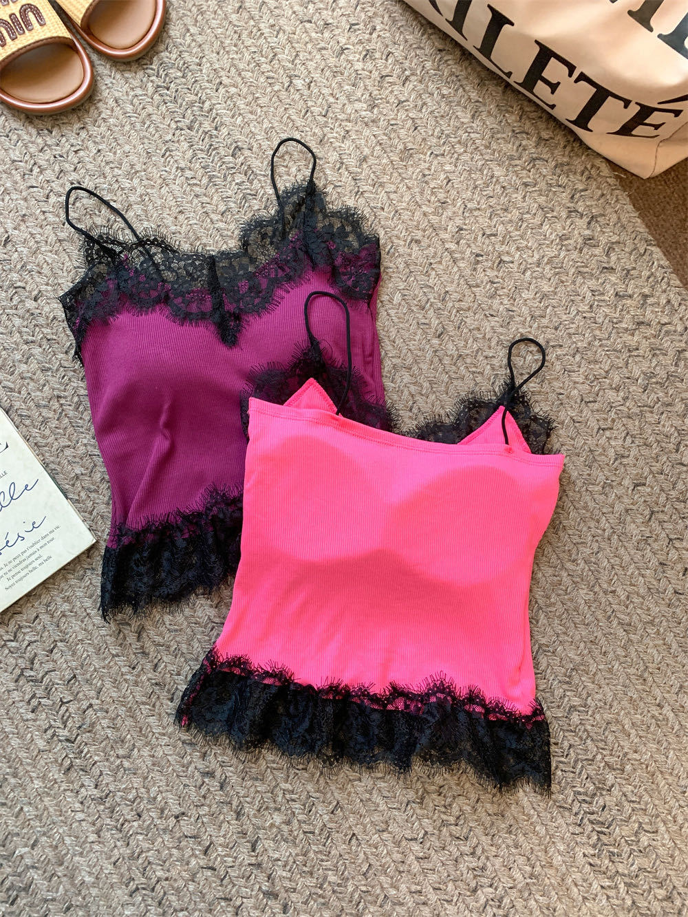 새로운 여름 섹시한 스파이스 소녀 레이스 슬림-적합 유행 얇은 섹시한 로우 컷 레이스 스트랩 레이온 탑