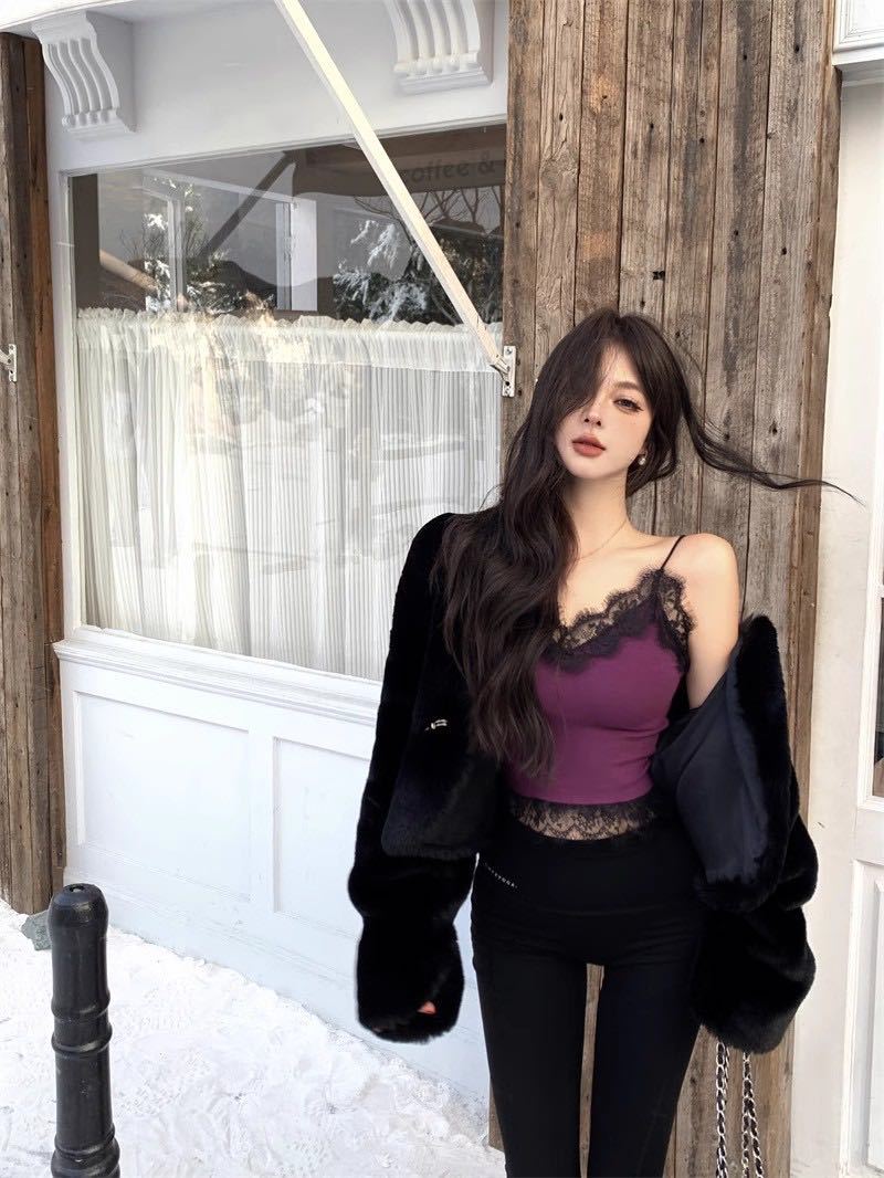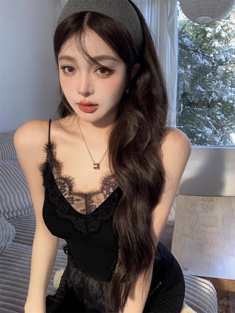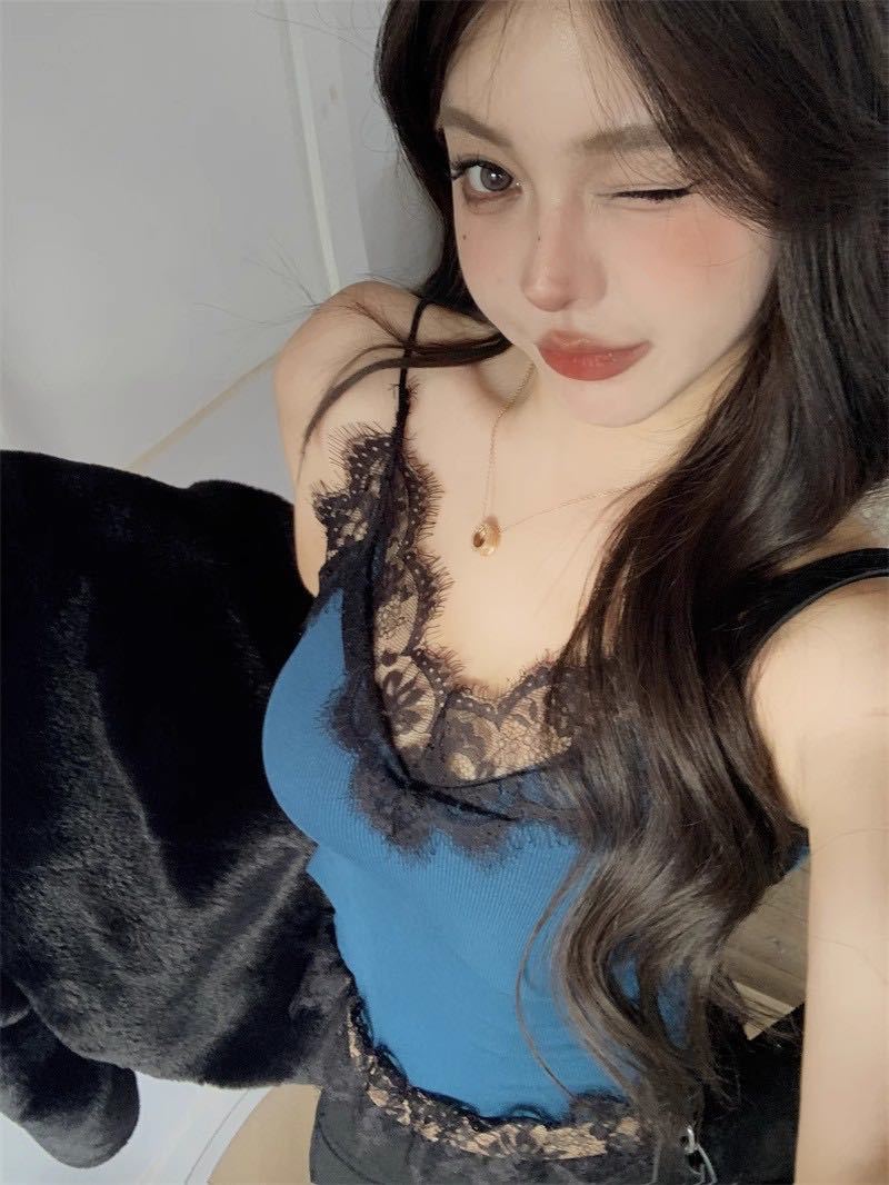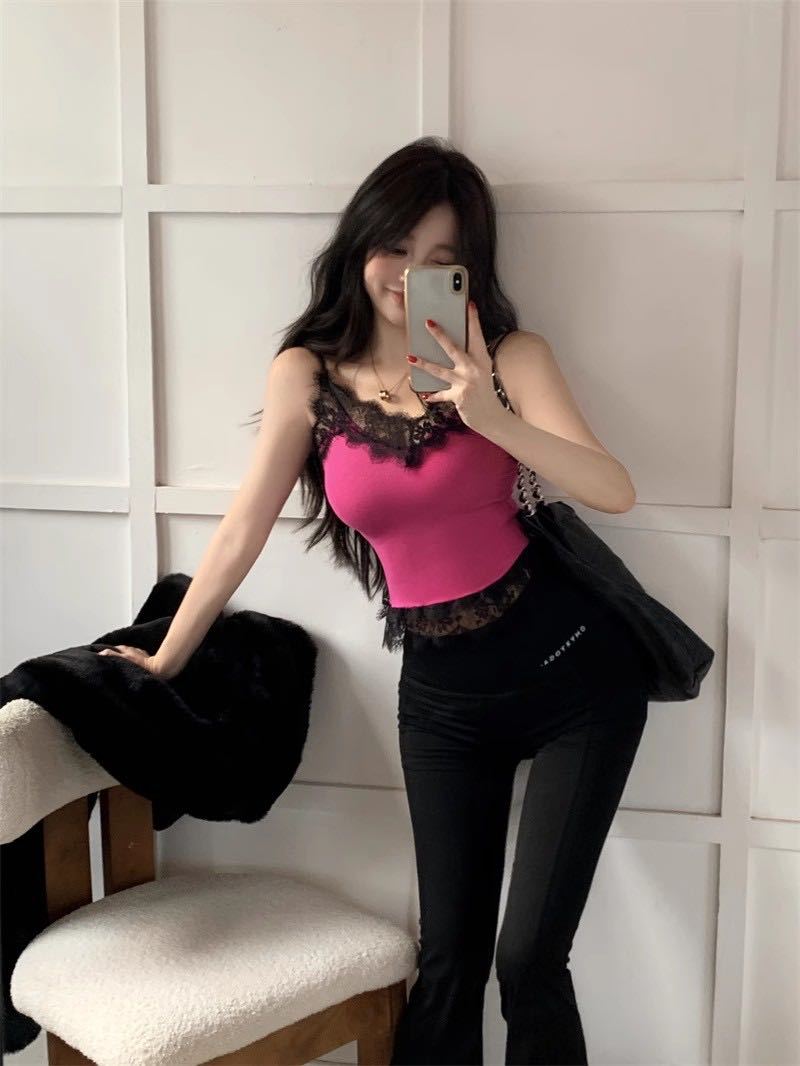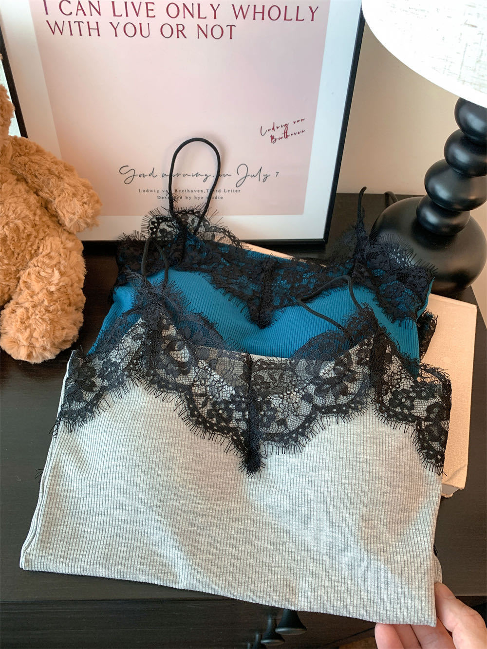새로운 여름 섹시한 스파이스 소녀 레이스 슬림-적합 유행 얇은 섹시한 로우 컷 레이스 스트랩 레이온 탑