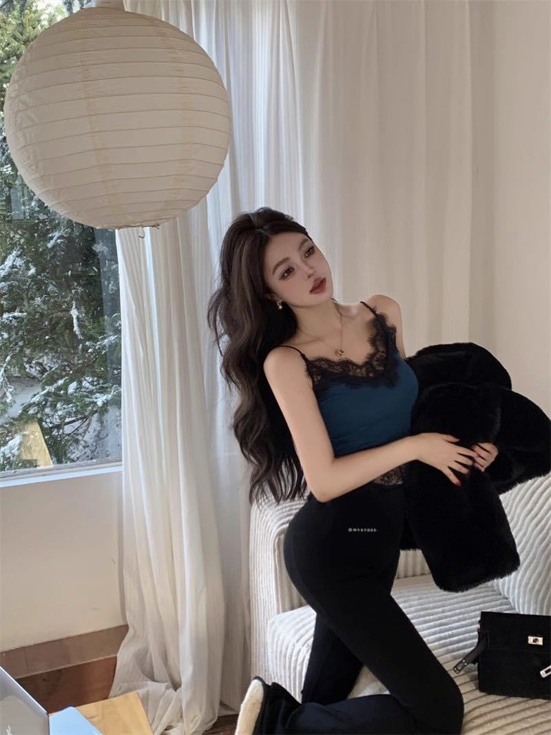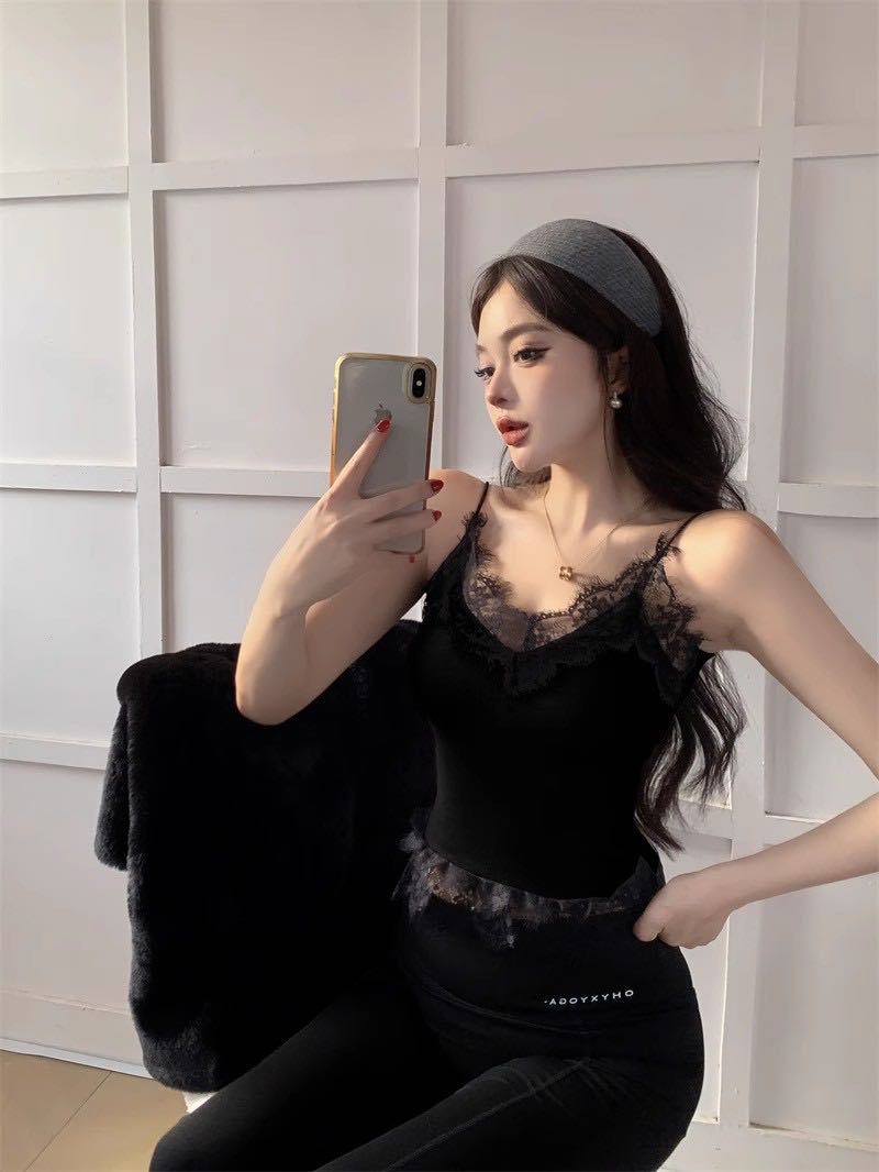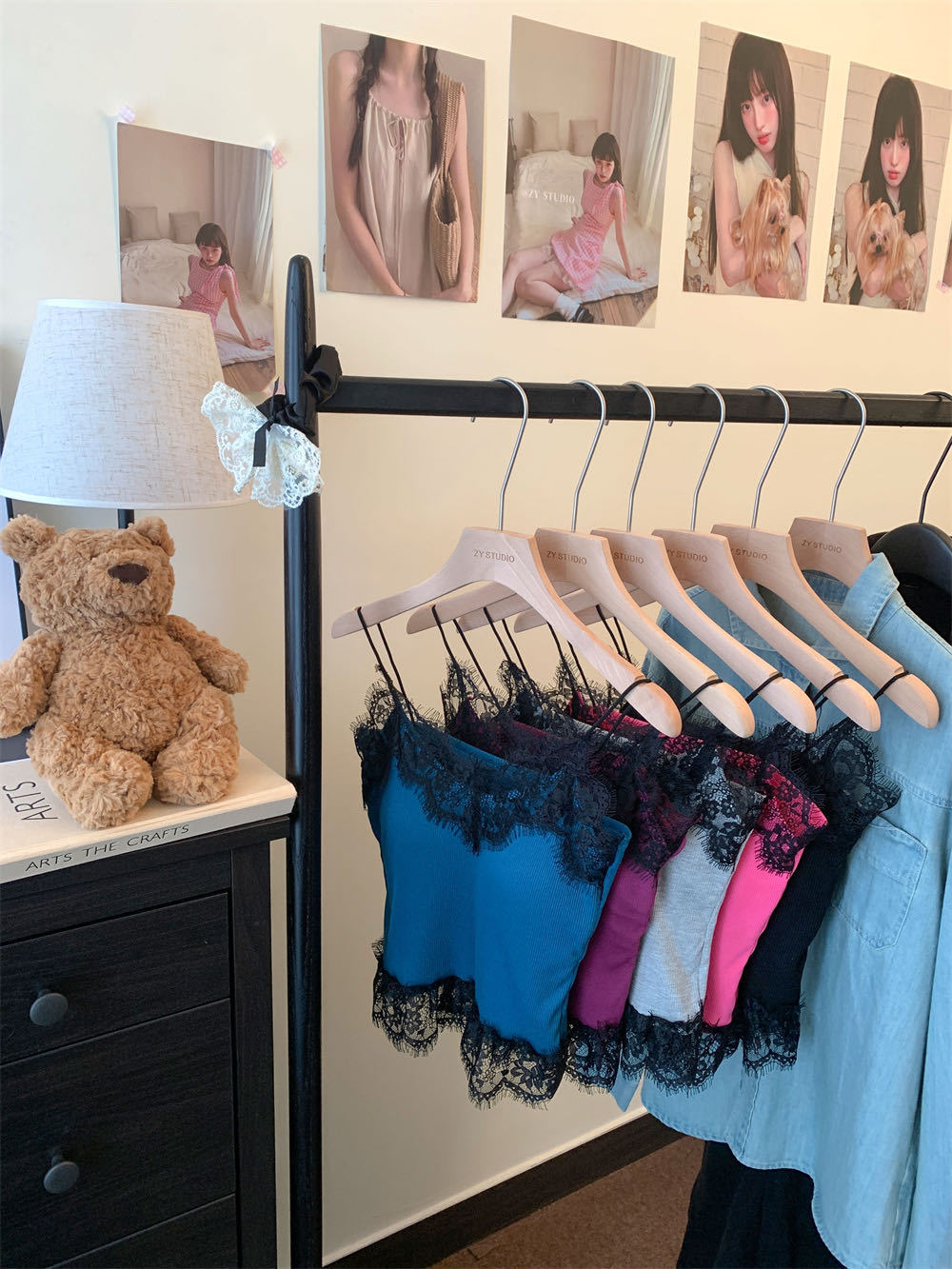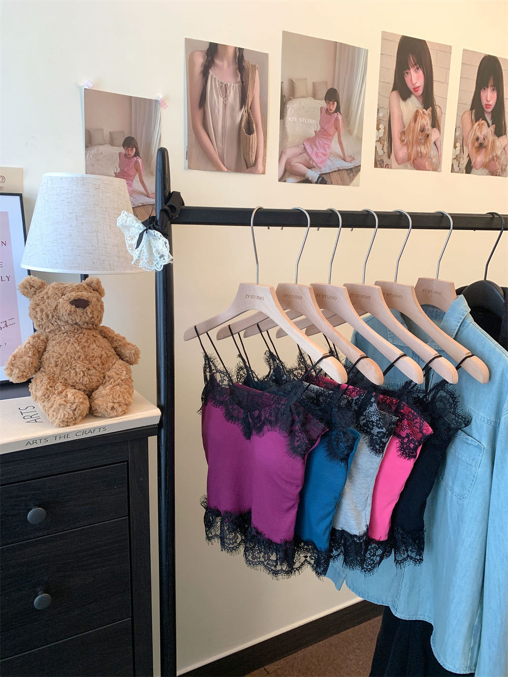 새로운 여름 섹시한 스파이스 소녀 레이스 슬림-적합 유행 얇은 섹시한 로우 컷 레이스 스트랩 레이온 탑스토어 가기
