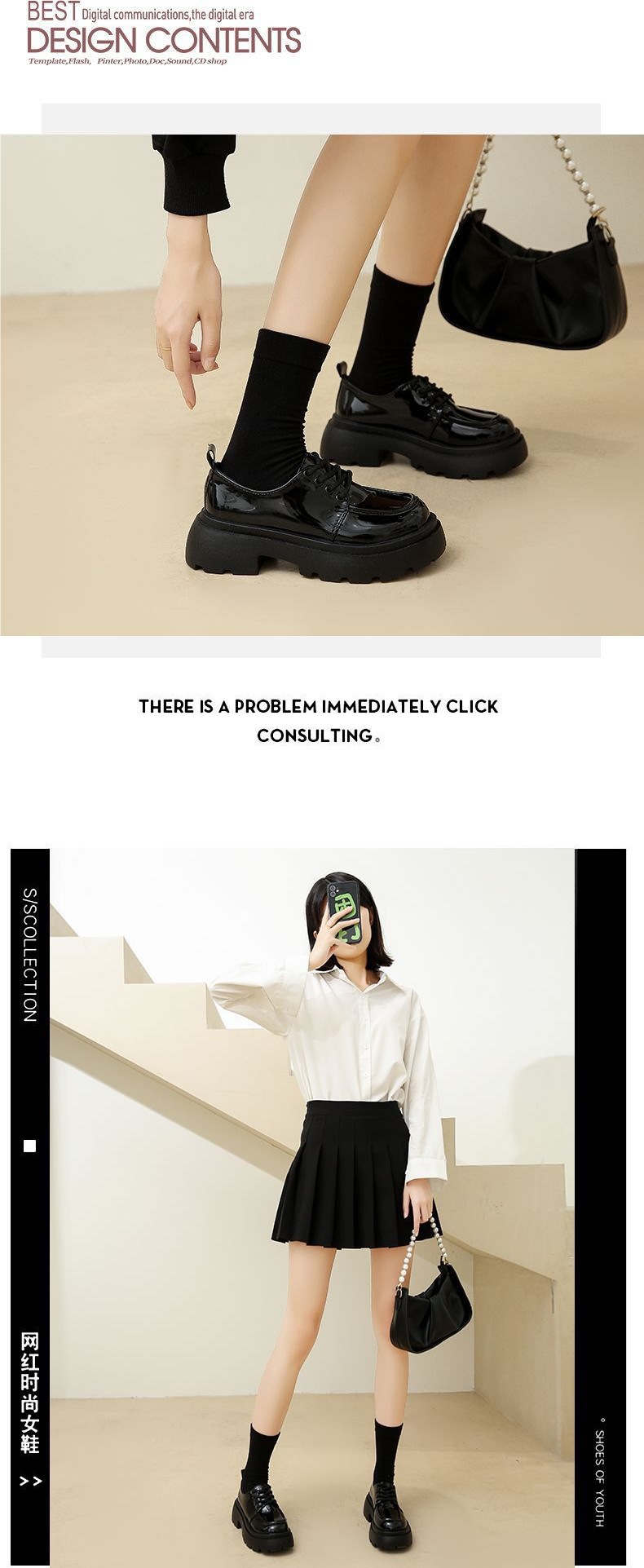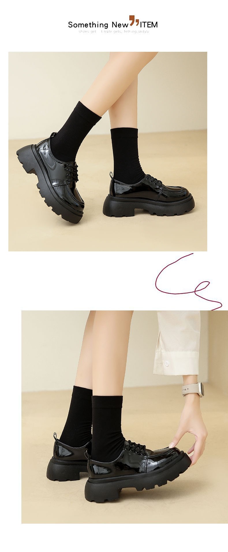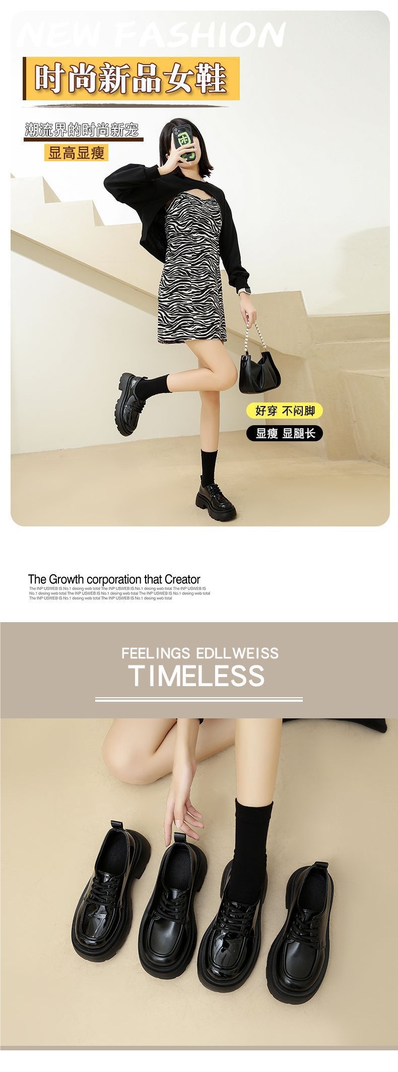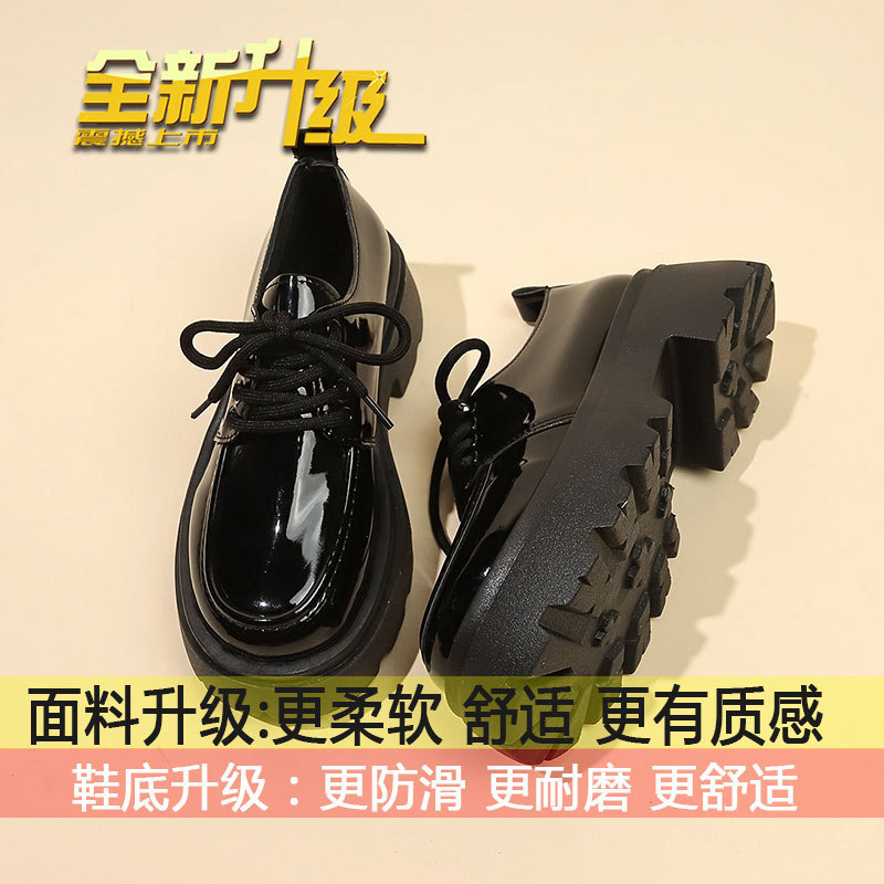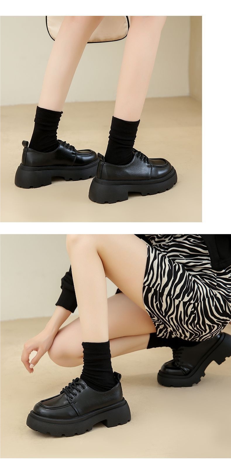 두꺼운 밑창 작은 가죽 신발 여성 2025 년 봄 새로운 빈티지 영국 스타일 증가 블랙 대학 스타일 레이스 업 로퍼스토어 가기