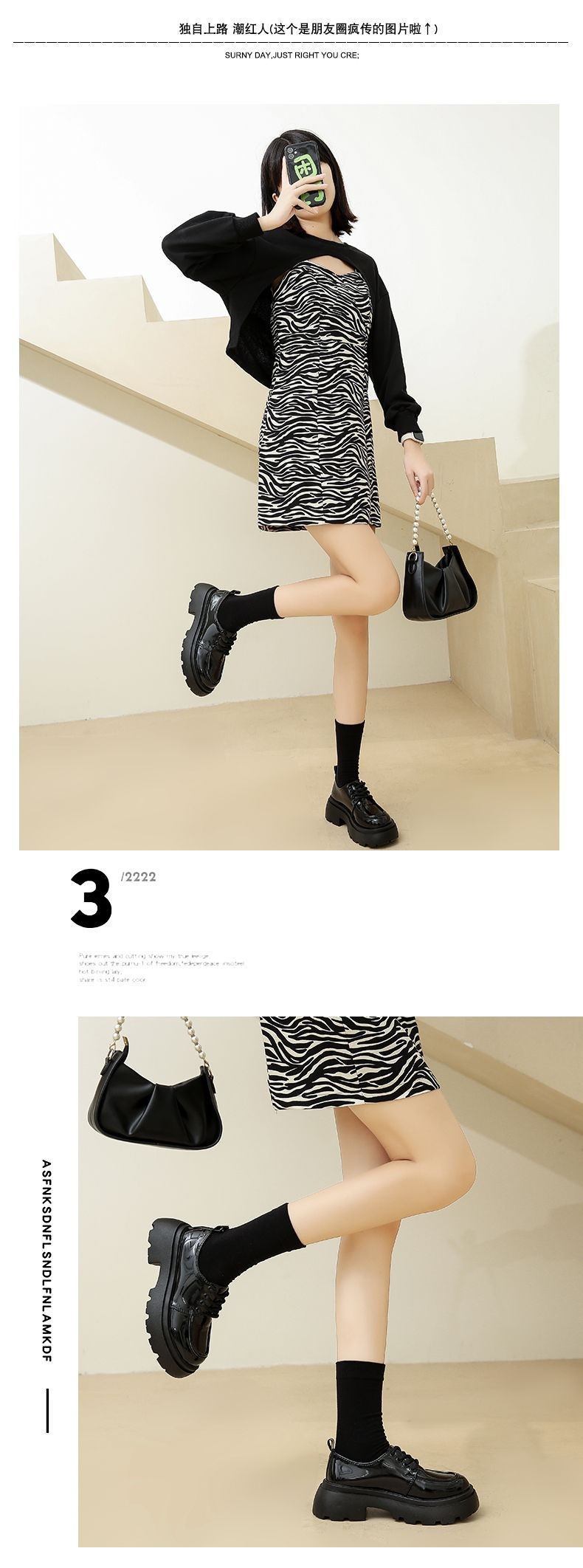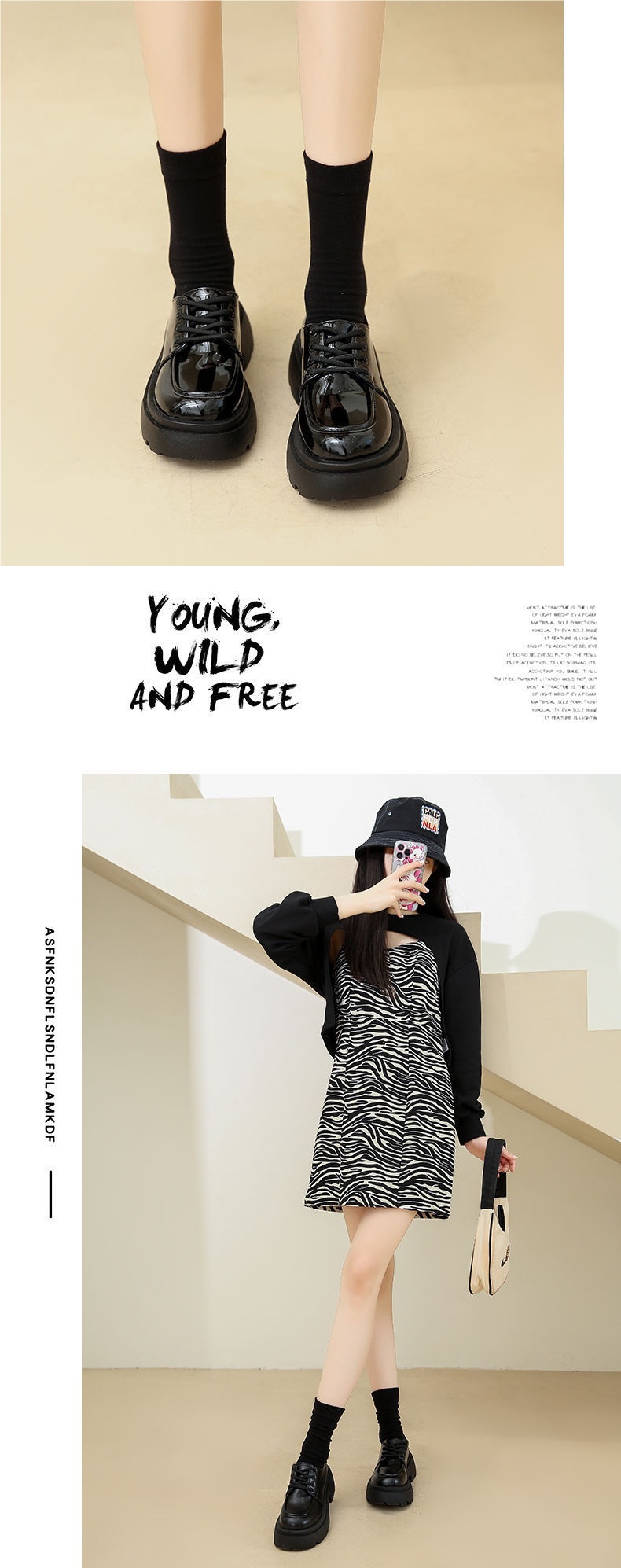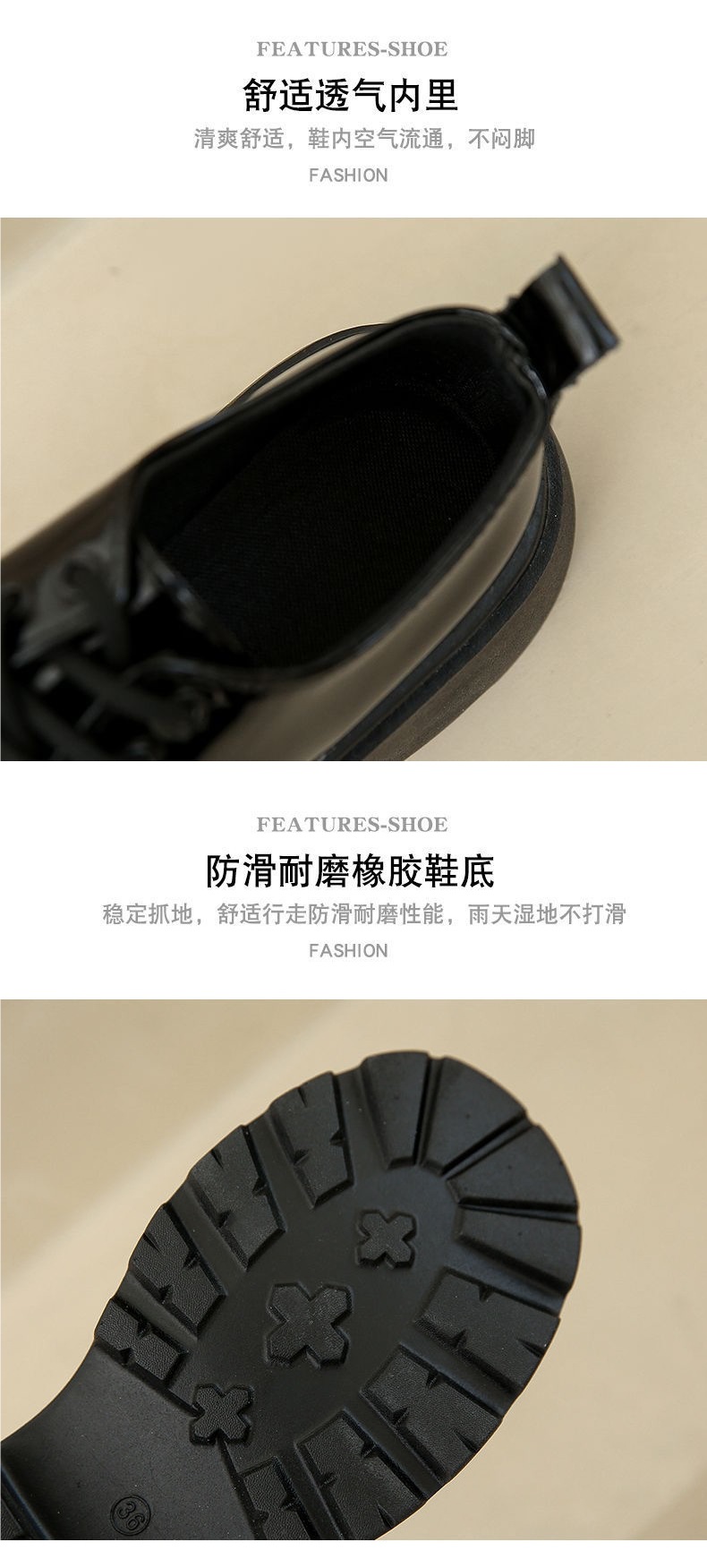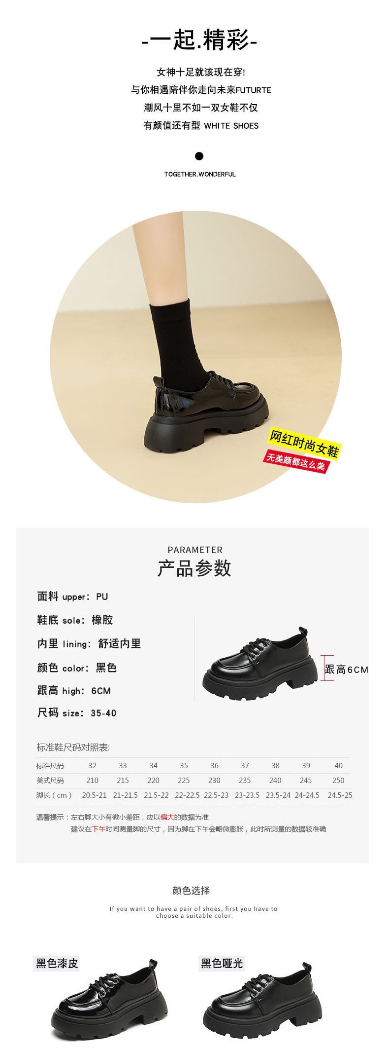 두꺼운 밑창 작은 가죽 신발 여성 2025 년 봄 새로운 빈티지 영국 스타일 증가 블랙 대학 스타일 레이스 업 로퍼스토어 가기