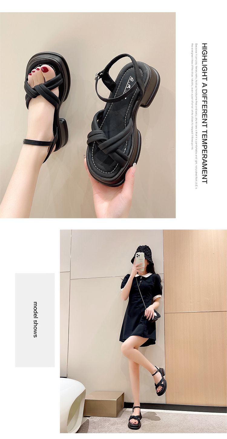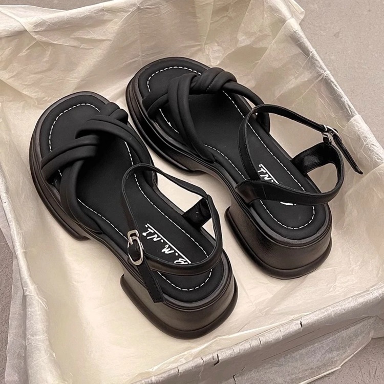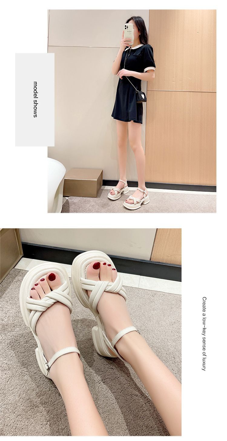 핫 스타일 두꺼운 밑창 로마 샌들 여성 여름 의상 요정 스타일 2025 새로운 프랑스 스타일 하이 엔드 두꺼운 샌들스토어 가기