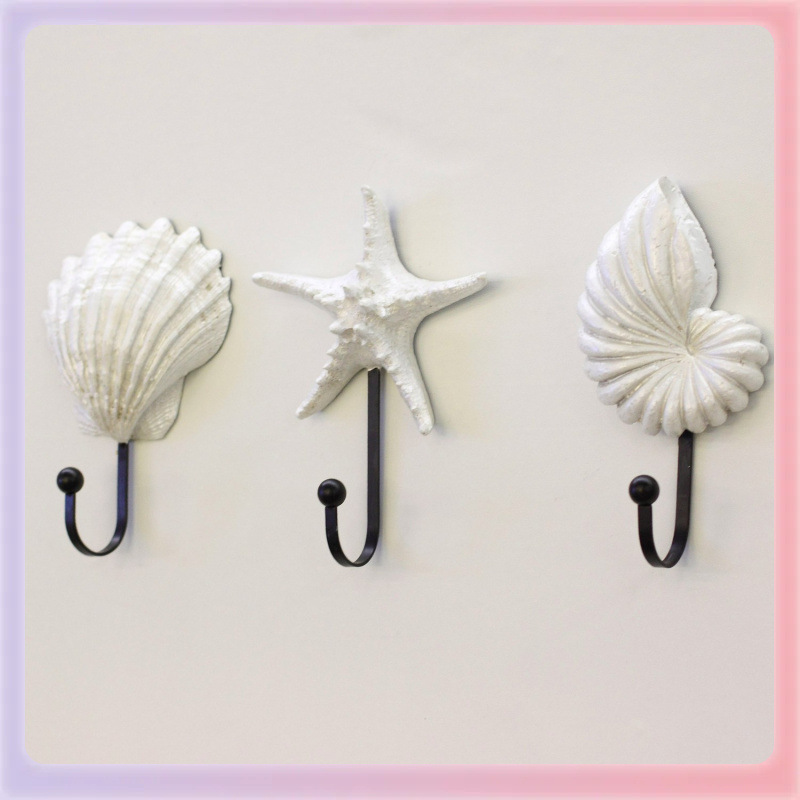 ✅창조적 인 선물 수지 코트 후크 벽 매달려 지중해 스타일 불가사리 가리비 콘치 코트 후크스토어 가기
