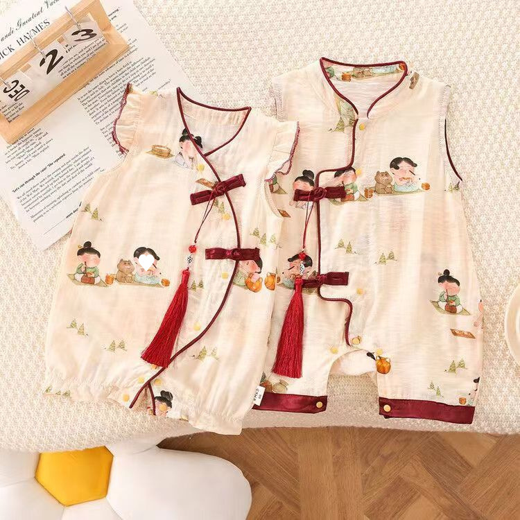 2025 년 신생아 가을 형제 자매 만화 등반 세트 중국 스타일 아기 귀여운 몸 옷 아기 등반 세트 귀여운스토어 가기