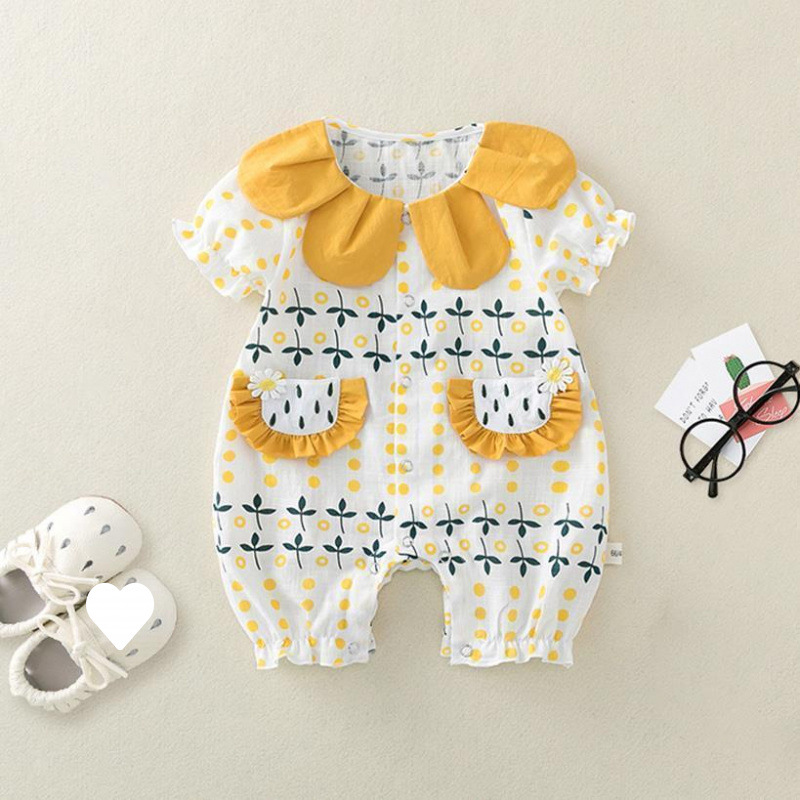 • 옐로우 [작은 꽃주머니 반팔] 점프수트