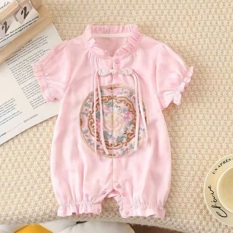 • 핑크 [윤진자수반팔] 점프수트