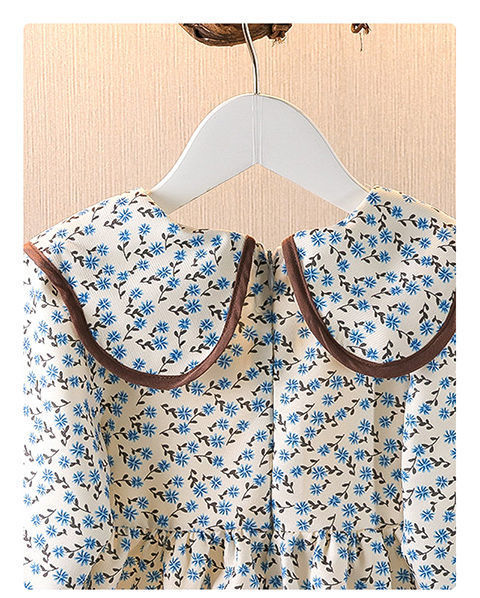 소녀의 봄 가을 원피스 2024 새로운 어린이 꽃 중소 어린이 인형 목걸이 스타일 허리 긴팔 치마
