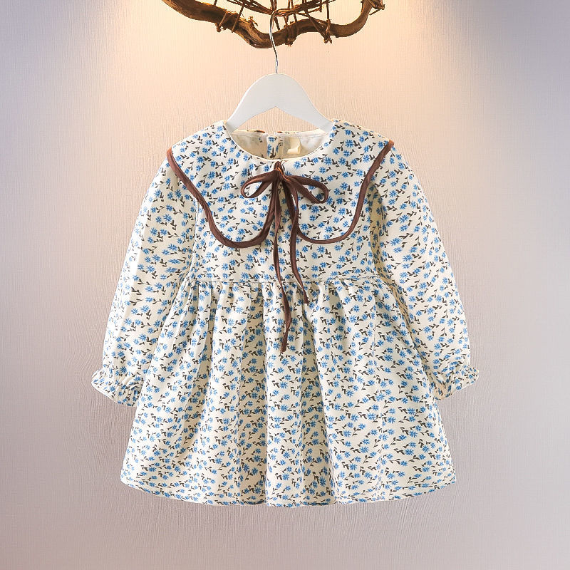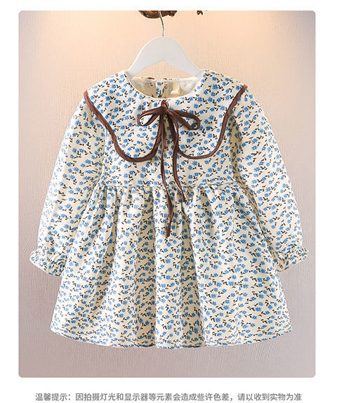 소녀의 봄 가을 원피스 2024 새로운 어린이 꽃 중소 어린이 인형 목걸이 스타일 허리 긴팔 치마스토어 가기