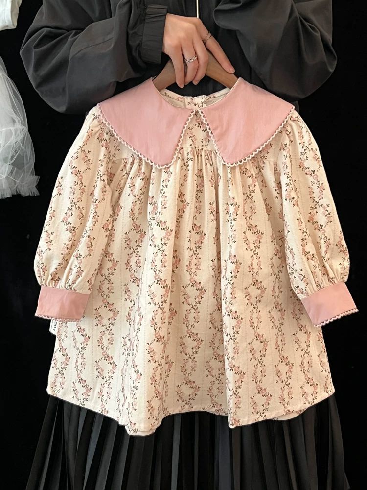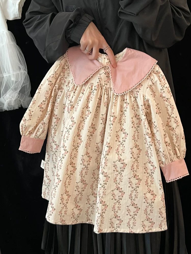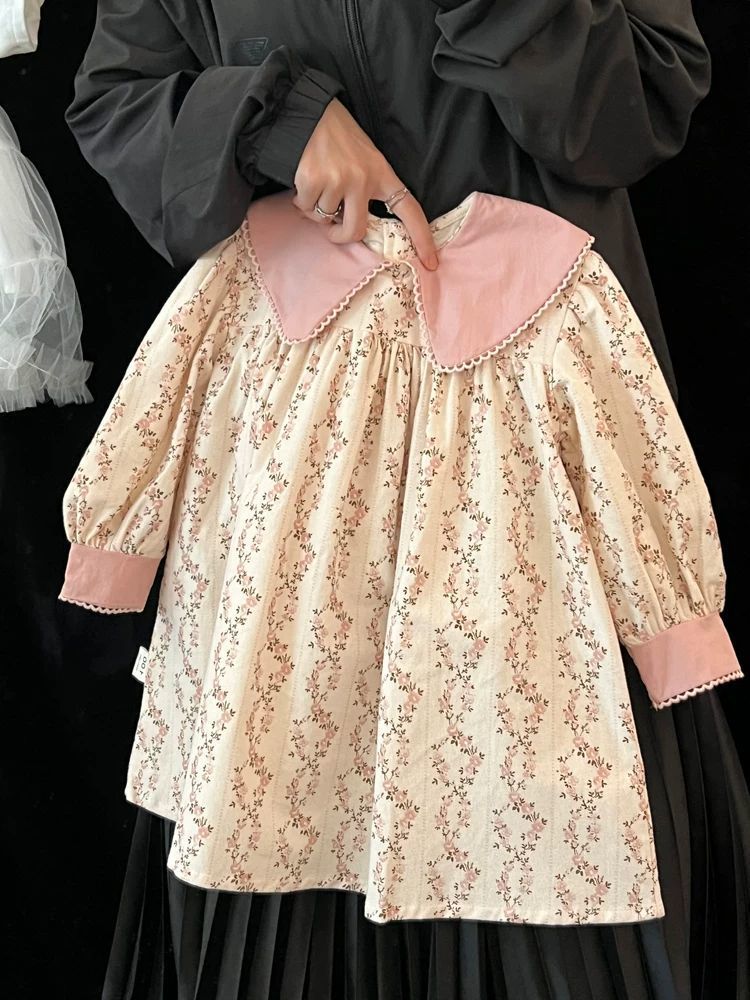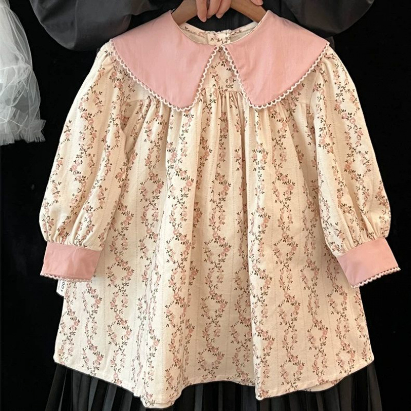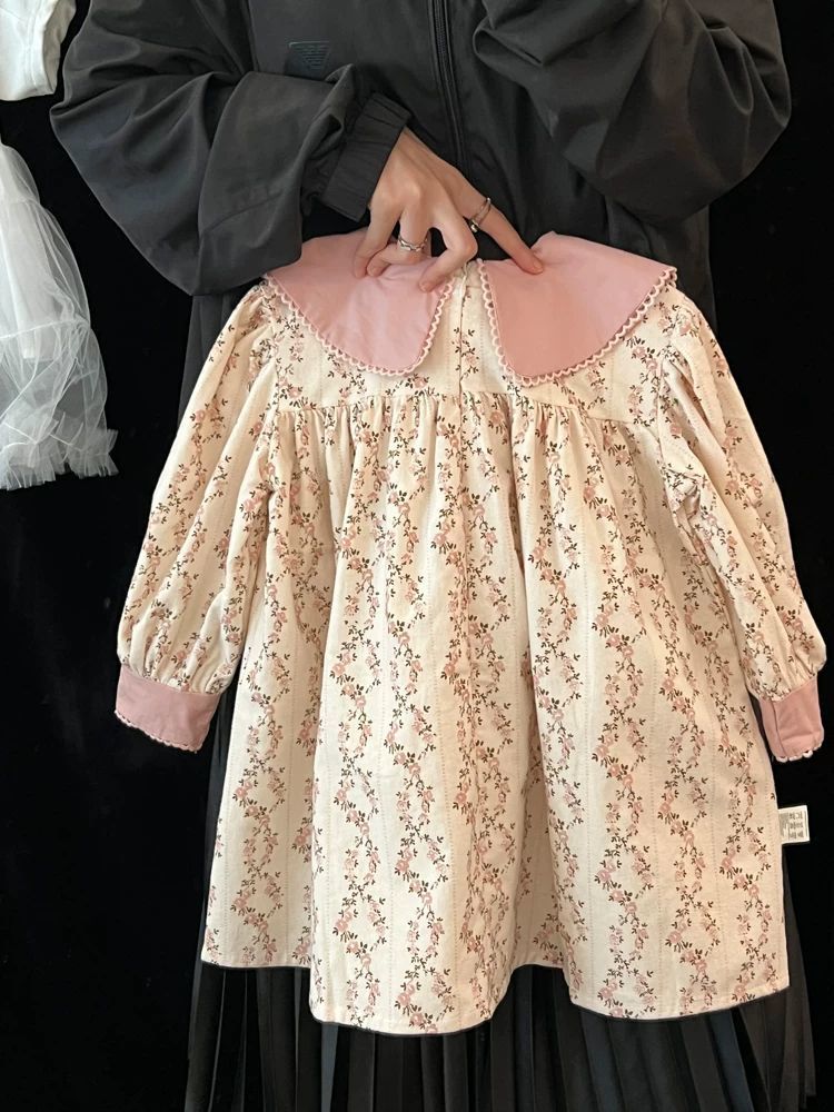 2024 새로운 소녀들의 원피스 가을 겨울 한국 아기 소녀 달콤한 꽃 인형 목걸이 우아한 스커트 공주 원피스스토어 가기