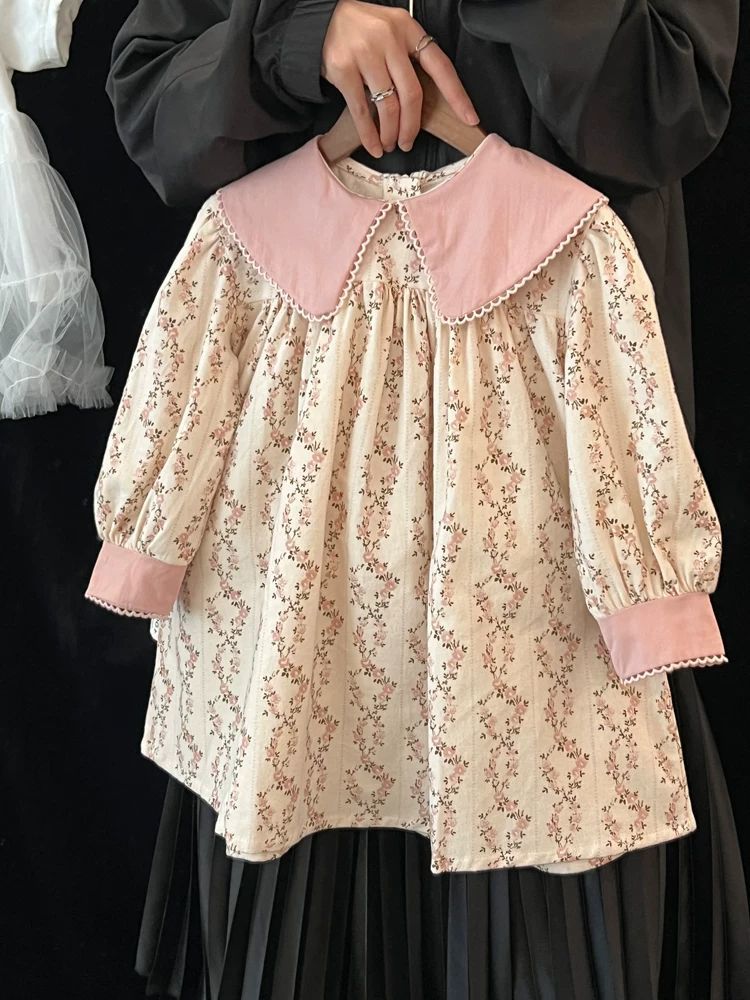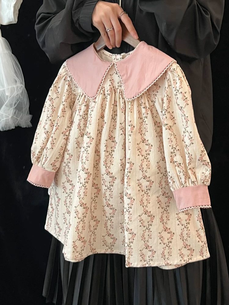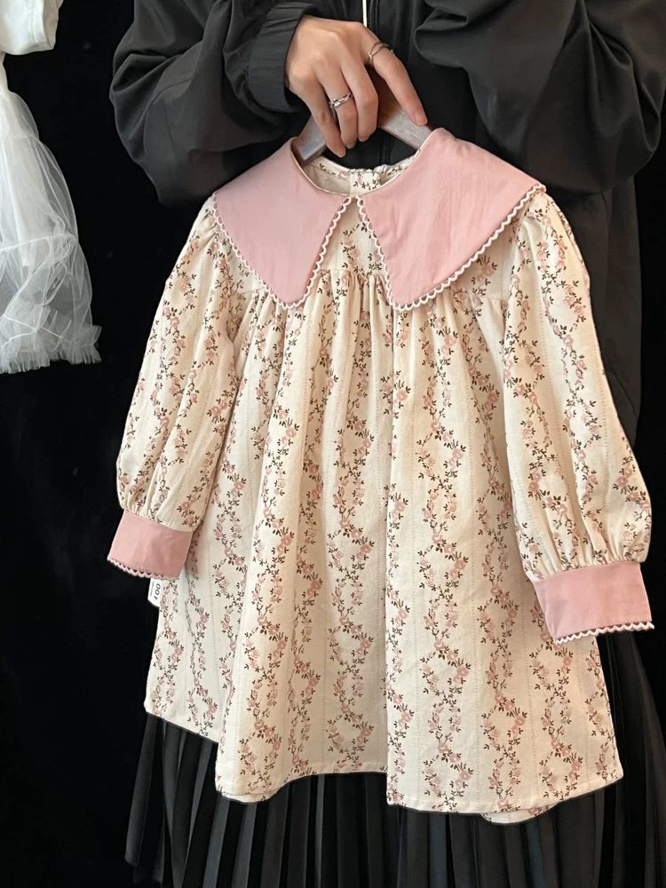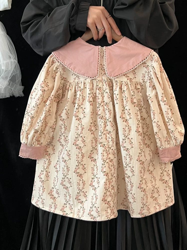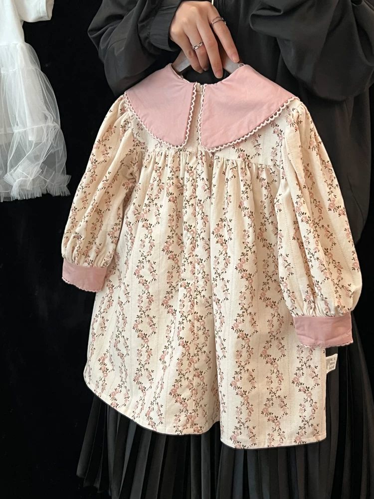 2024 새로운 소녀들의 원피스 가을 겨울 한국 아기 소녀 달콤한 꽃 인형 목걸이 우아한 스커트 공주 원피스스토어 가기