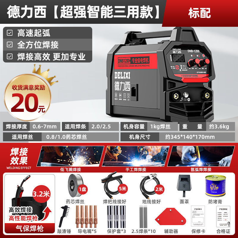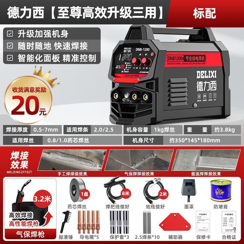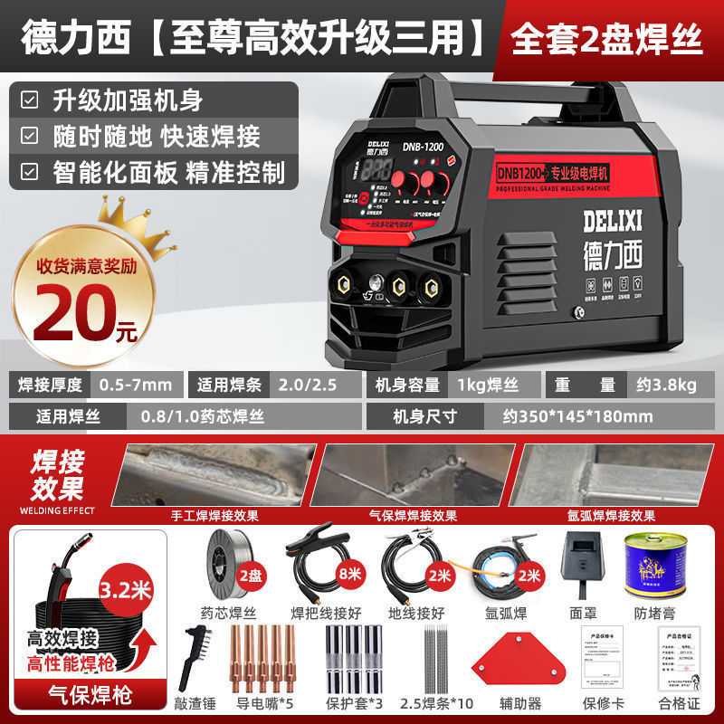 Delixi 비 가스 3 사용 2 보호 용접 기계 1200 가정용 220v 용접 아르곤 아크 용접 지능형 가스 보호 용접 기계 다른스토어 가기