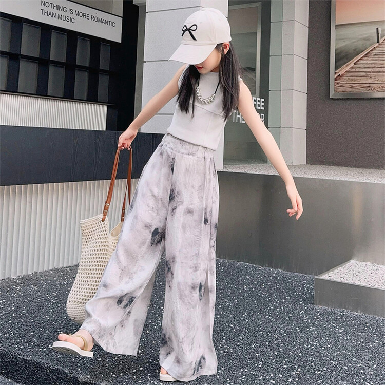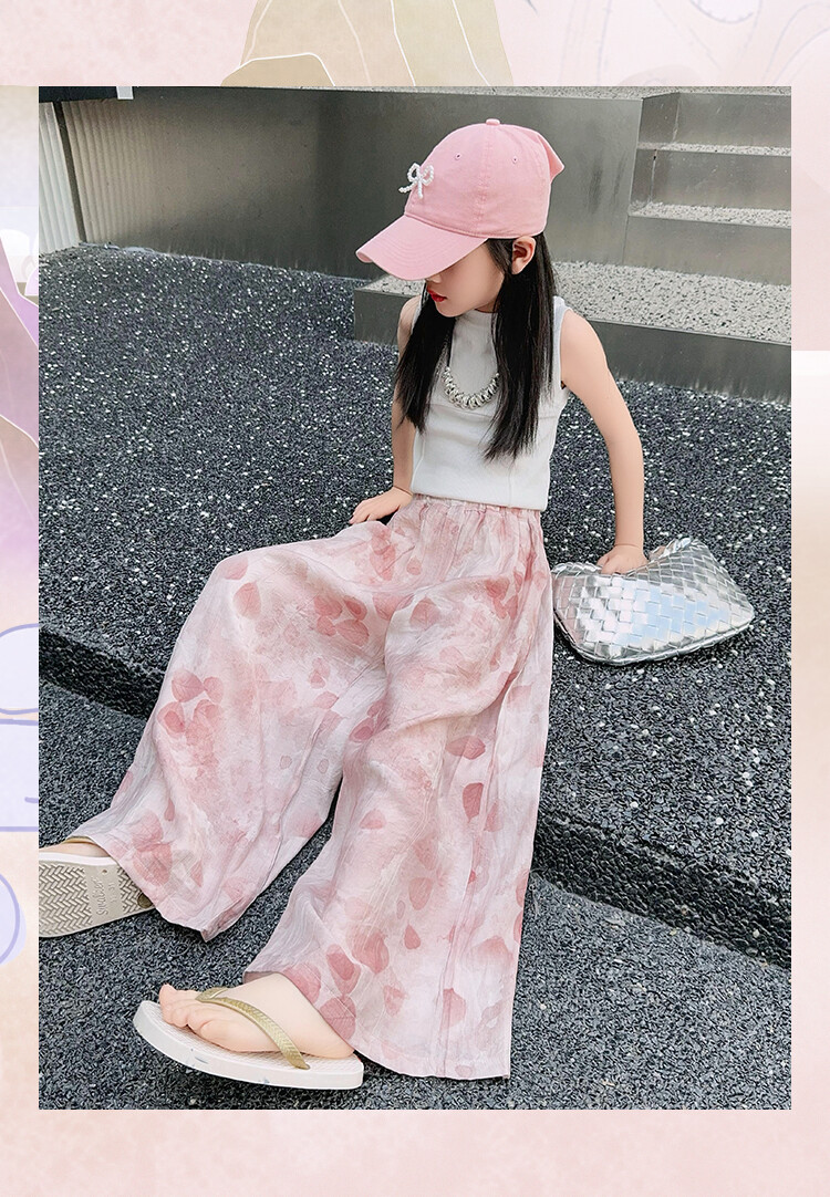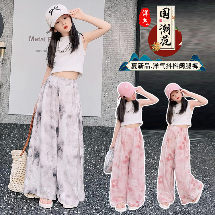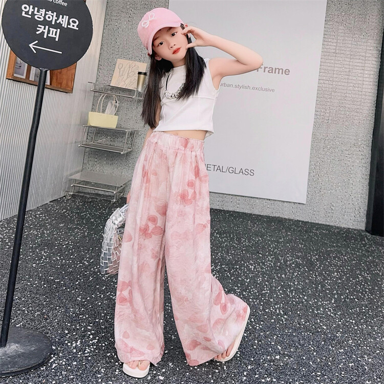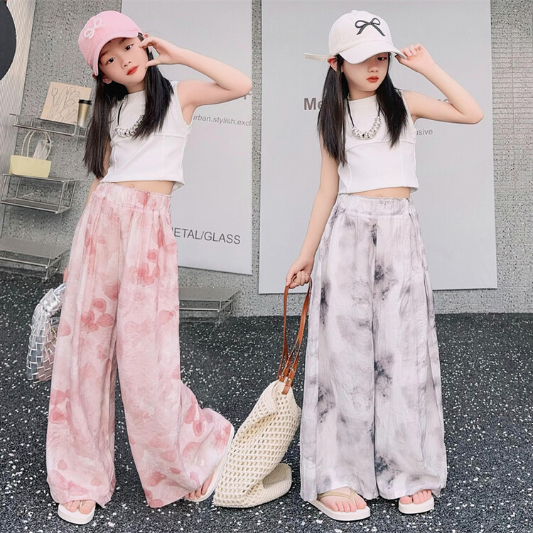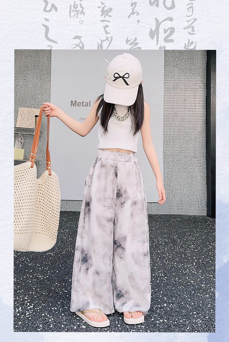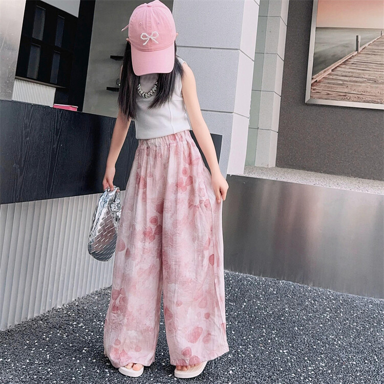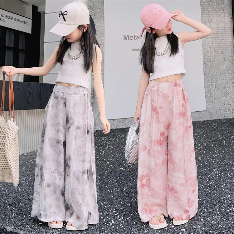소녀 바지 여름 얇은 어린이 여름 2025 큰 소년과 소녀를위한 새로운 넓은 다리 바지 쿨 아이스 실크 모기 방지 바지스토어 가기