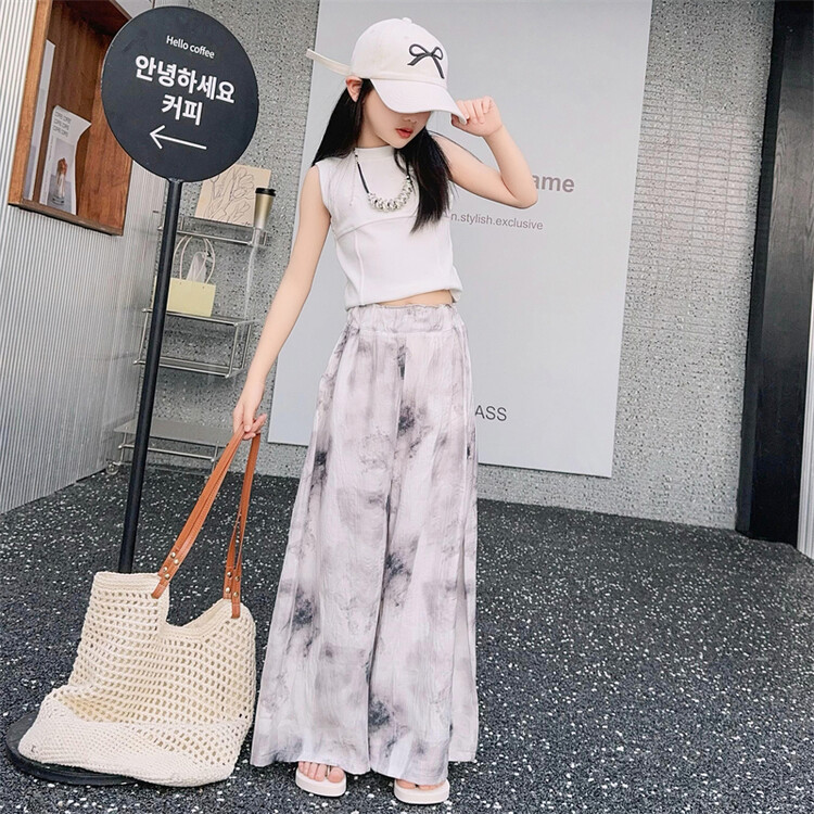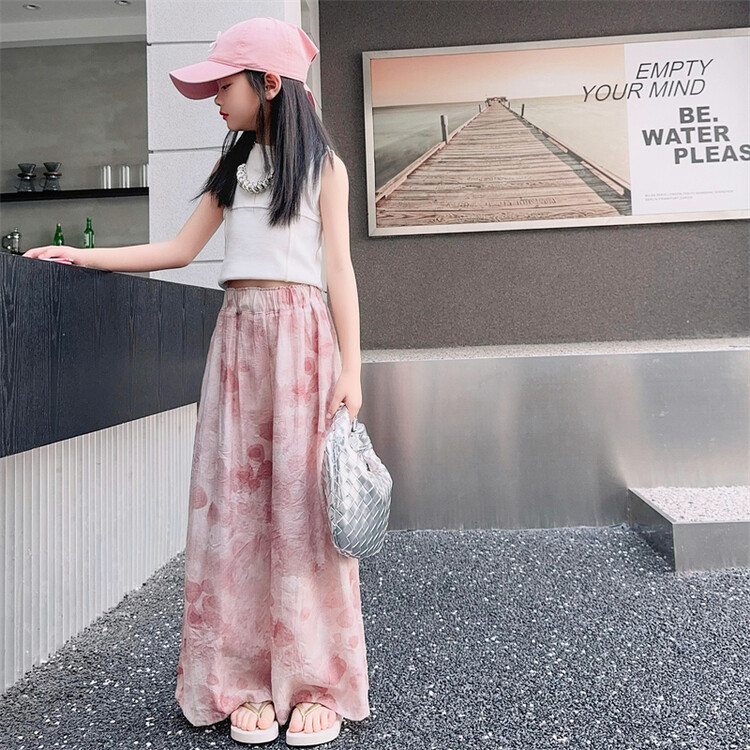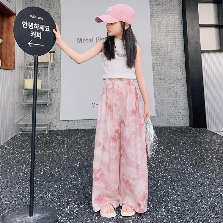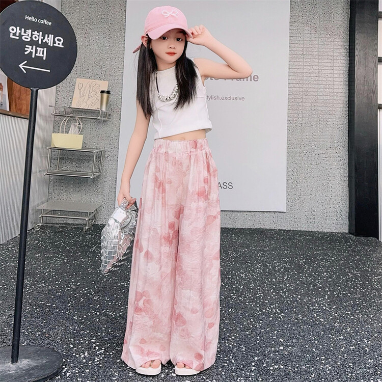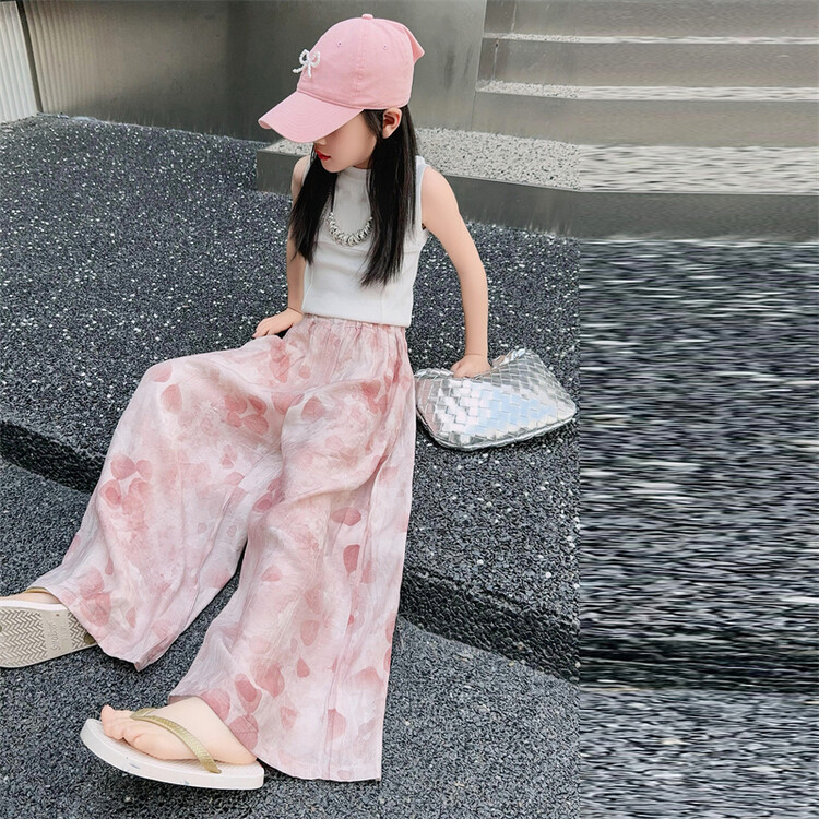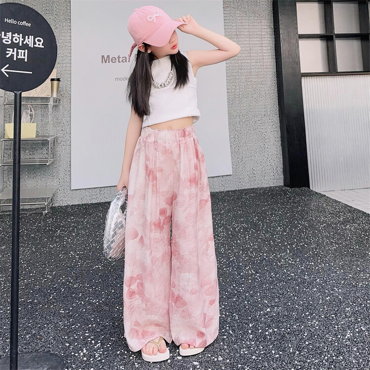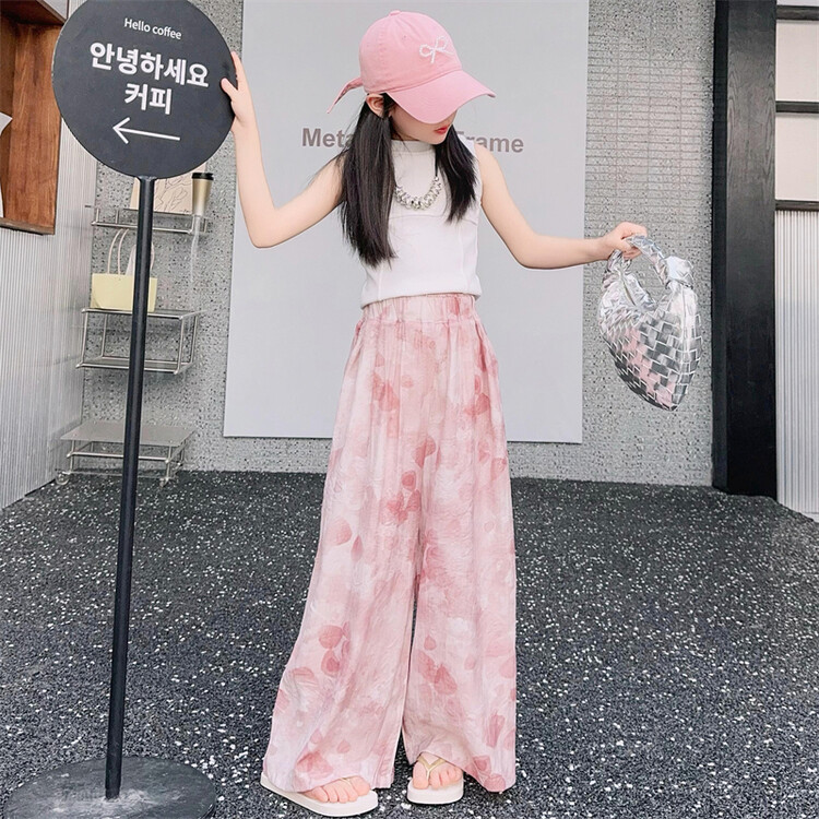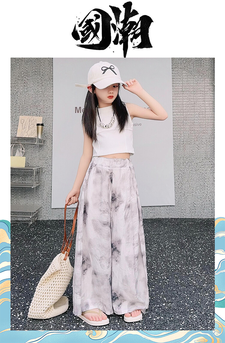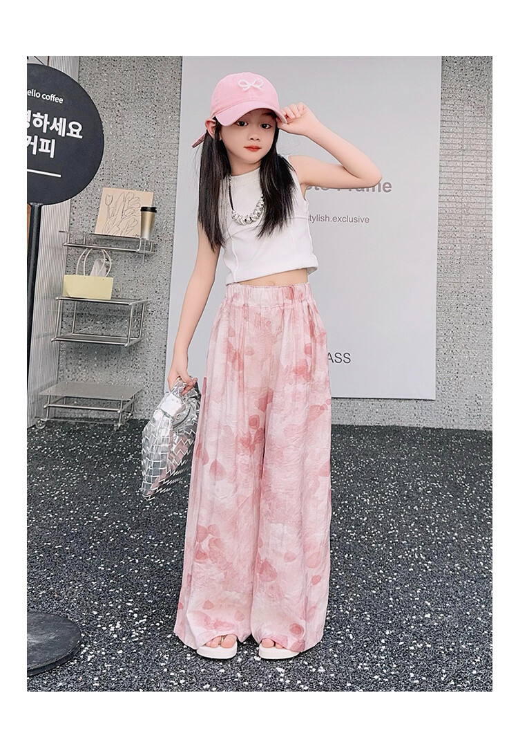 소녀 바지 여름 얇은 어린이 여름 2025 큰 소년과 소녀를위한 새로운 넓은 다리 바지 쿨 아이스 실크 모기 방지 바지스토어 가기