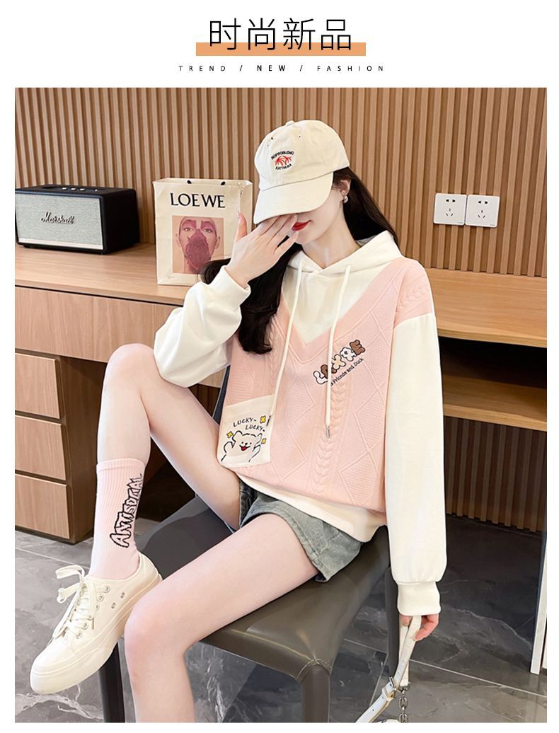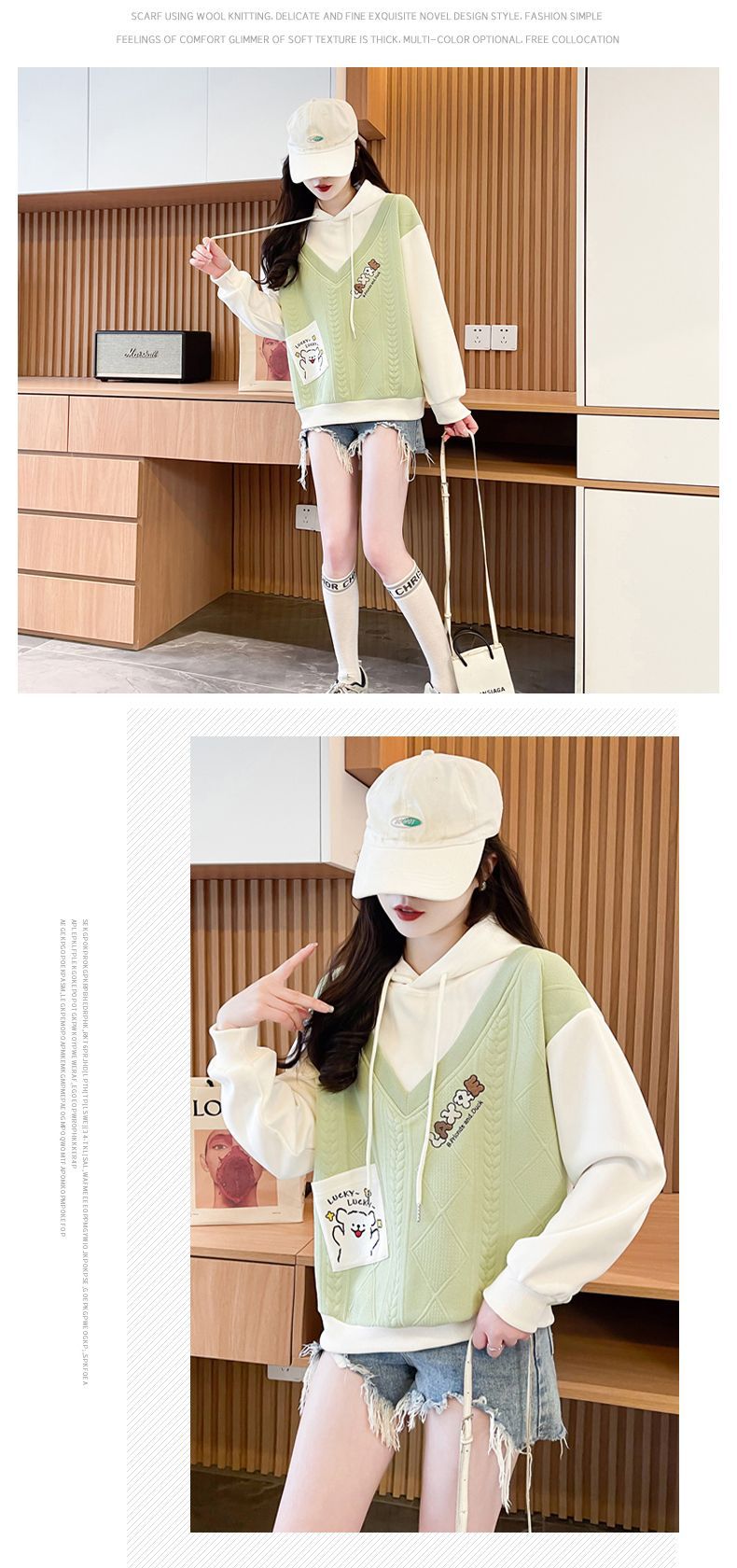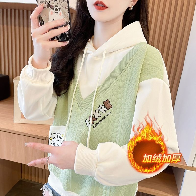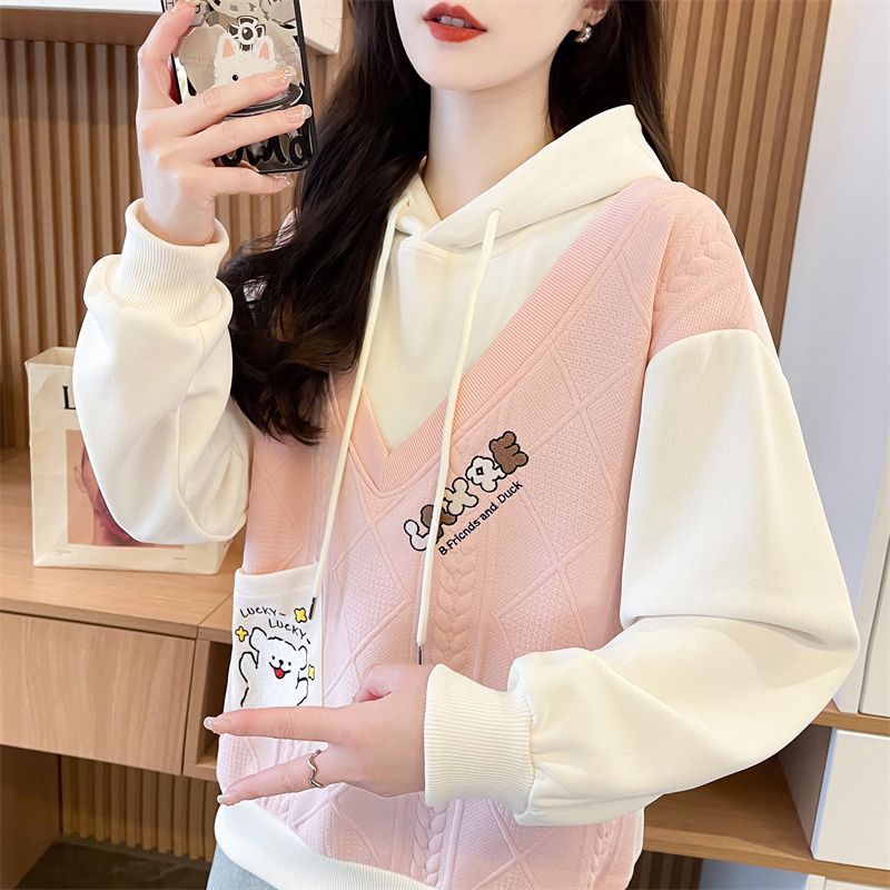가짜 투피스 후드 스웨트 셔츠 여성의 봄과 가을 얇은 2025 새로운 느슨한 한국 스타일 작은 하이 엔드 센스 탑 코트스토어 가기