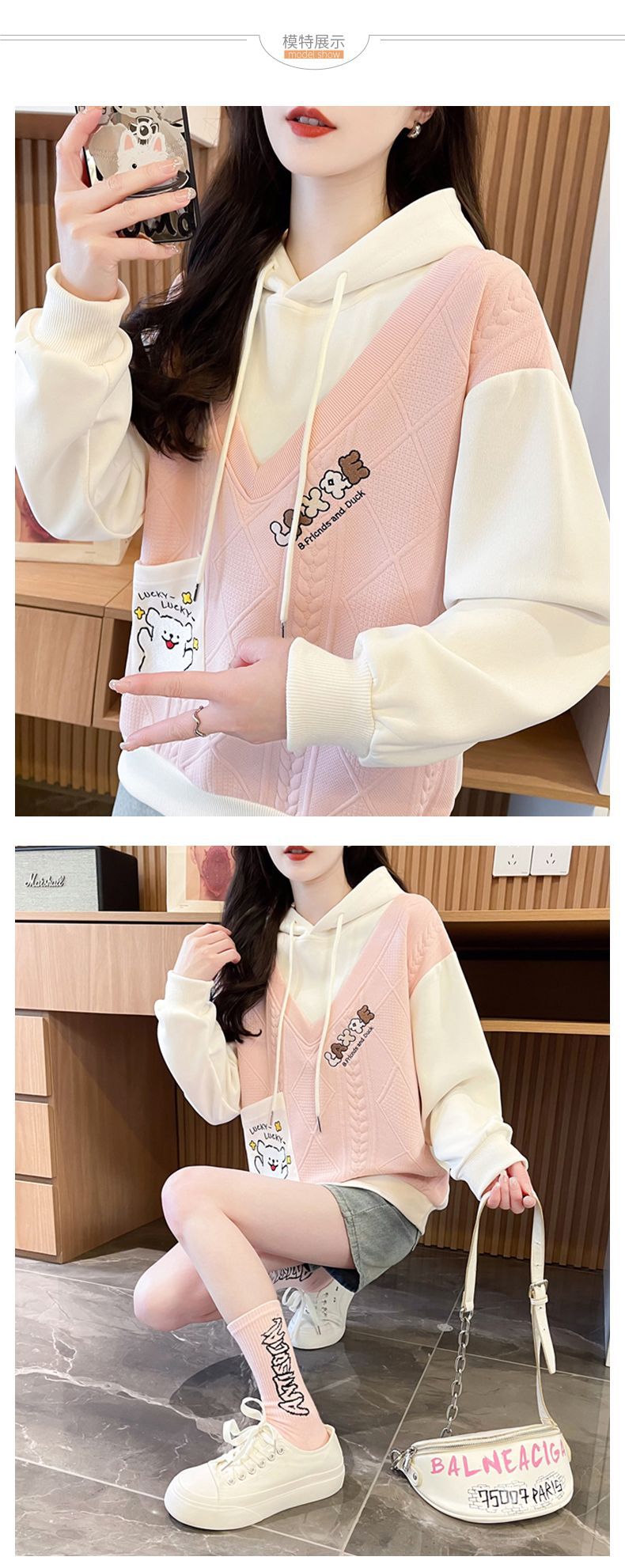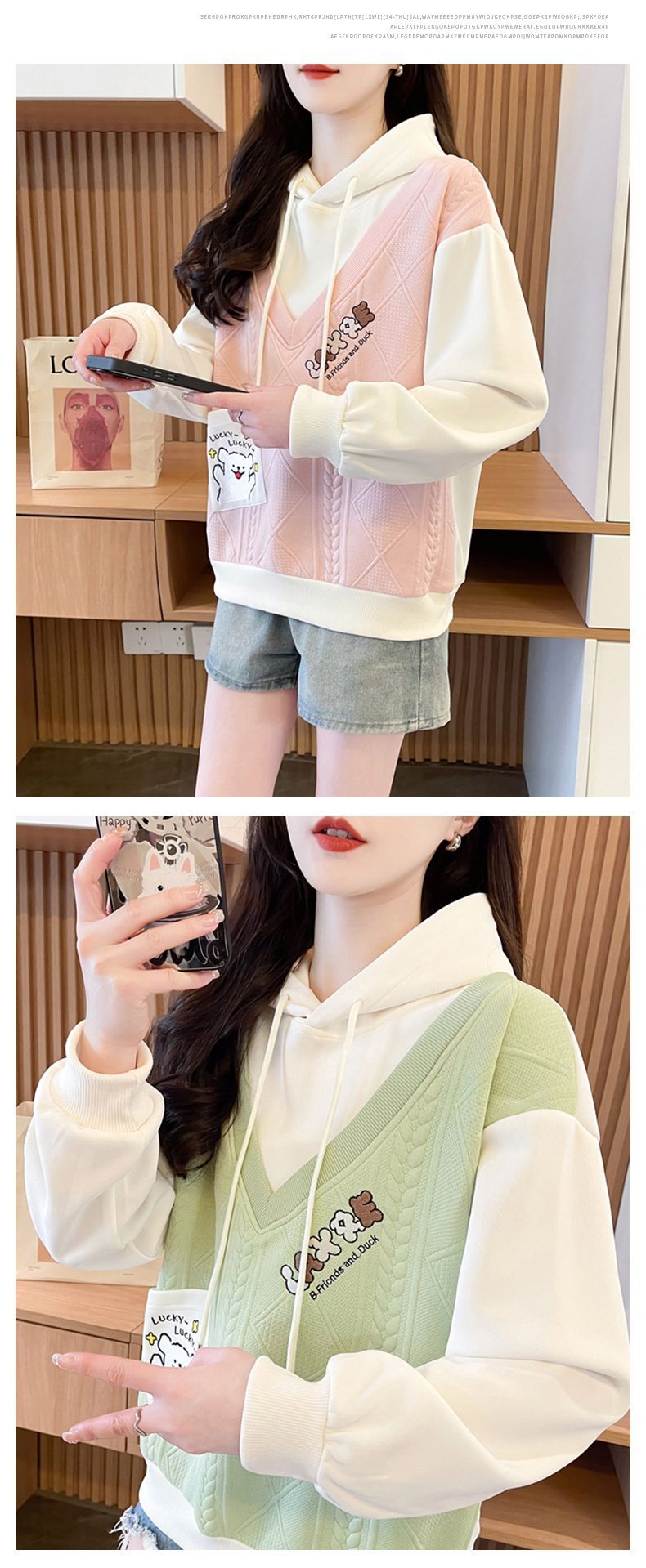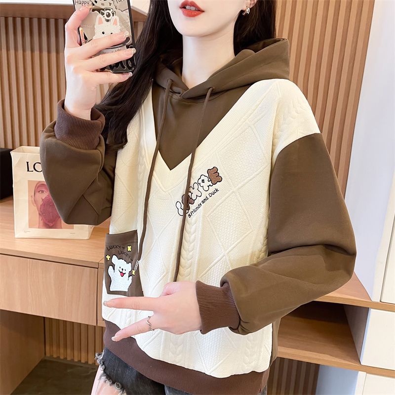 가짜 투피스 후드 스웨트 셔츠 여성의 봄과 가을 얇은 2025 새로운 느슨한 한국 스타일 작은 하이 엔드 센스 탑 코트스토어 가기